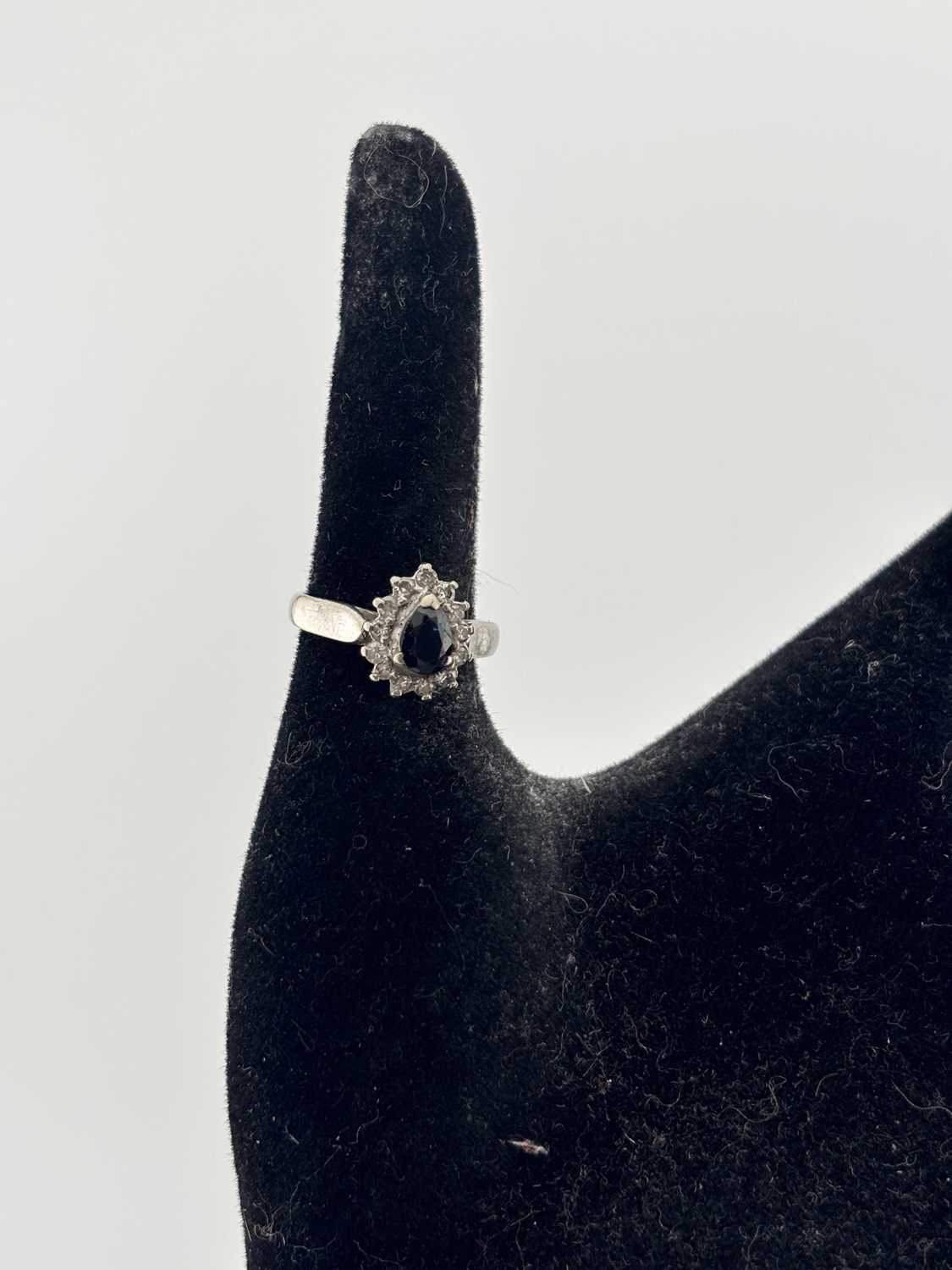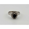 A pear-shape sapphire and single-cut diamond cluster ring, e...