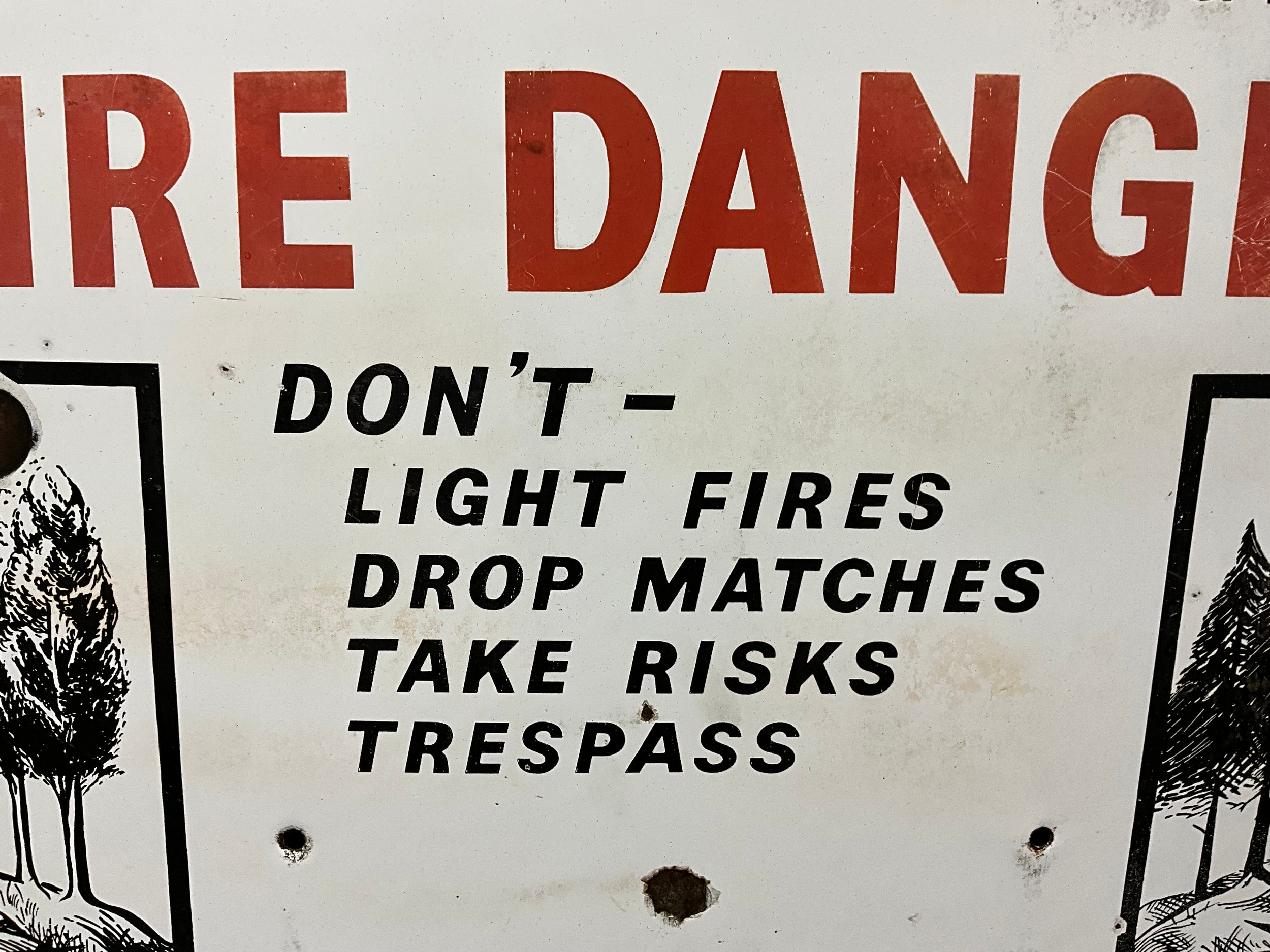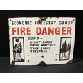 VINTAGE ENAMEL SIGN - ECONOMIC FORESTRY GROUP "FIRE DANGER"21"X15"