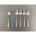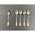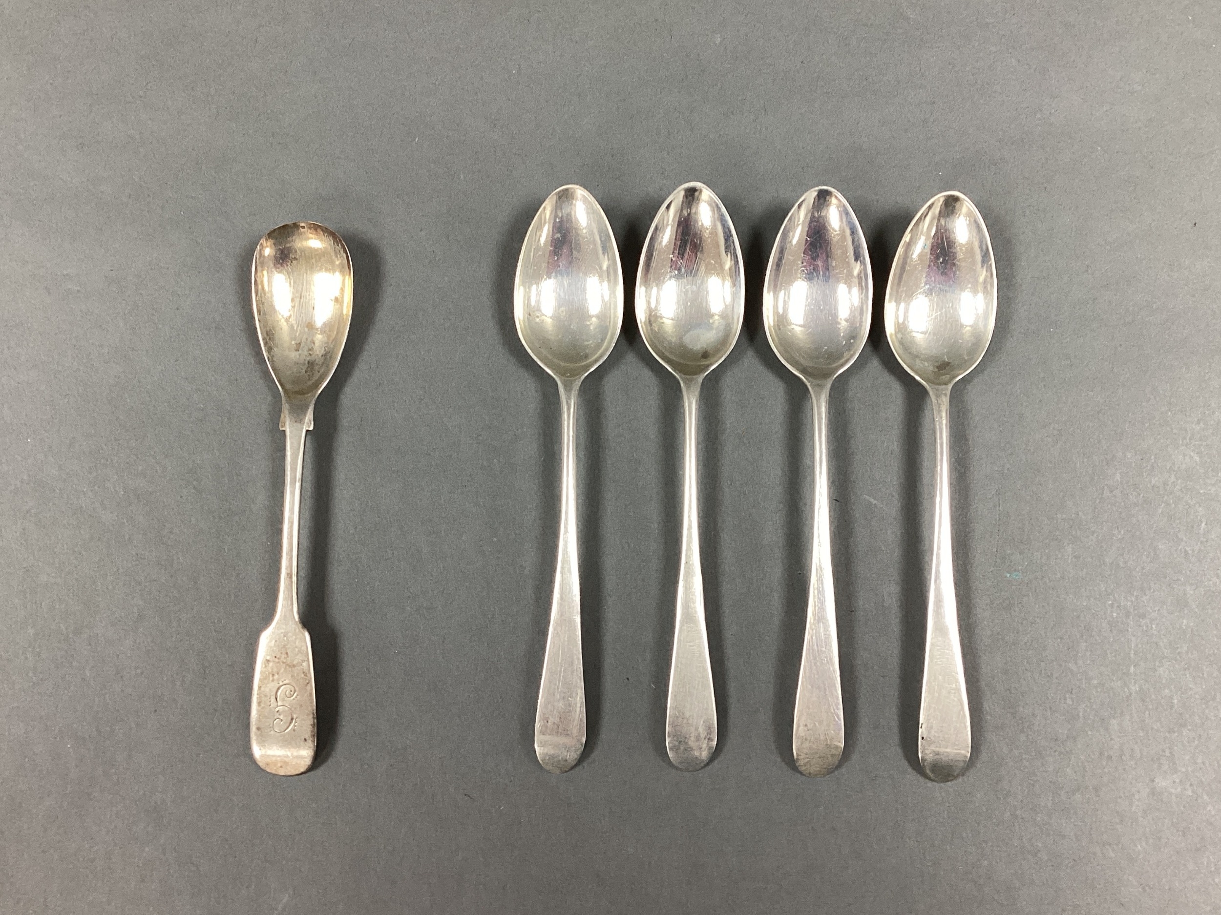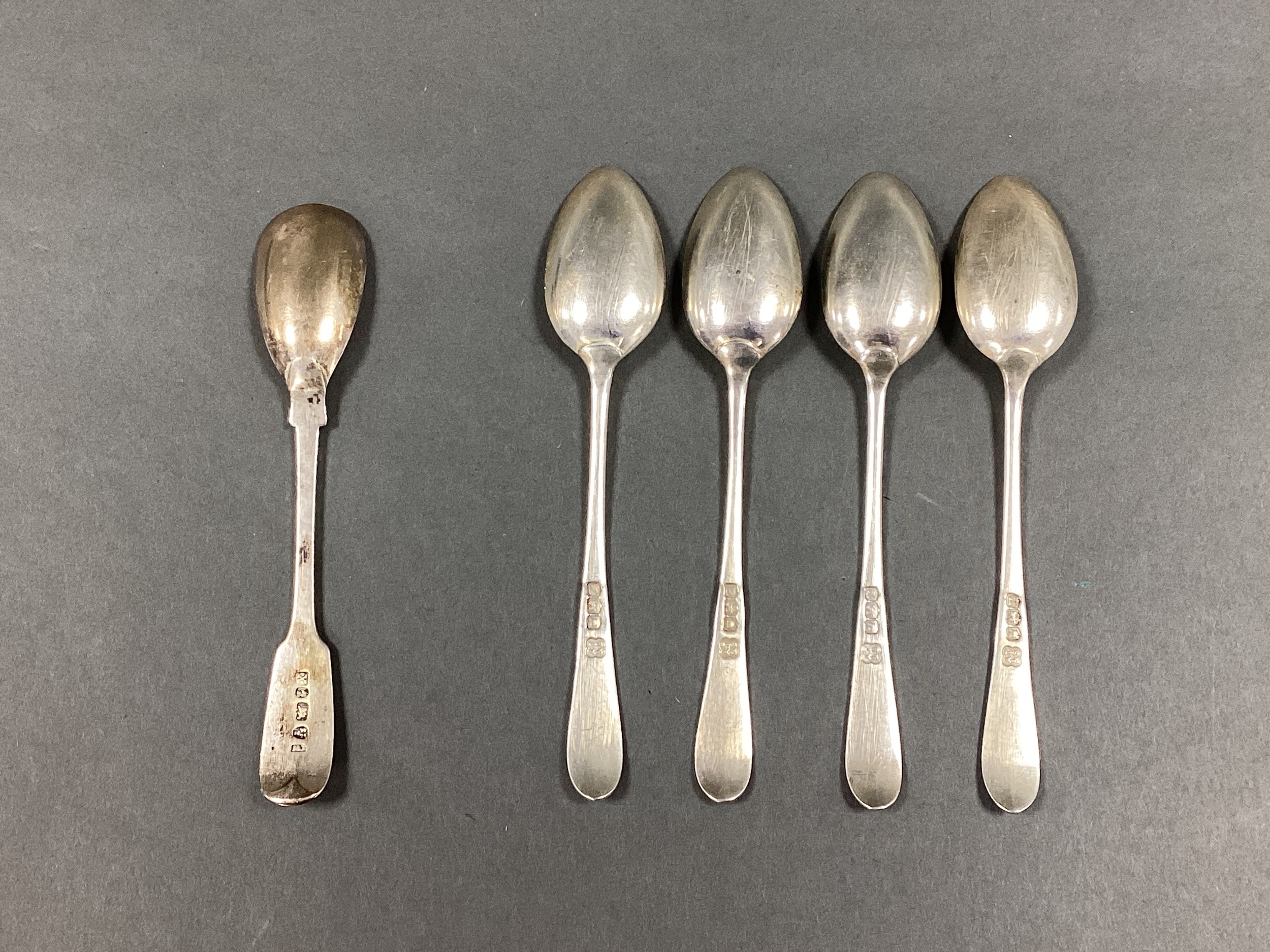 A Set of Four Hallmarked Silver Teaspoons, AT&S, Sheffield 1967; Together with A Provincial Hallmarked Silver Fiddle Pattern Mustard Spoon, Newcastle 1812(?), initialled