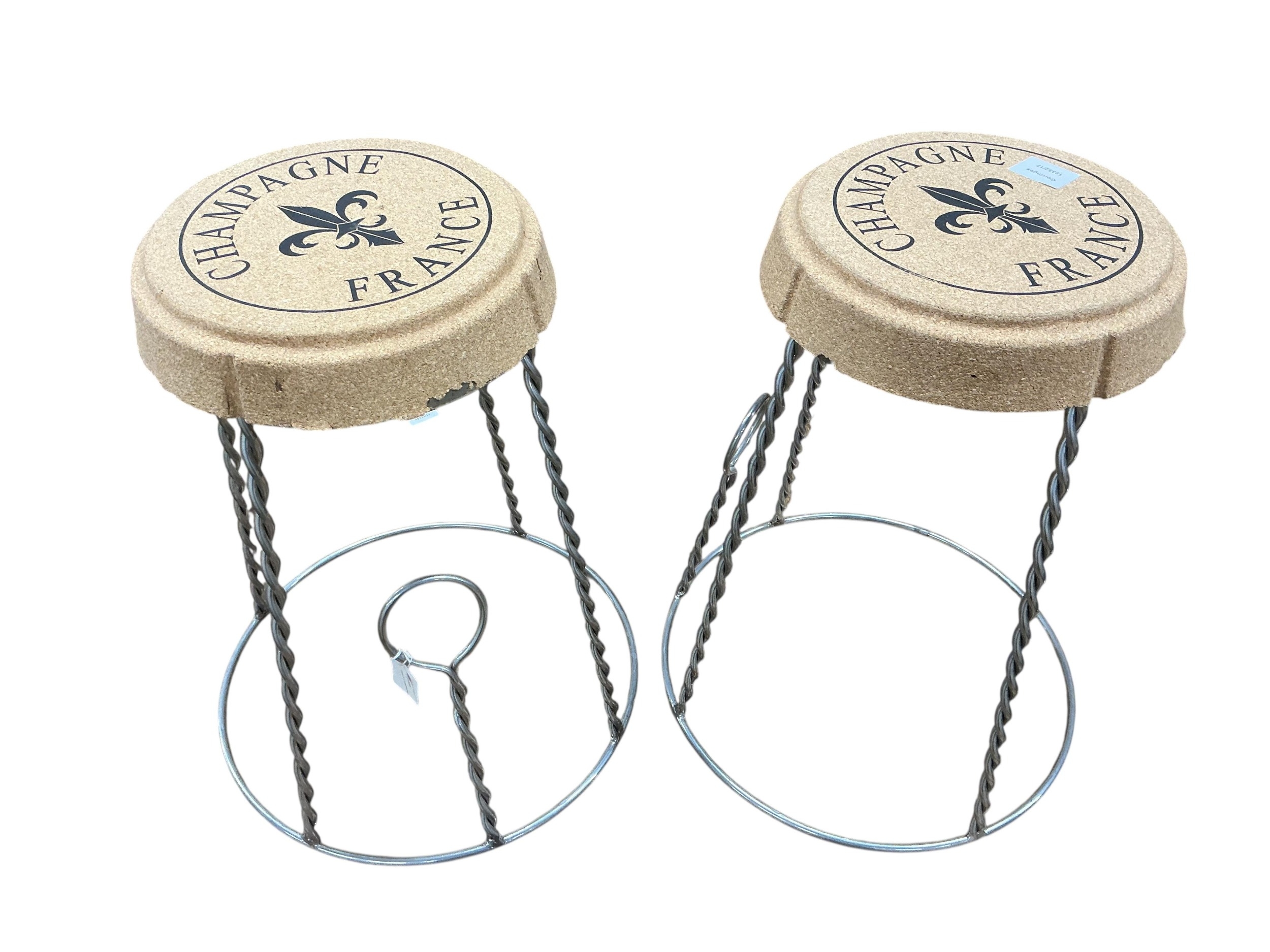 A pair of Contemporary 'champagne cork' stools, height 52cm