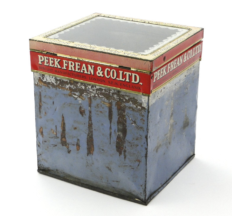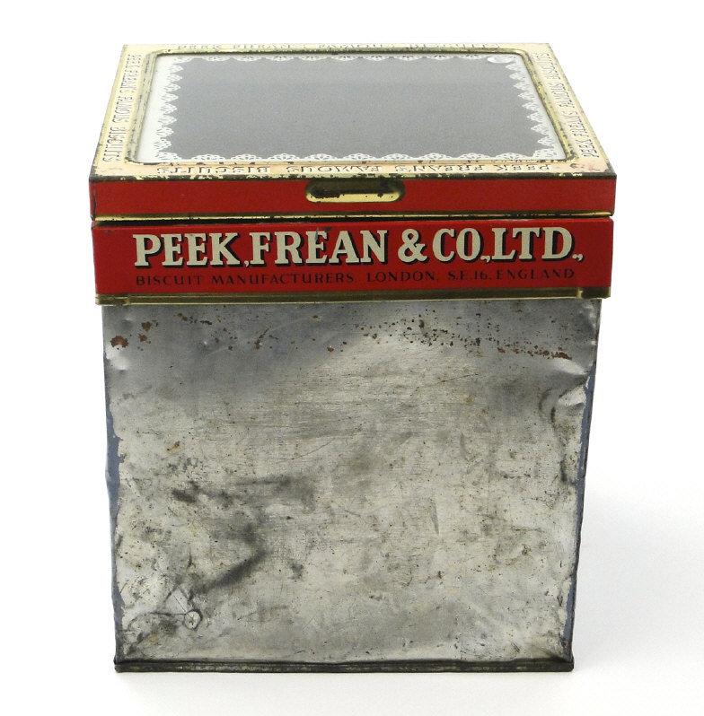 Peek Frean and Co advertising biscuit tin with glazed lid, 27cm high