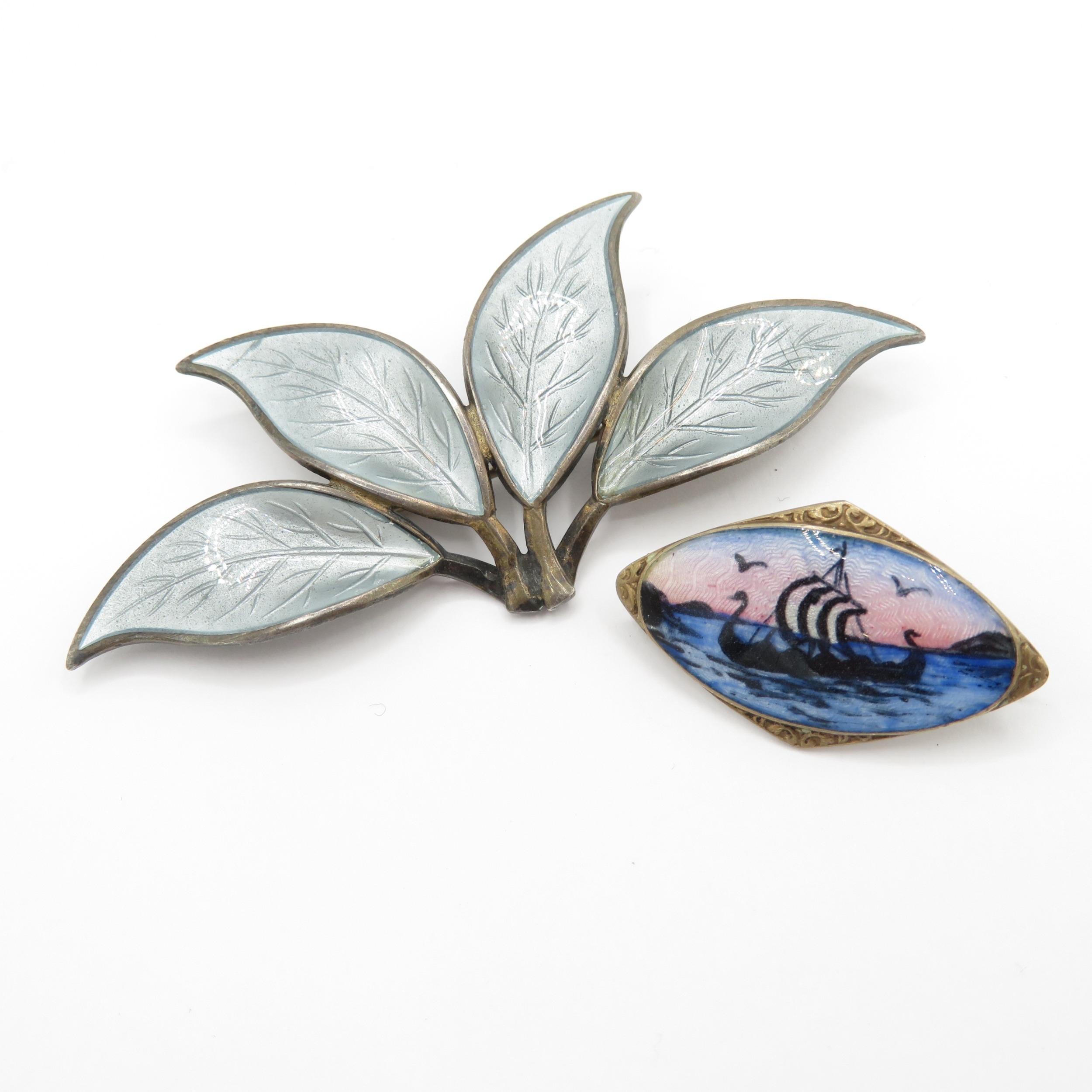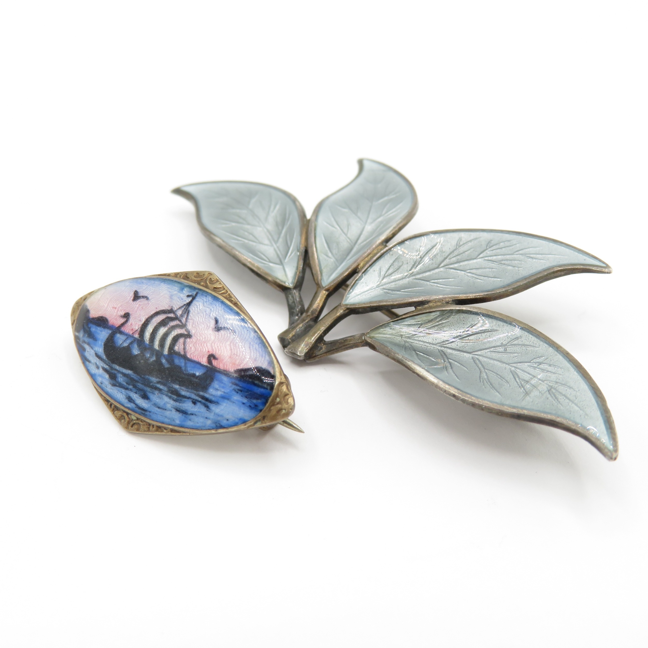 Collection of Sterling Silver Scandi Brooches inc. Hjortdahl, David Andersen, Enamel, Viking x 2 (15g)