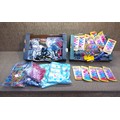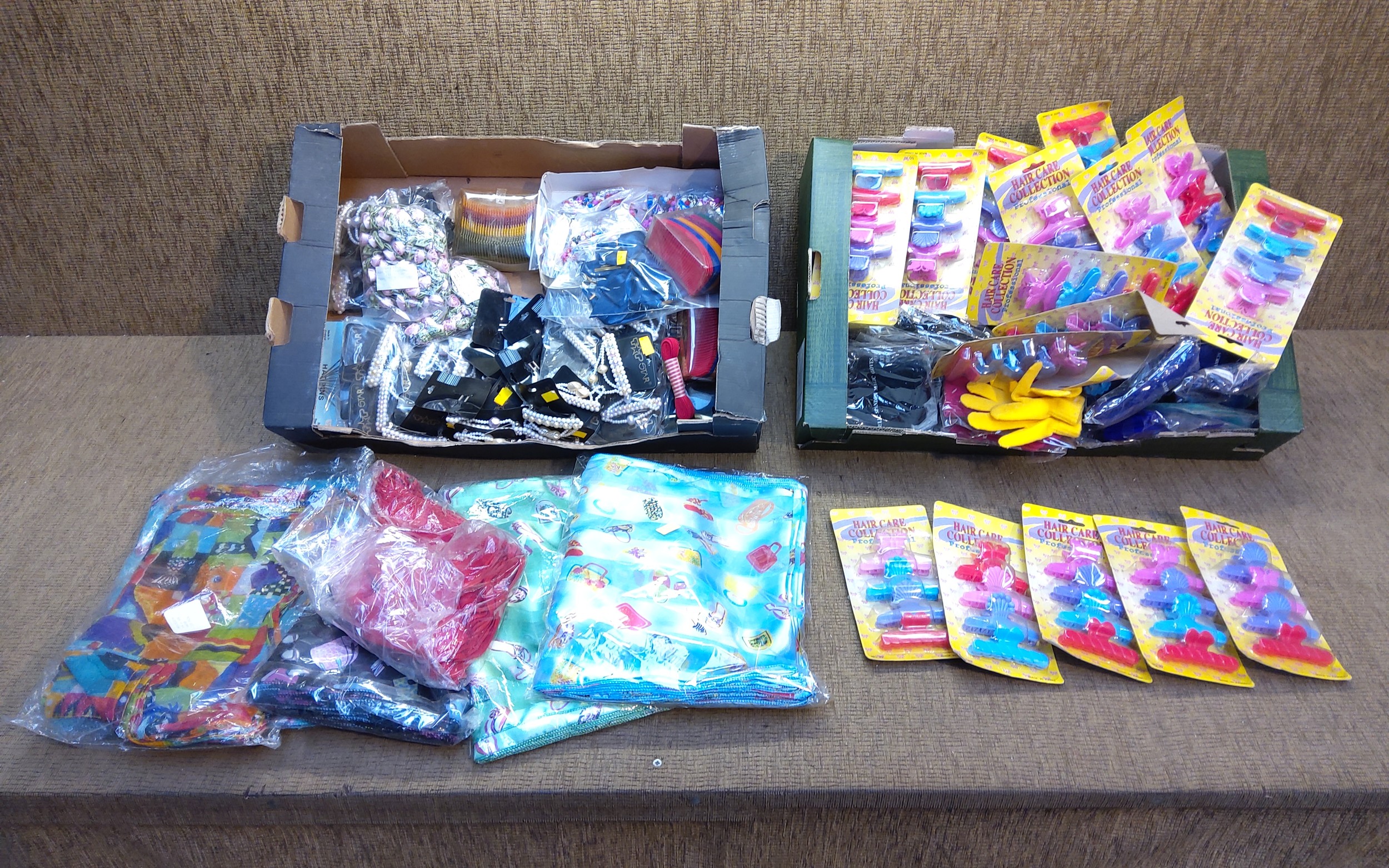 Quantity of retro retail packaged hair clips and a number of silk handkerchiefs.