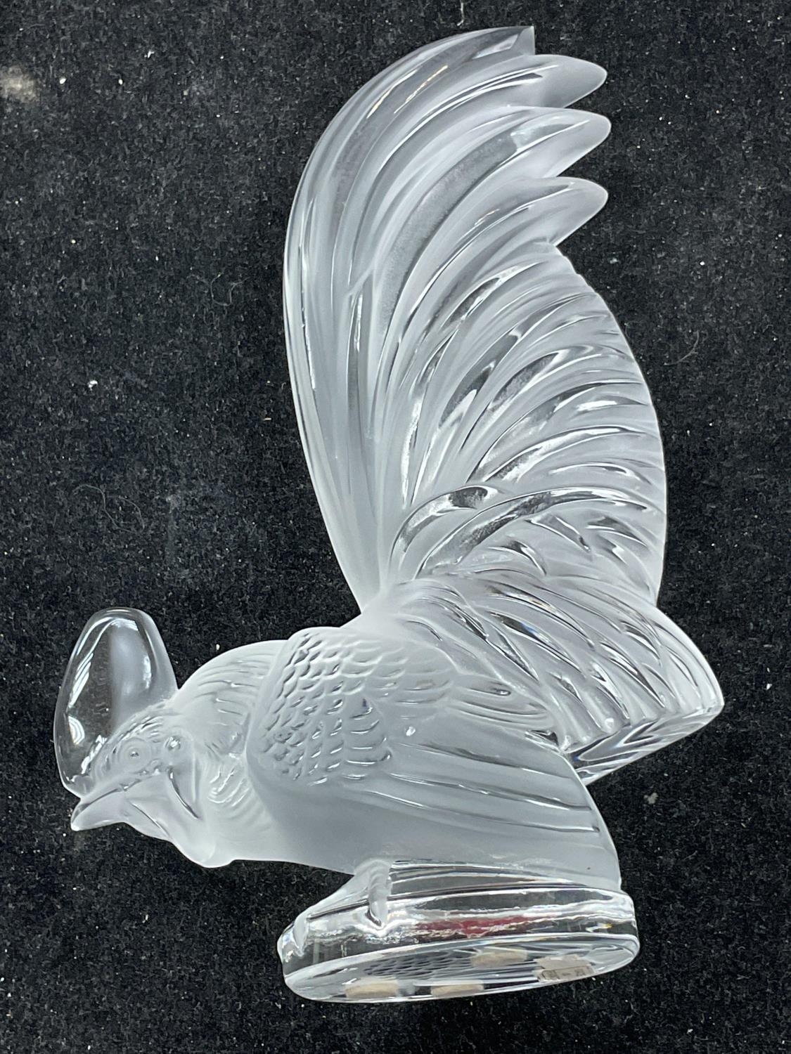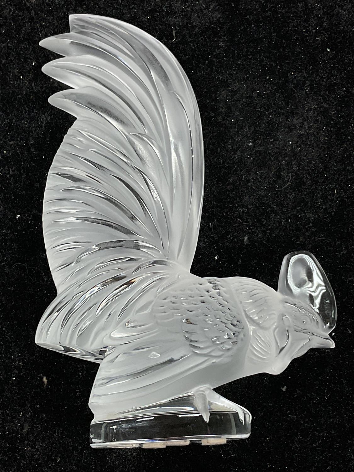 René Lalique (1860-1945) coq nain cockerel car mascot in clear and slightly frosted glass with signature on the base.