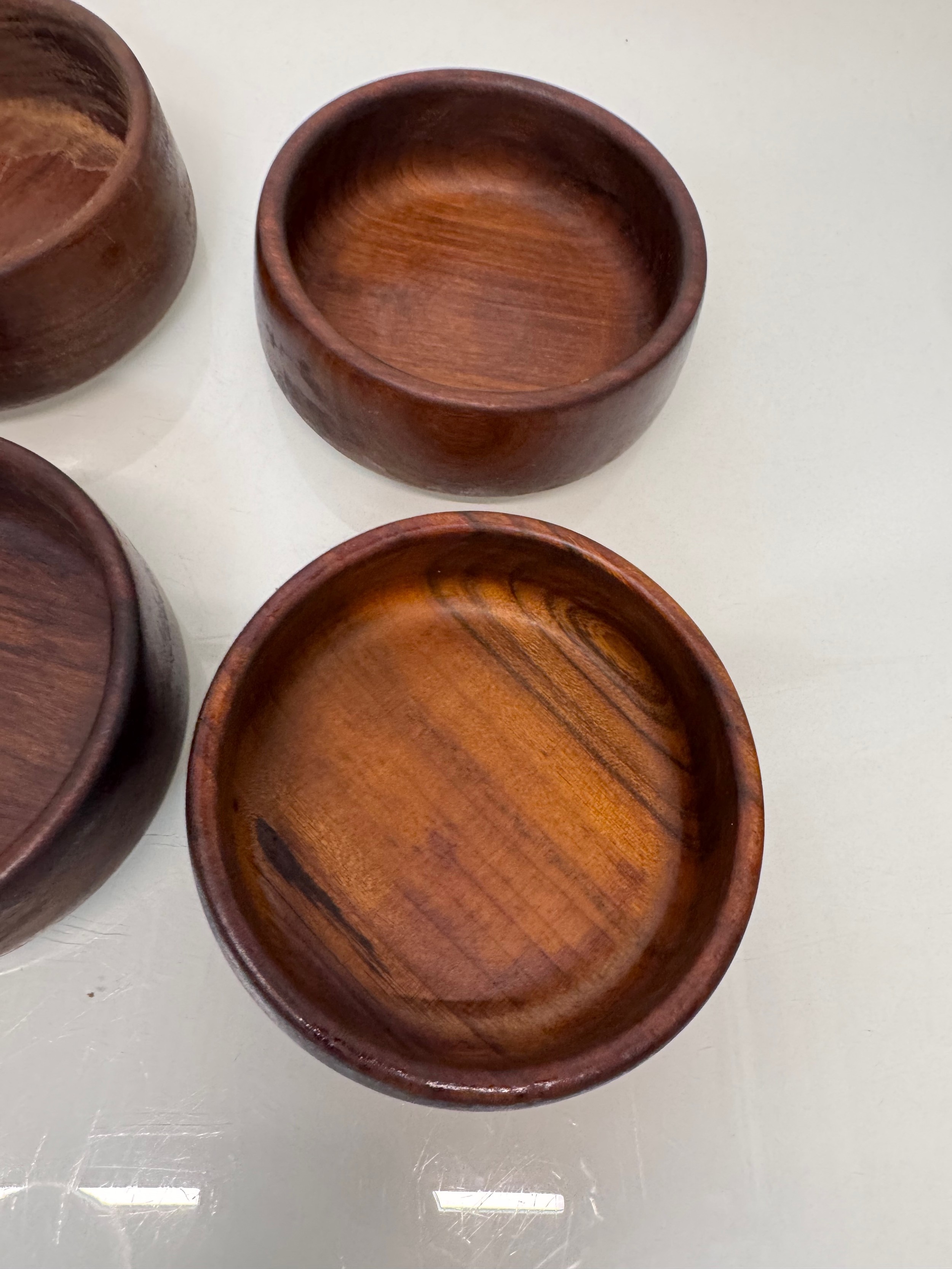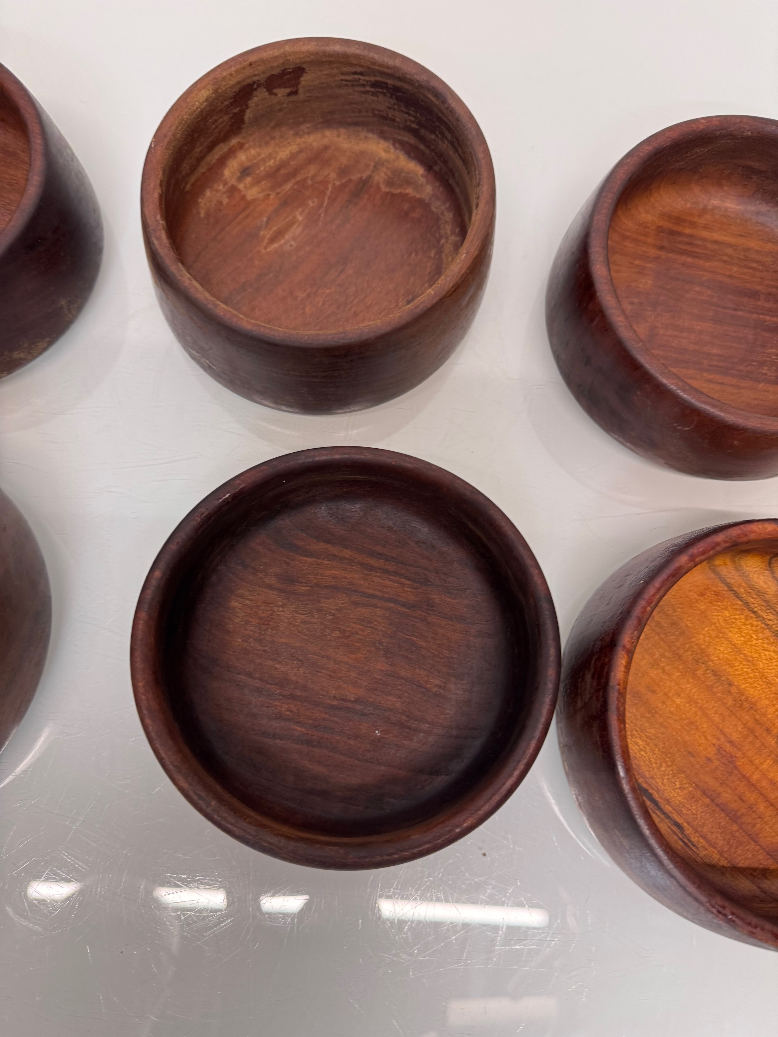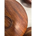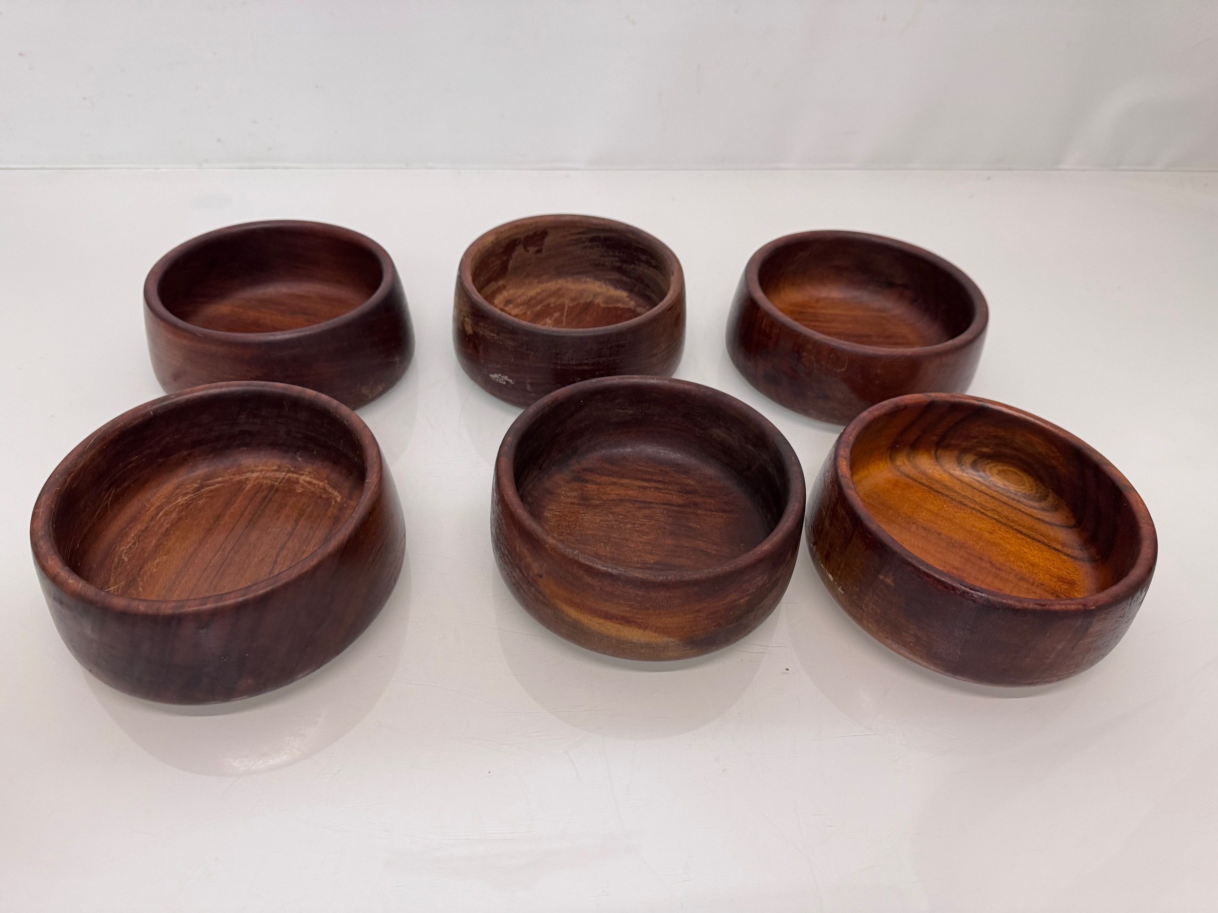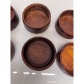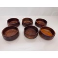 Mid century kitchenalia, Six wooden salad bowls 14 cm in diameter, 6 cm tall.