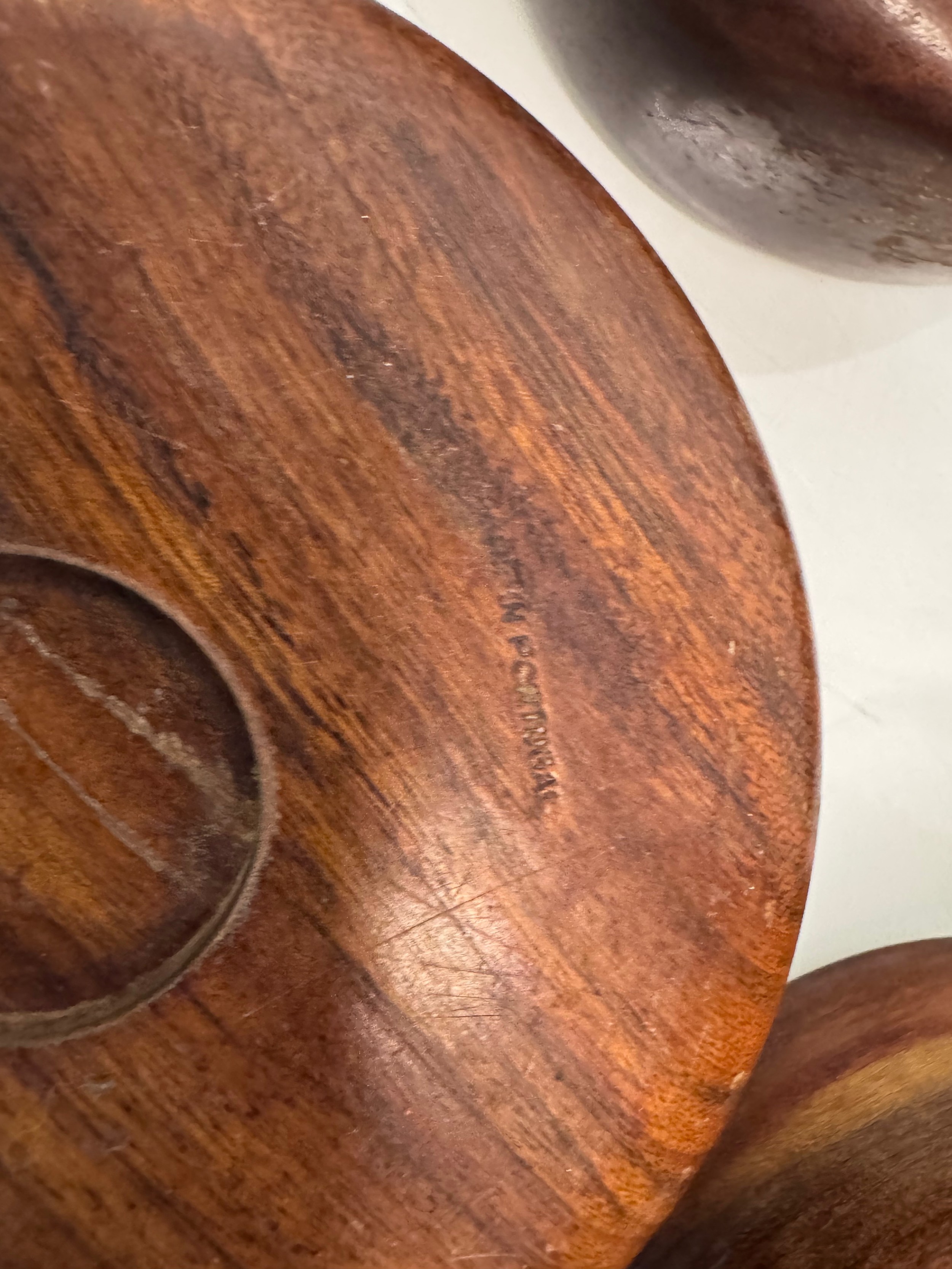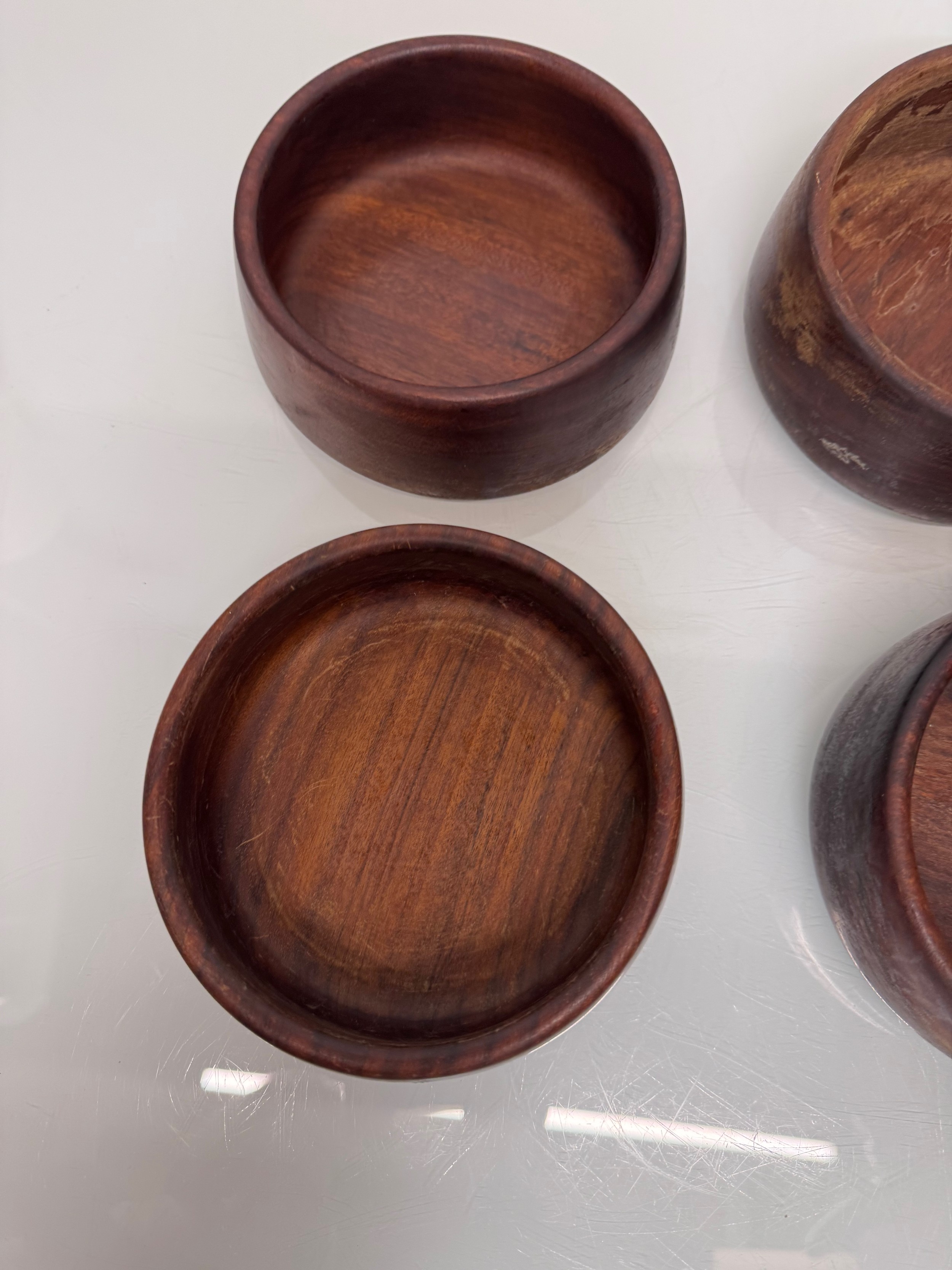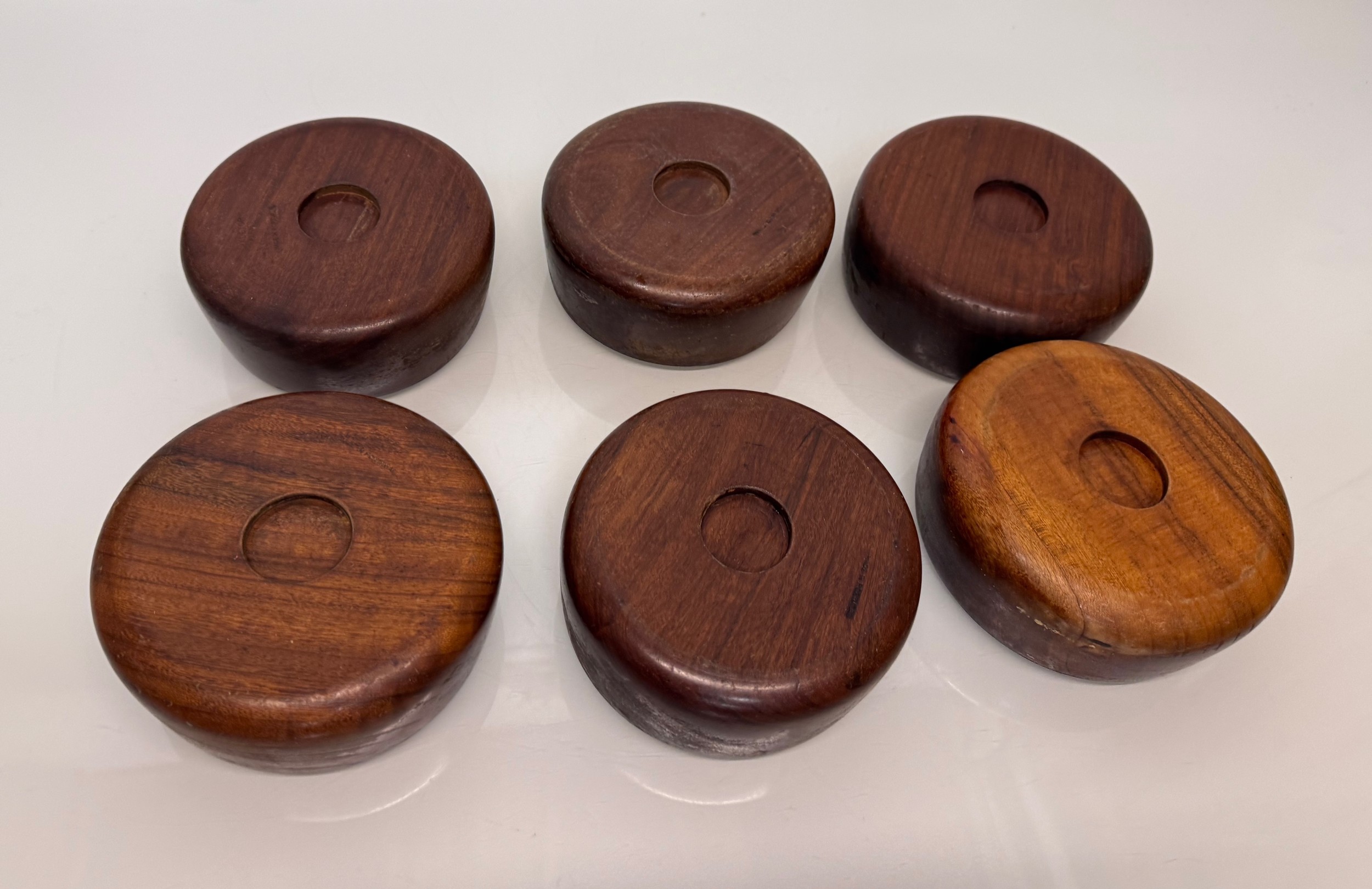 Mid century kitchenalia, Six wooden salad bowls 14 cm in diameter, 6 cm tall.