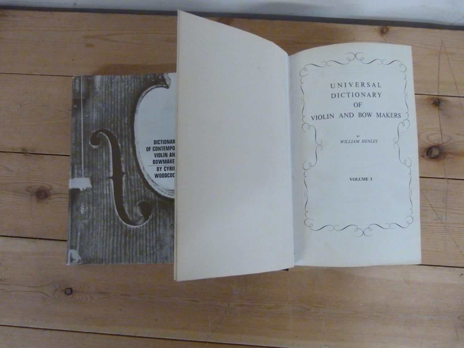 HENLEY WILLIAM. Universal Dictionary of Violin & Bow Makers. 5 vols. in one. Dark half morocco. 1959/1960; also 1 other vol. (2).