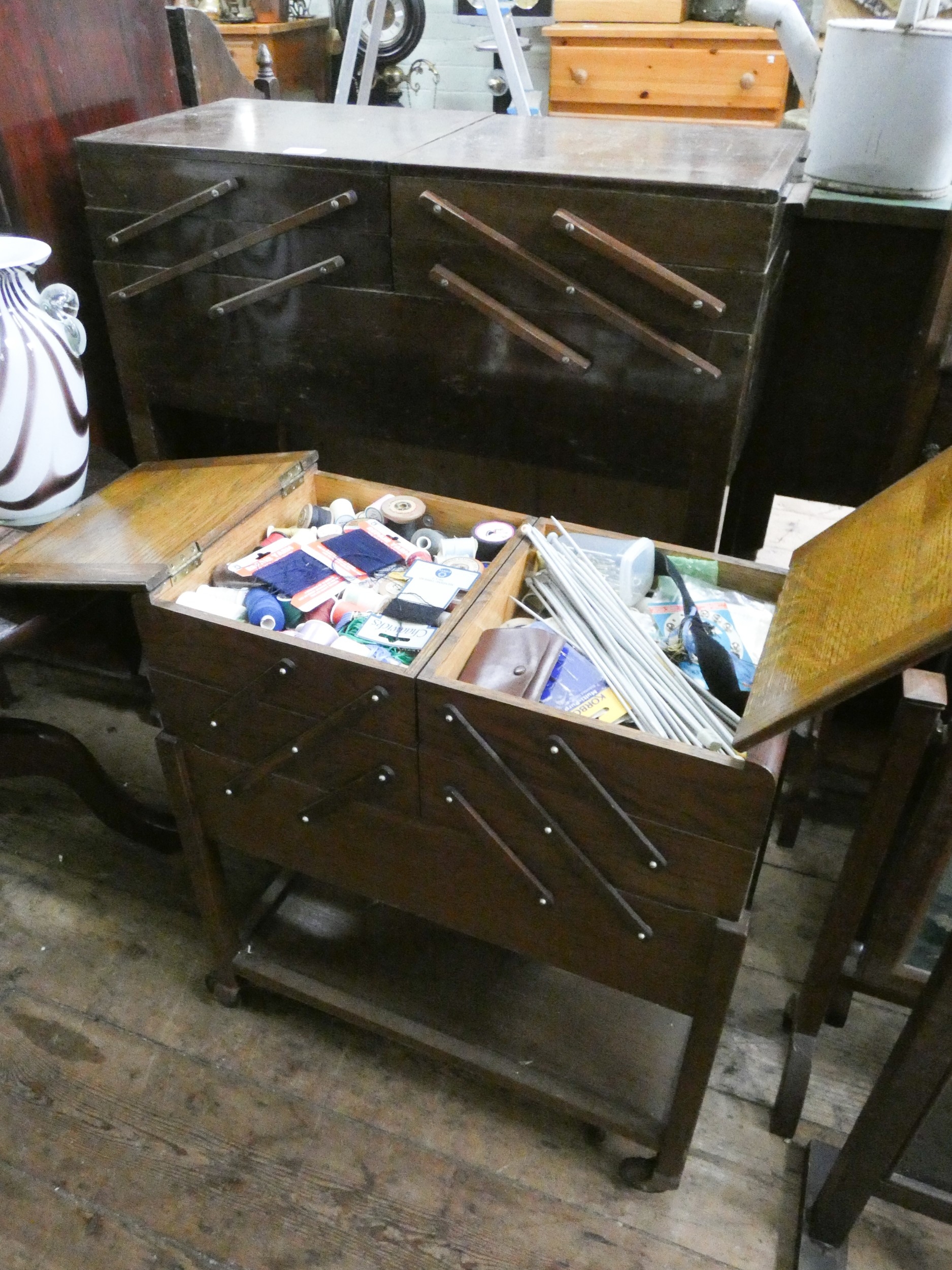 Two cantilever sewing boxes