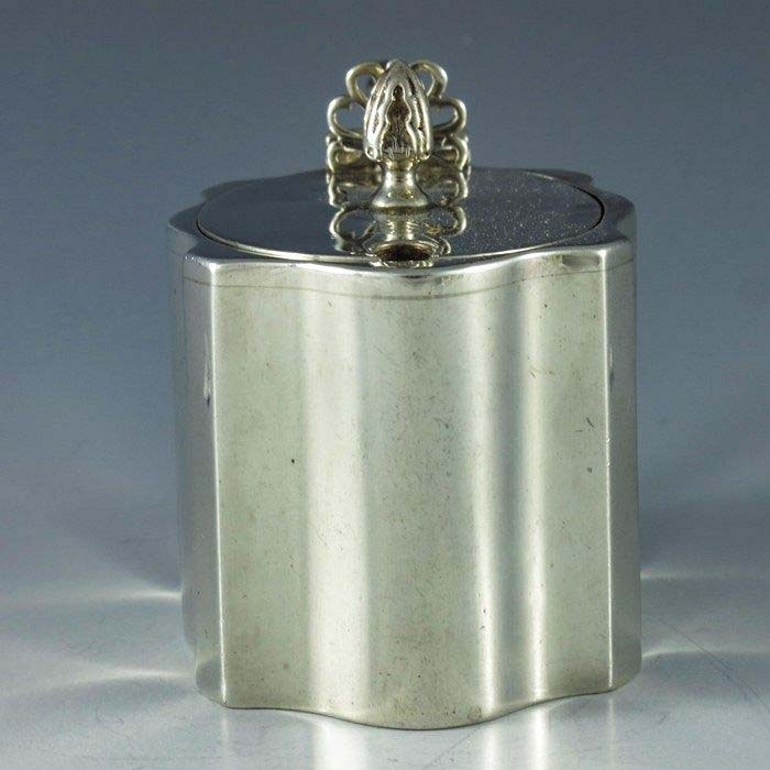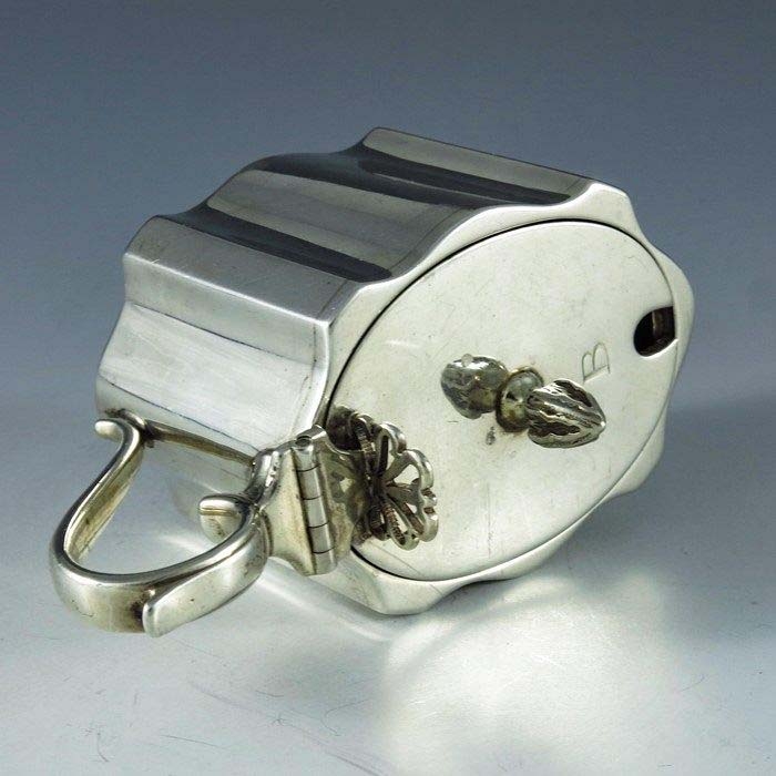 Charles Perry and Co., Chester 1930, a George V silver mustard pot, straight sided ogee fluted rectangular section, with flat lid and acanthus finial, 6cm high, 4.91ozt