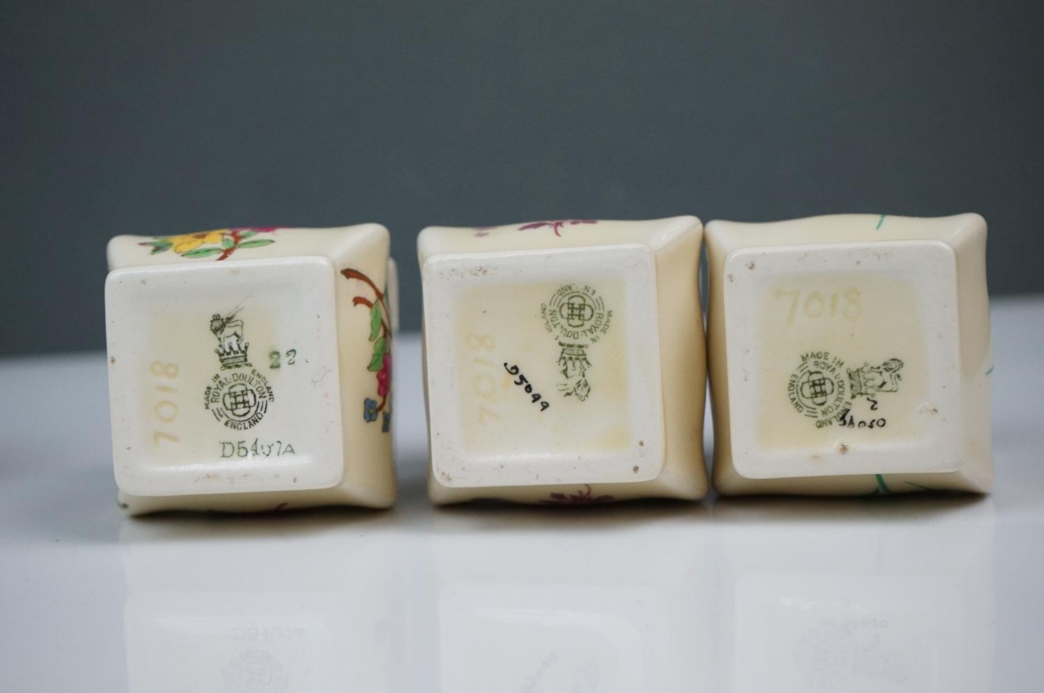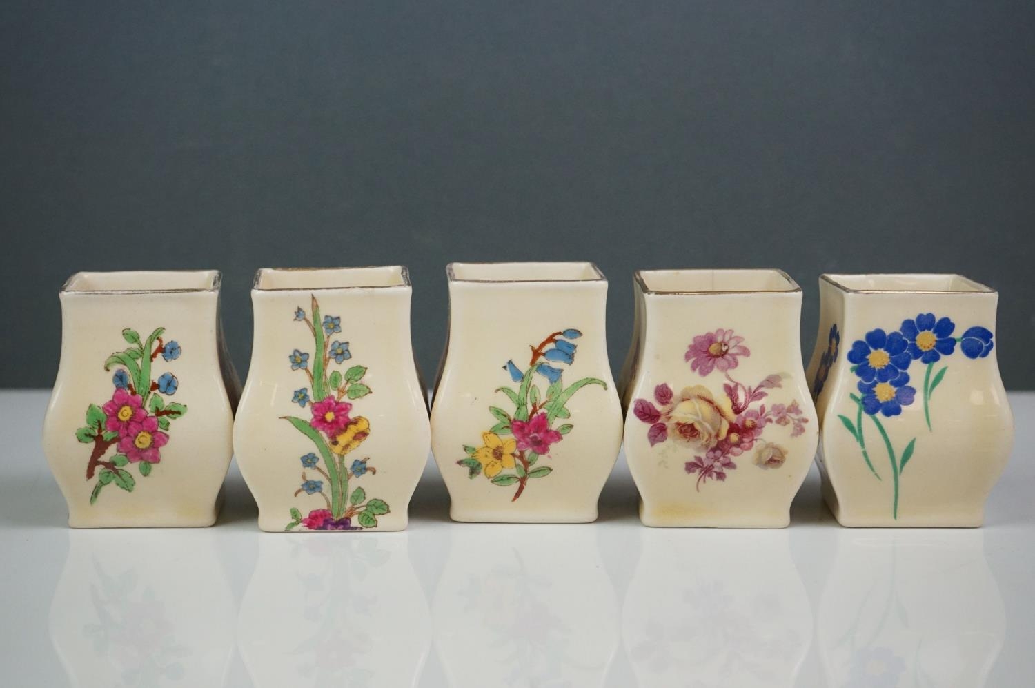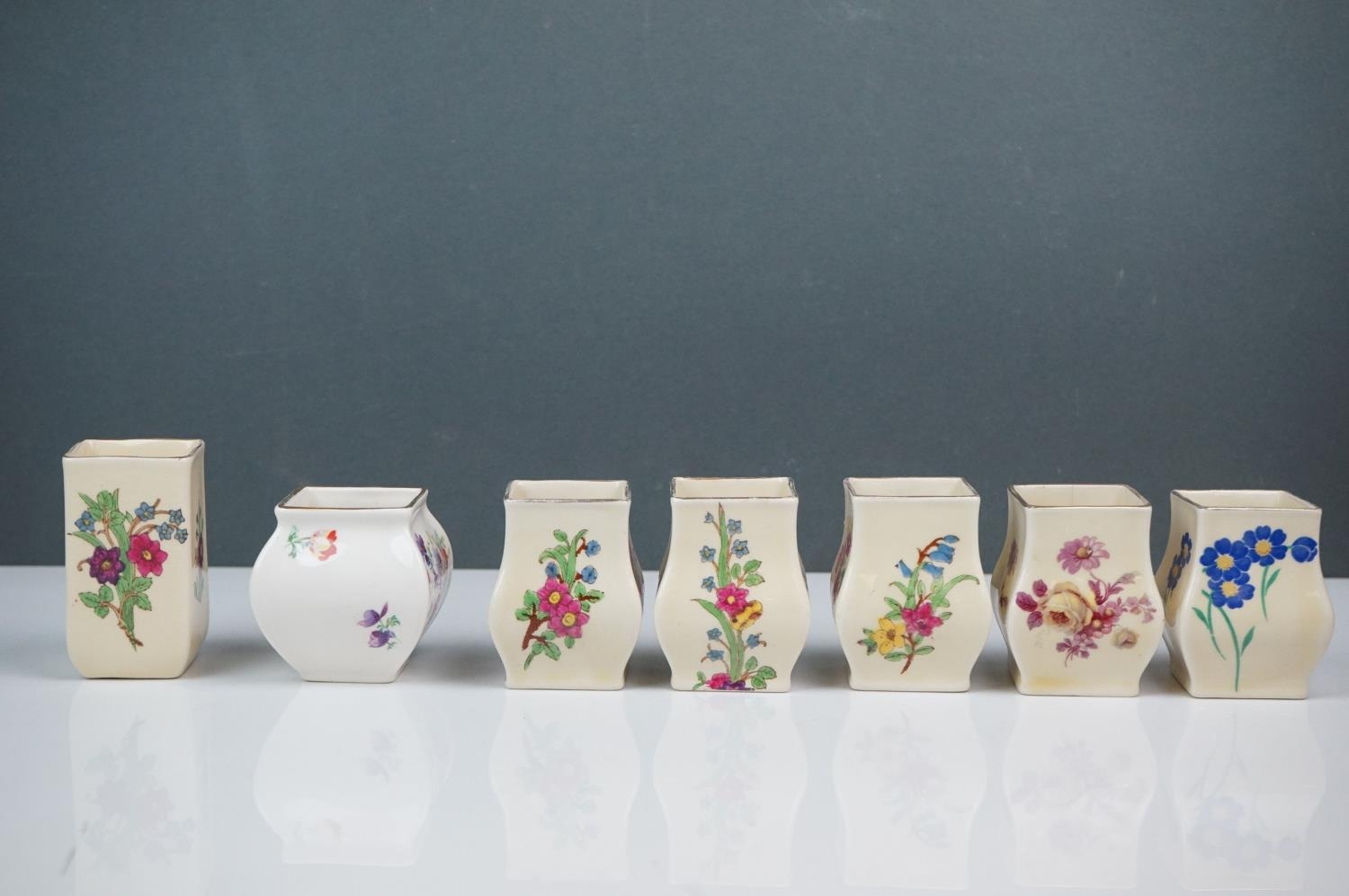 A collection of seven Royal Doulton miniature porcelain floral vases.