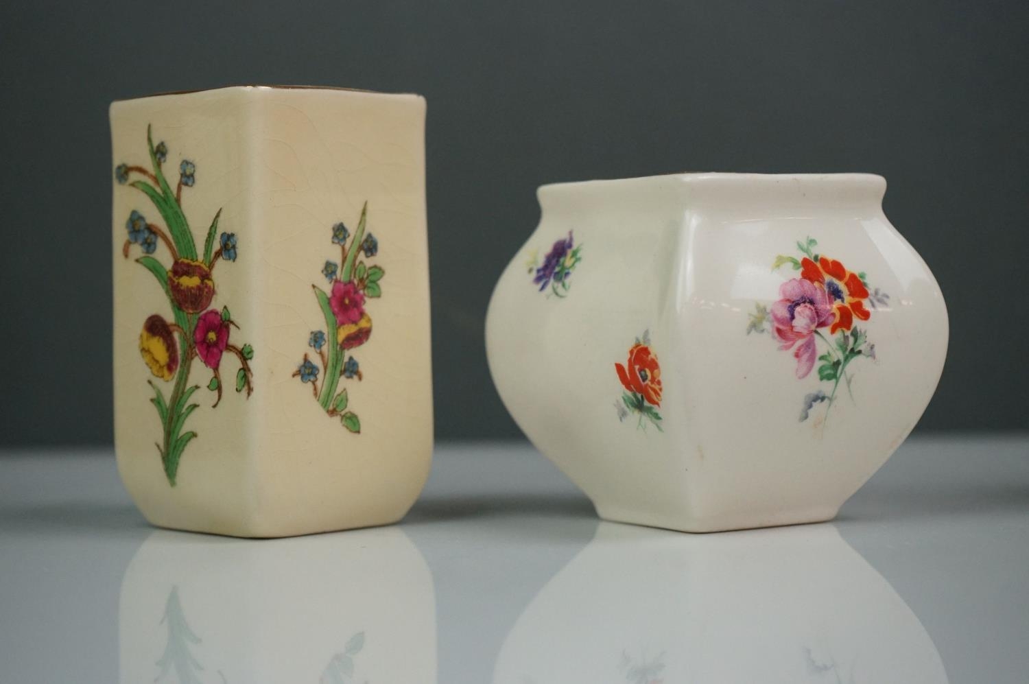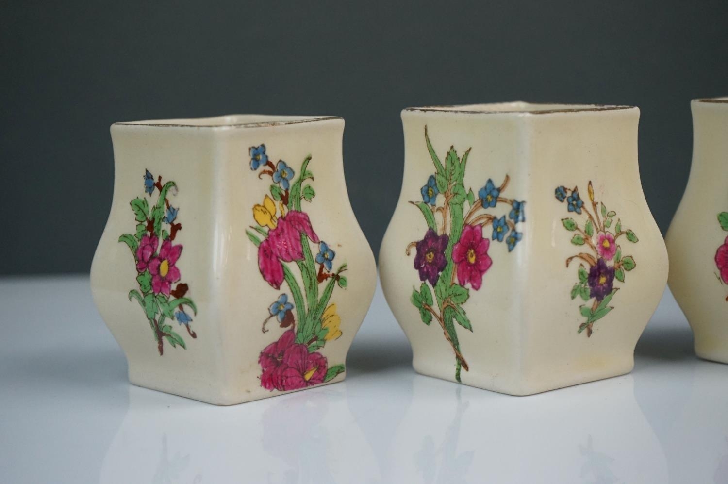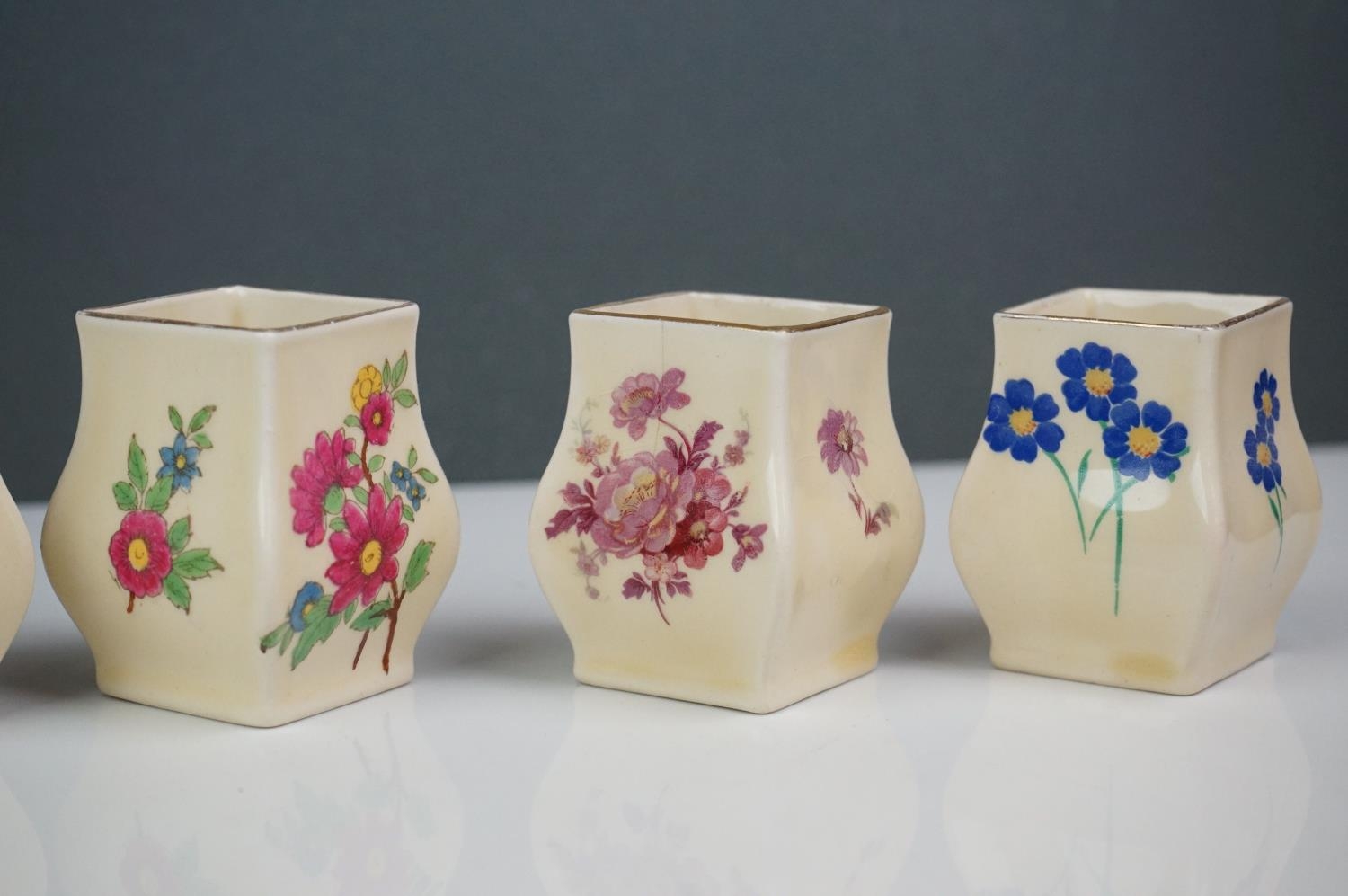 A collection of seven Royal Doulton miniature porcelain floral vases.