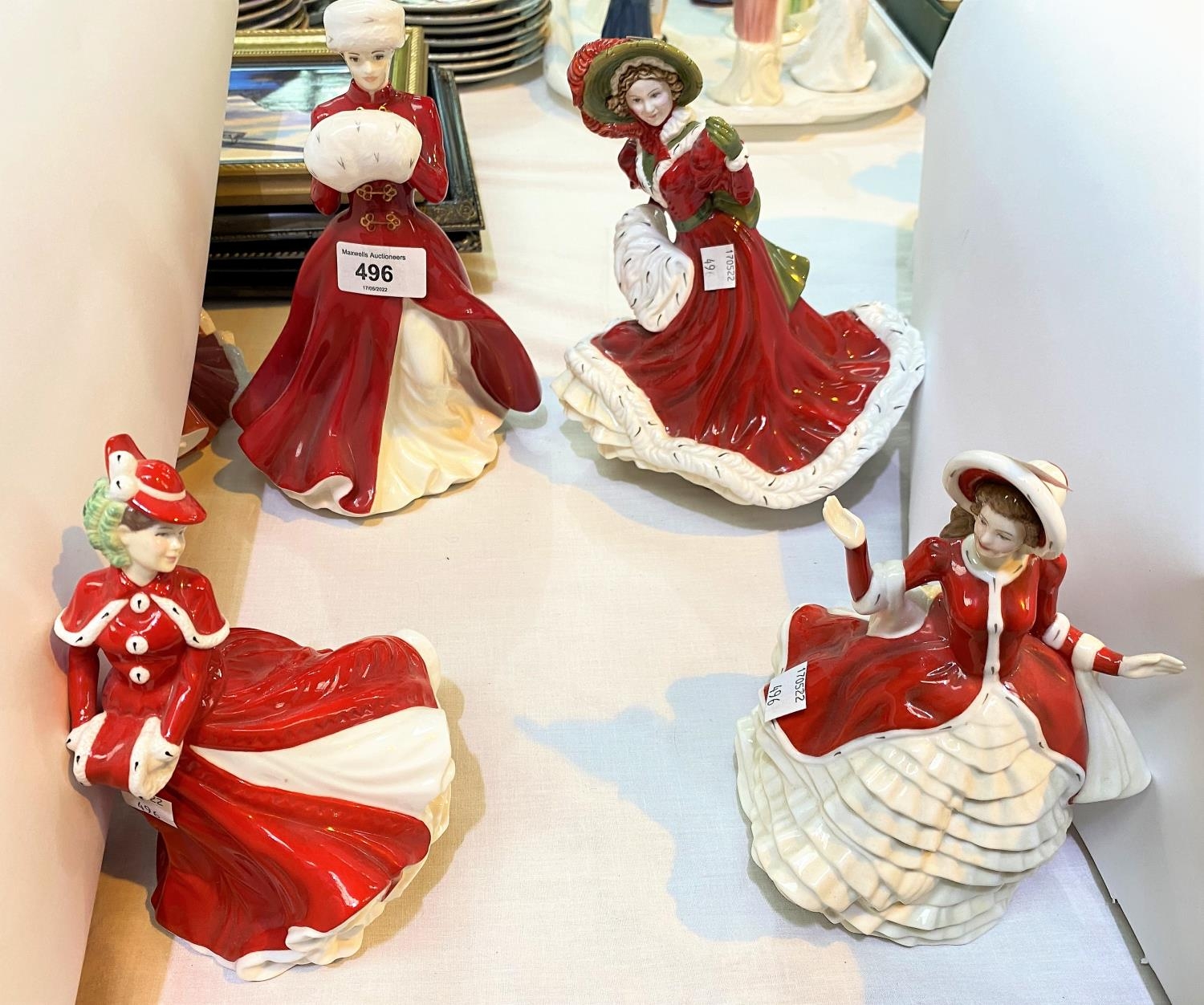 4 Royal Doulton figures "Christmas Day 2005" HN4723; "A Winters Morn" limited edition HN4538, "Pretty Ladies Christmas Day" HN4925, "Christmas Celebration" HN4721
