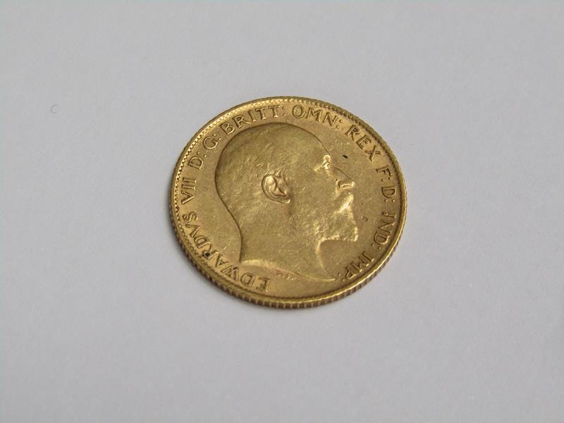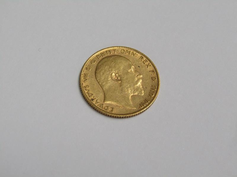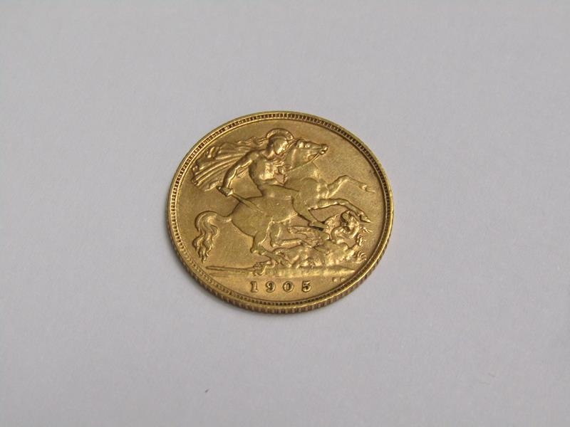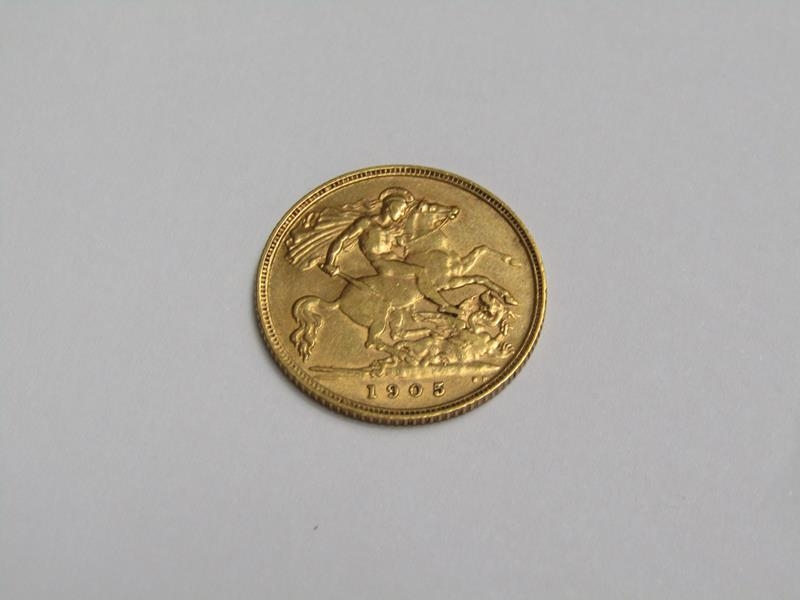 A 1905 gold half sovereign.