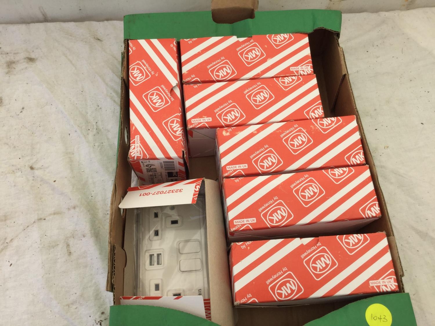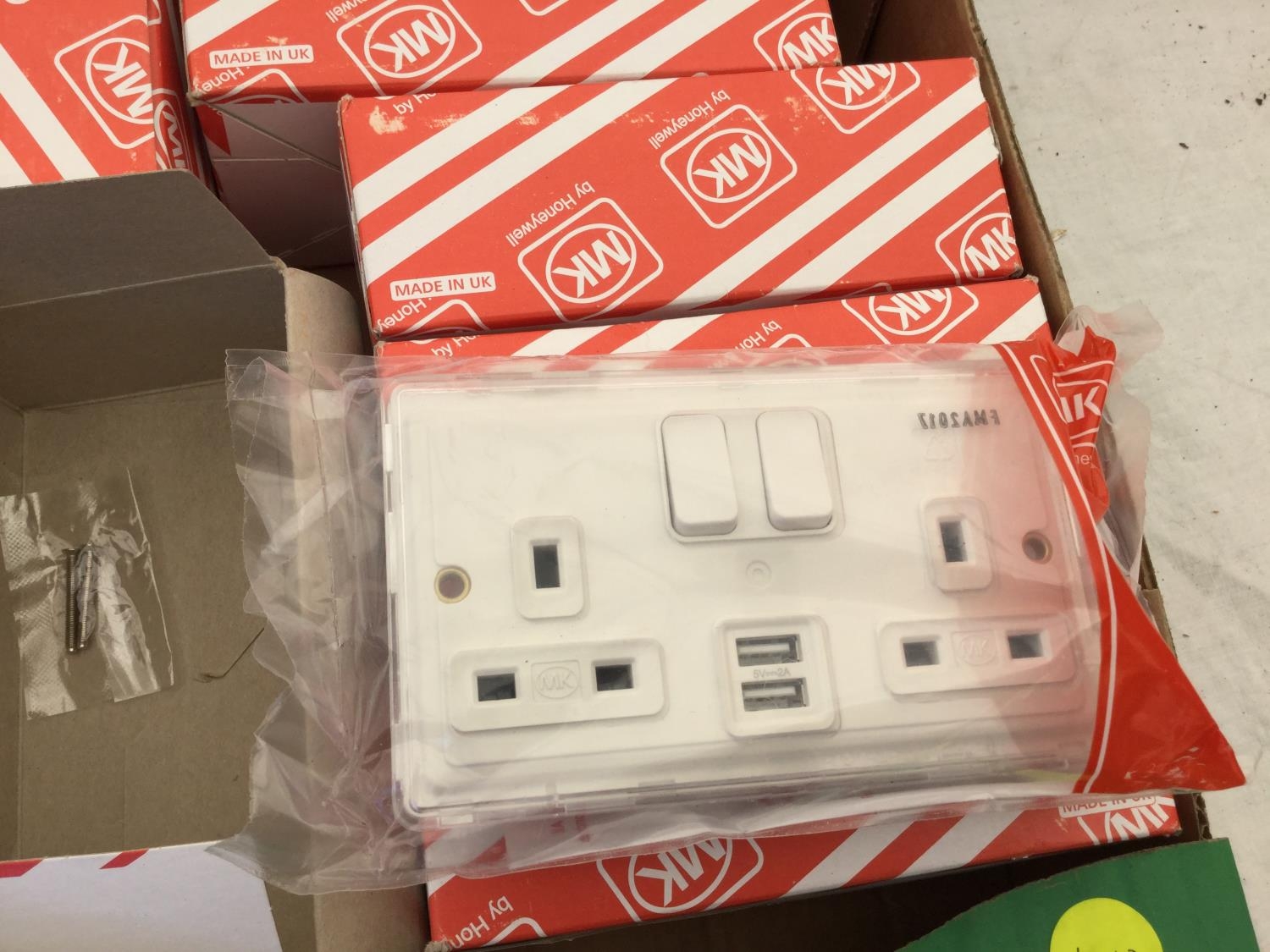 BOX OF ELECTRIC PLUG SOCKETS WITH USB PORTS