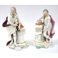 A Pair of Derby Porcelain Figures of Shakespeare and Milton, after Peter Scheemakers, Shakespeare with a scroll inscribed in gilt with verses from The Tempest, Milton resting against a pillar adorned with book and scroll, raises on scroll moulded bases, 27-29cm high. (2)