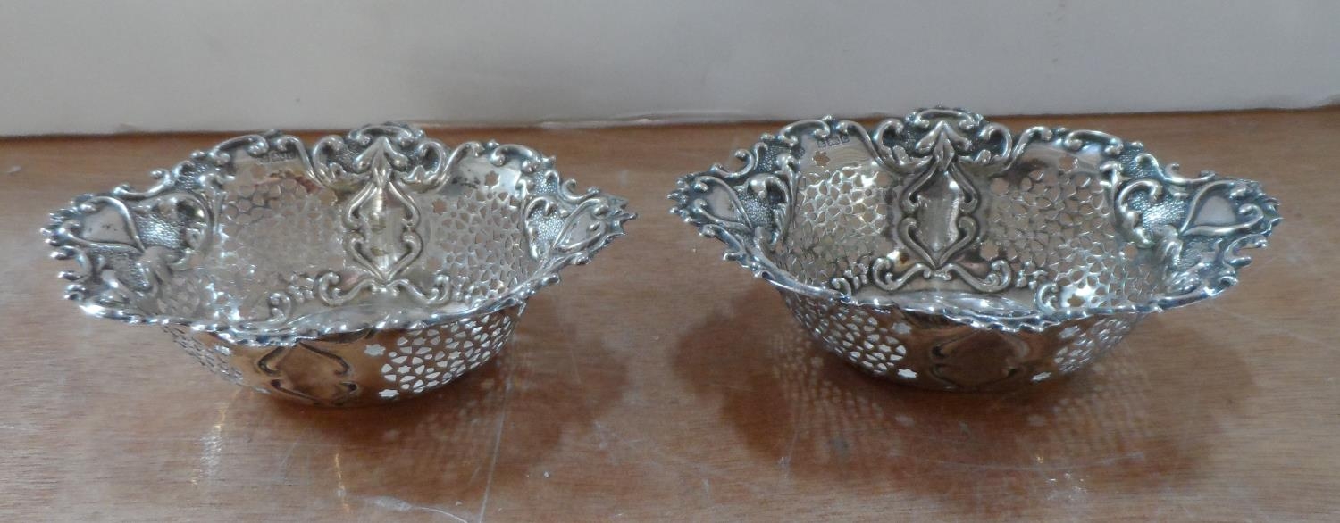 Pair of Birmingham 1904 silver bon bon dishes,55 grams