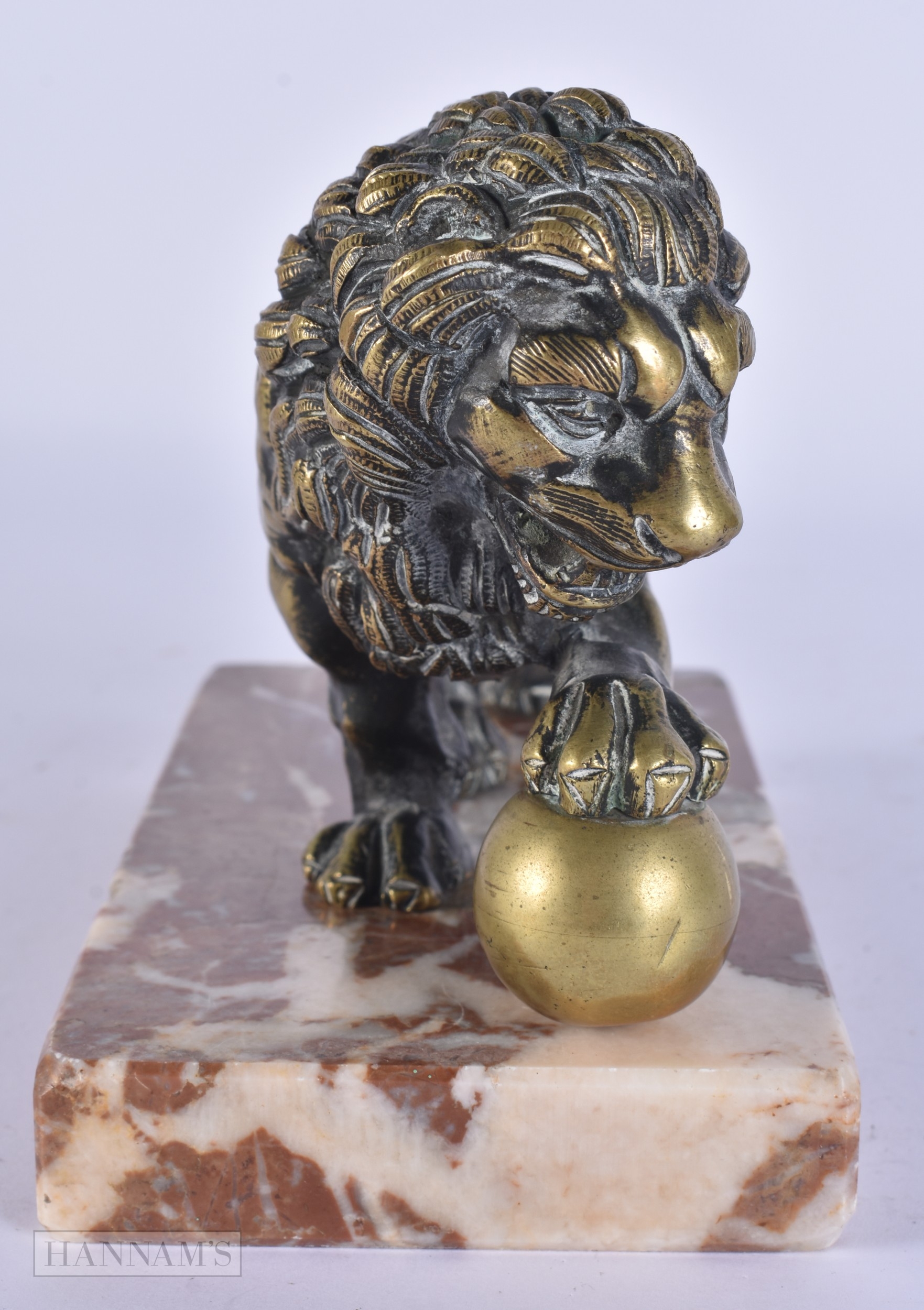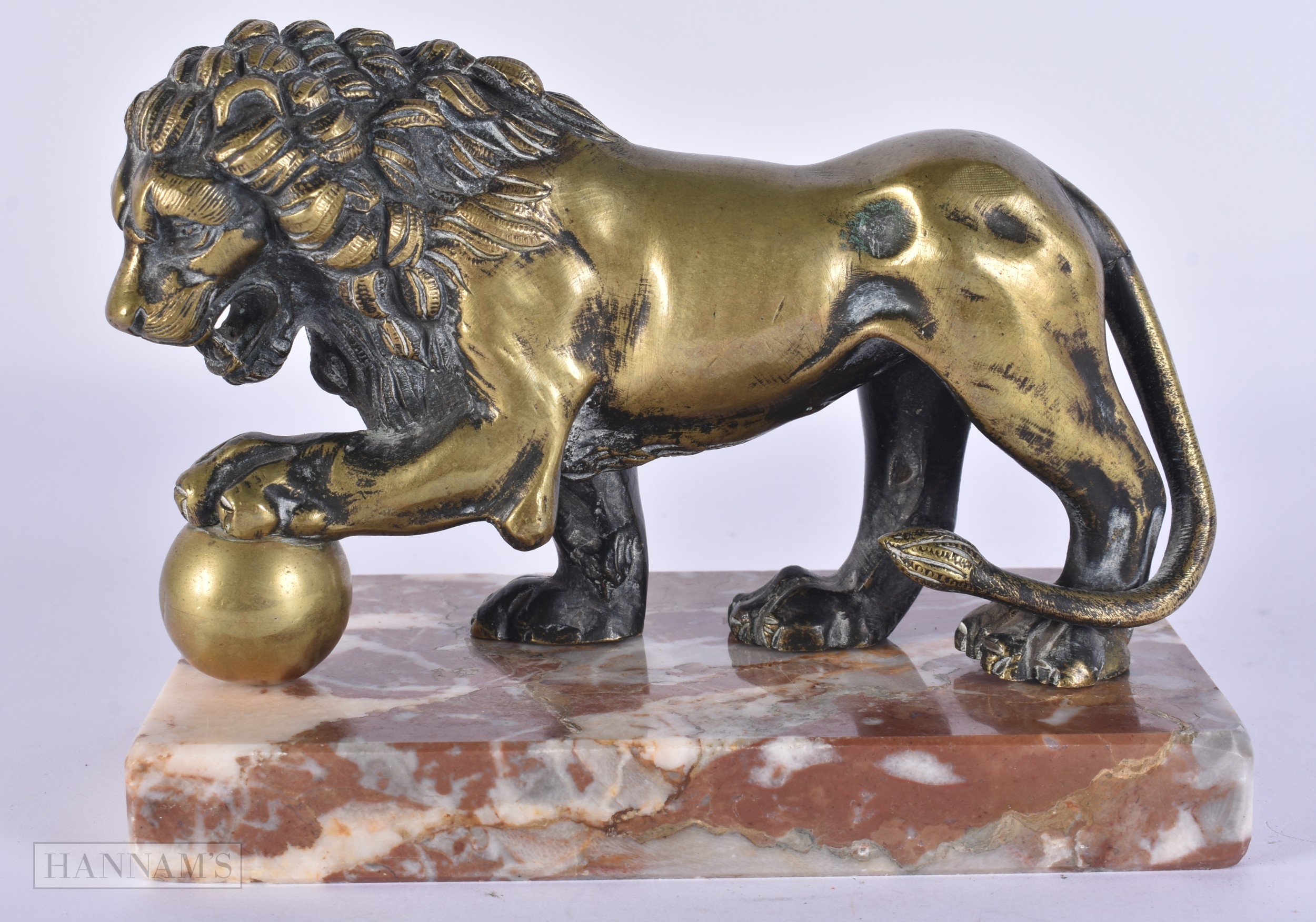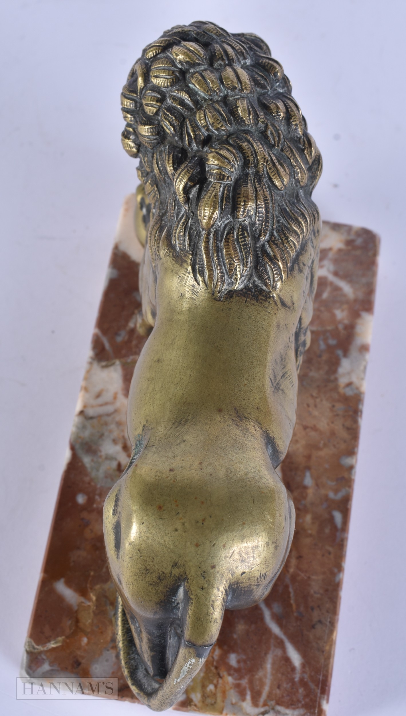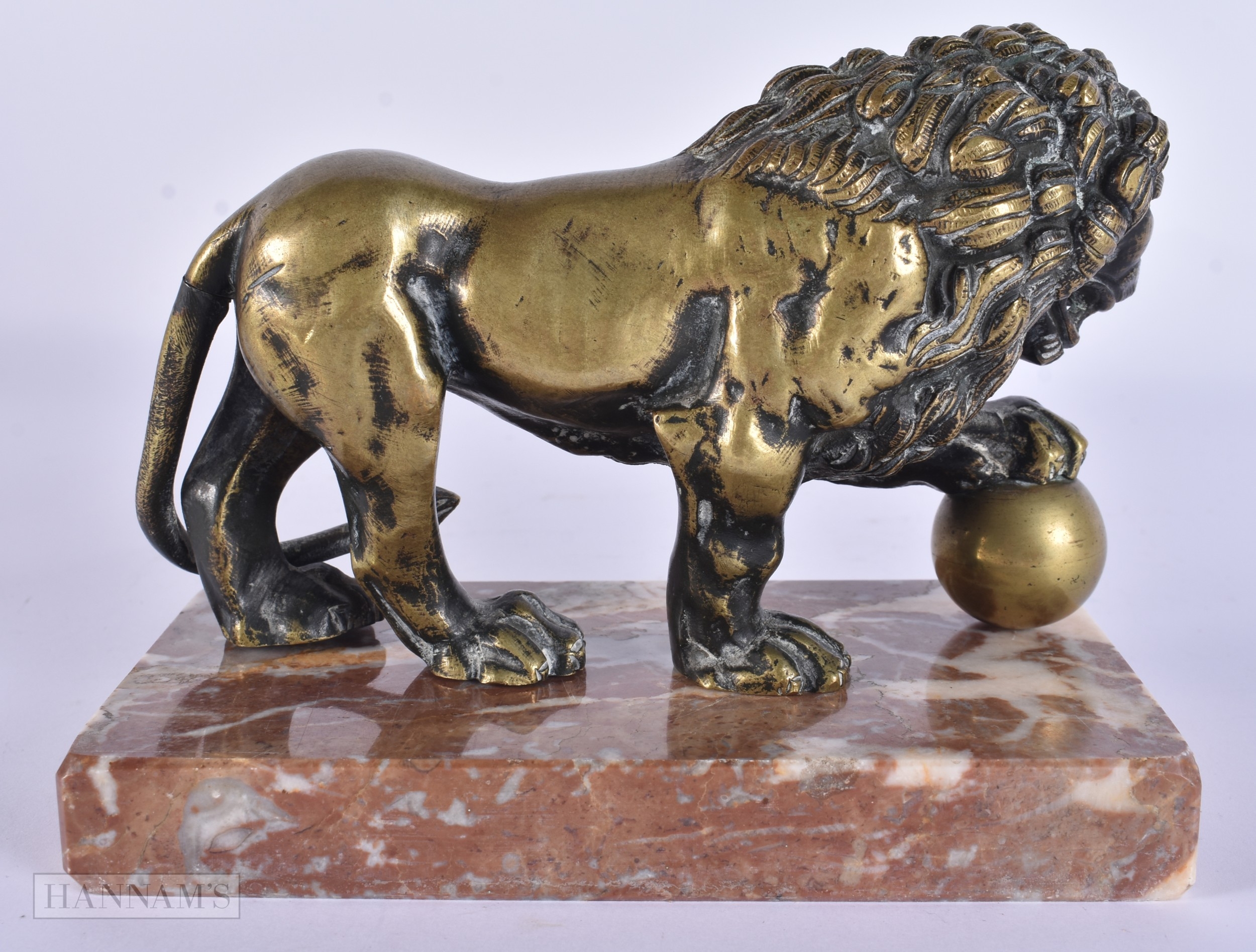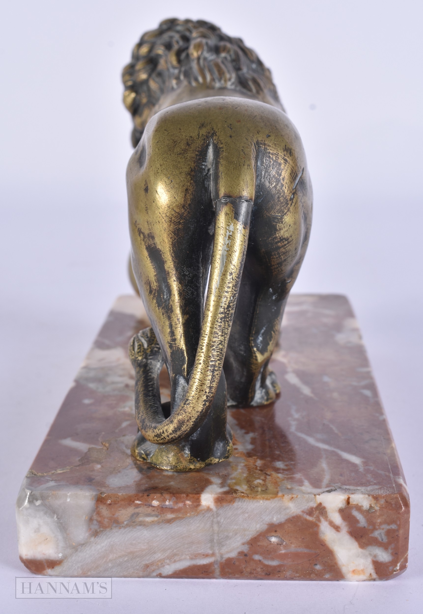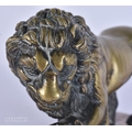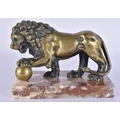 AN 18TH/19TH CENTURY EUROPEAN GRAND TOUR BRONZE FIGURE OF THE MEDICI LION upon a marble base. 15cm x 12 cm.