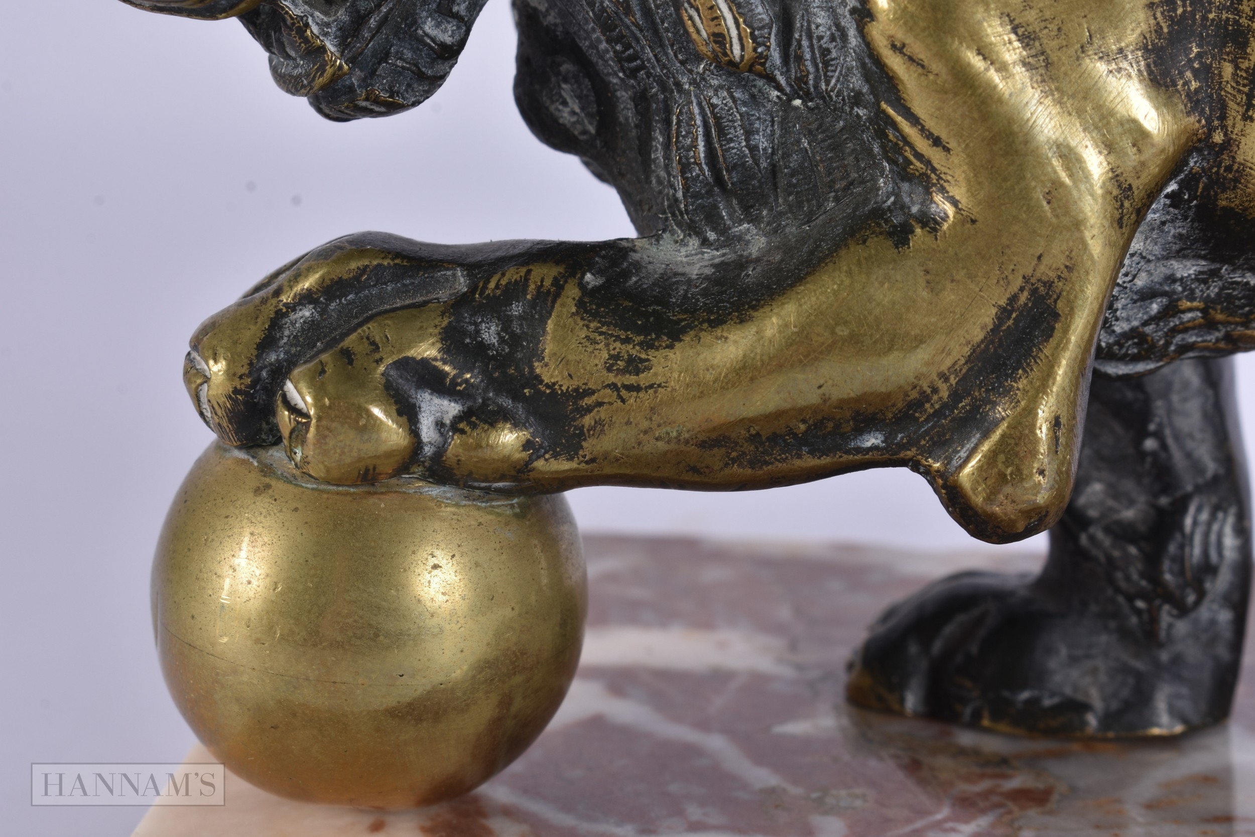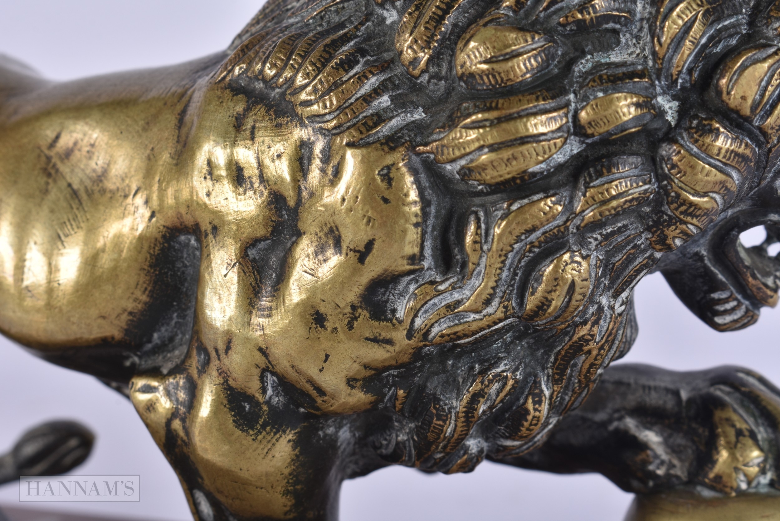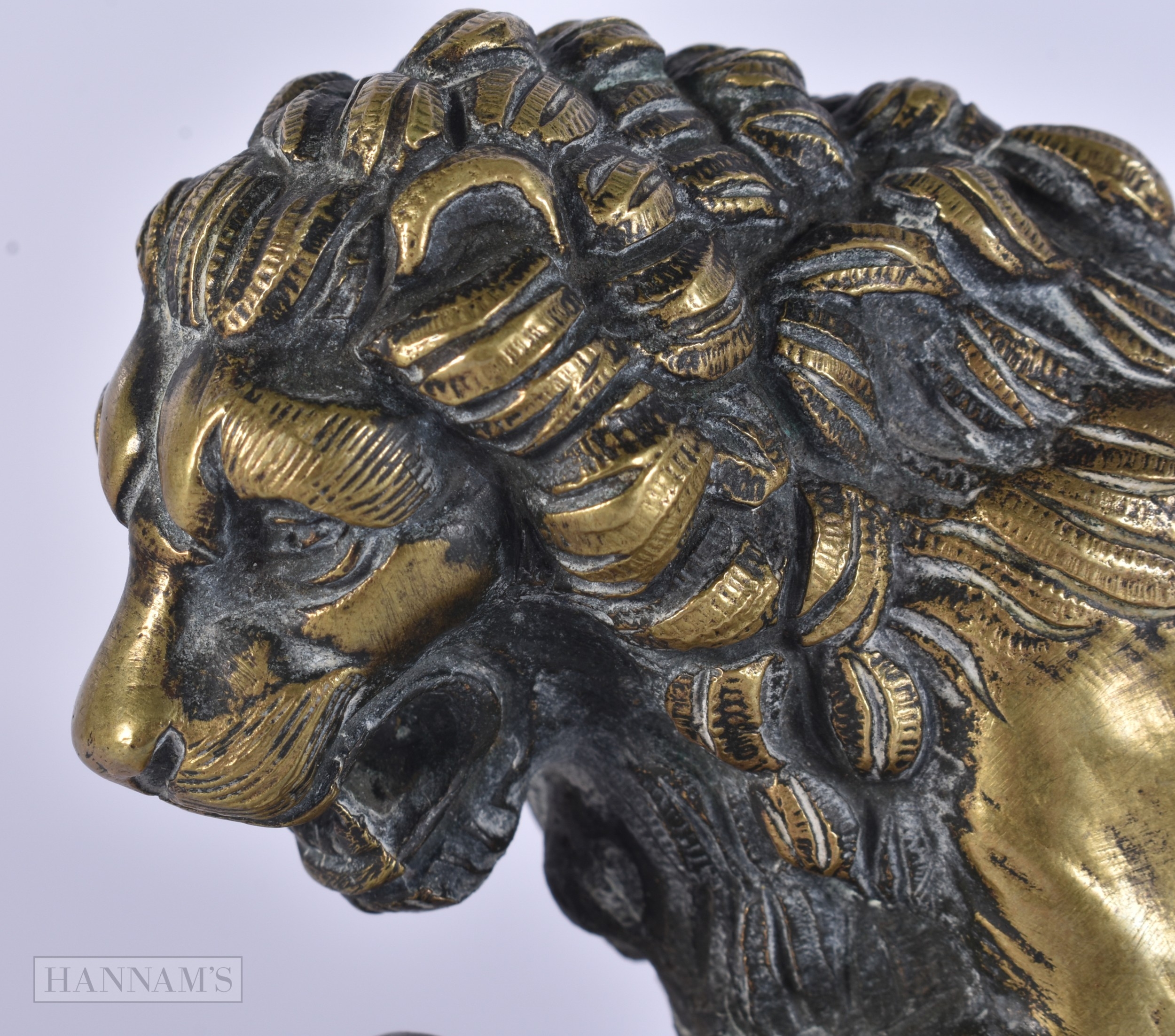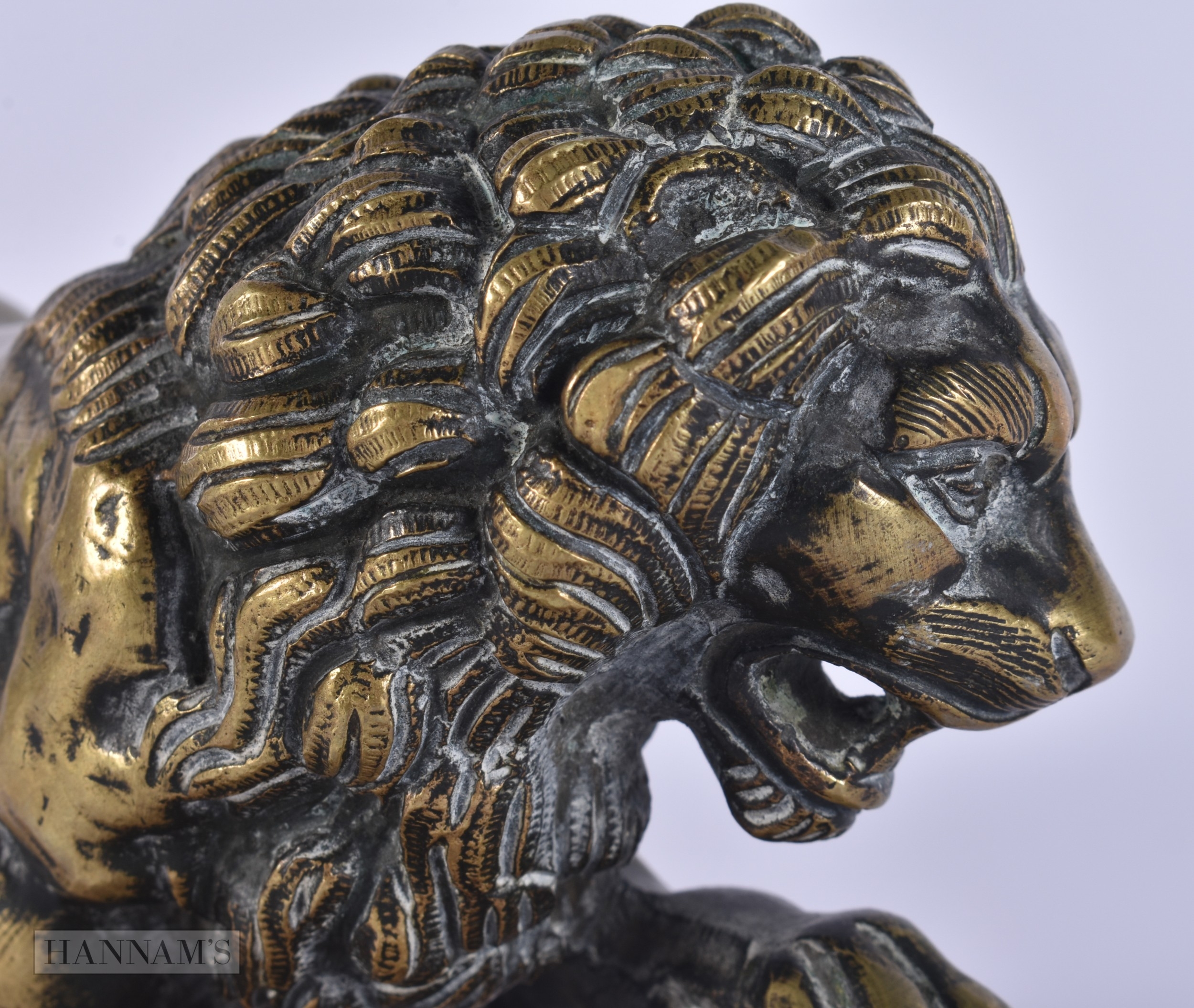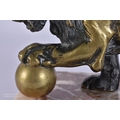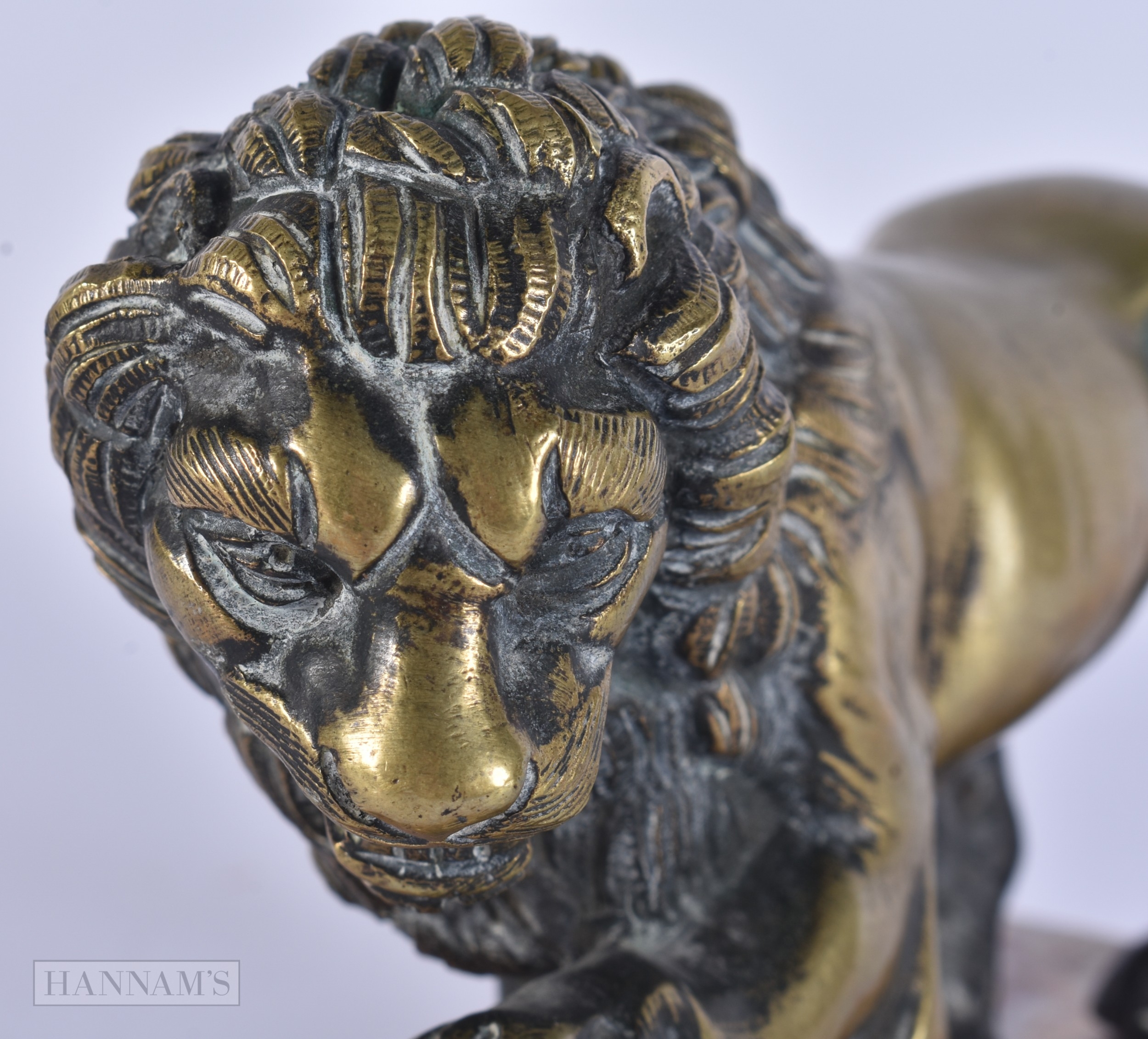 AN 18TH/19TH CENTURY EUROPEAN GRAND TOUR BRONZE FIGURE OF THE MEDICI LION upon a marble base. 15cm x 12 cm.