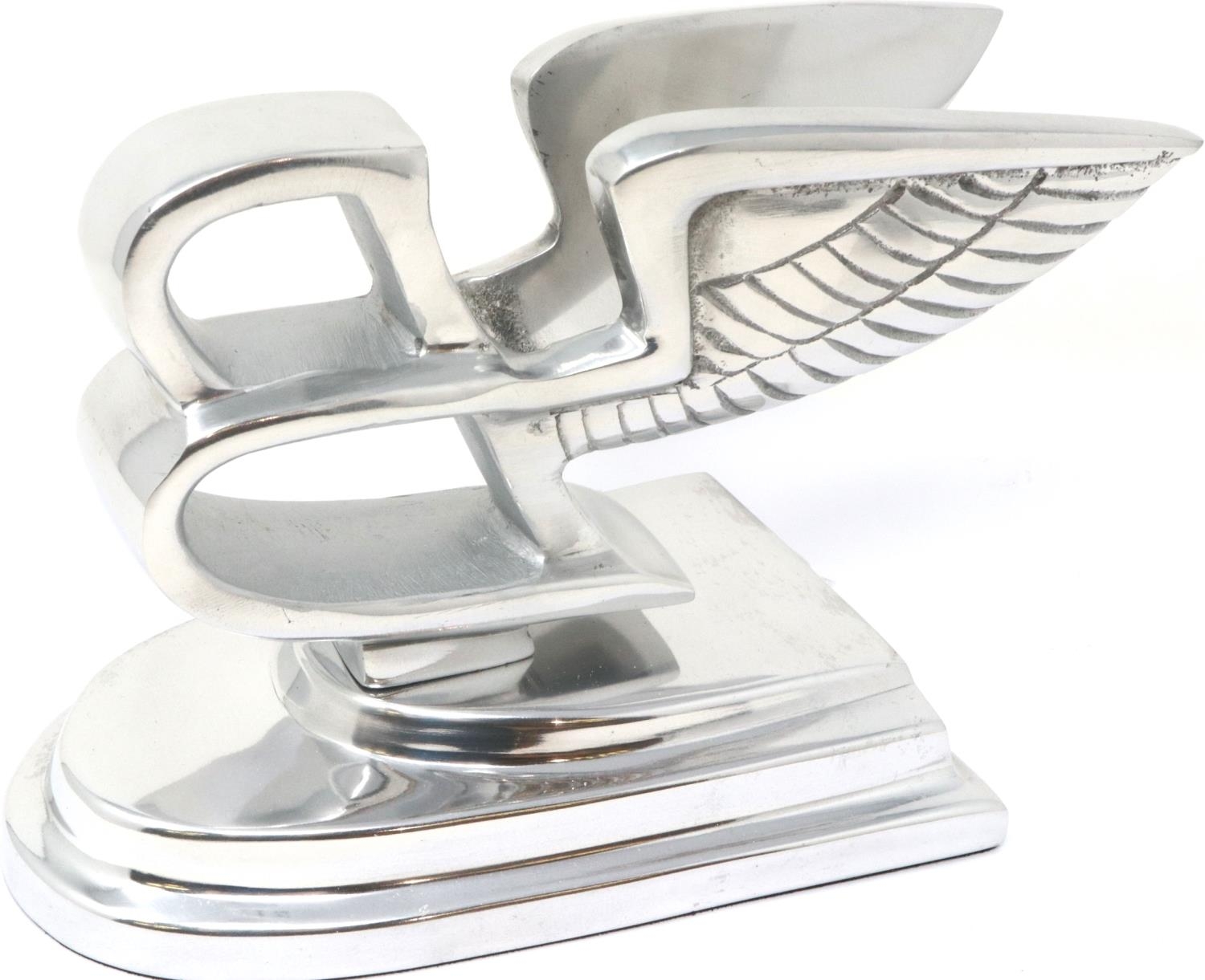 Chrome winged Bentley B on base, H: 13 cm. P&P Group 1 (£14+VAT for the first lot and £1+VAT for subsequent lots)
