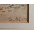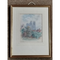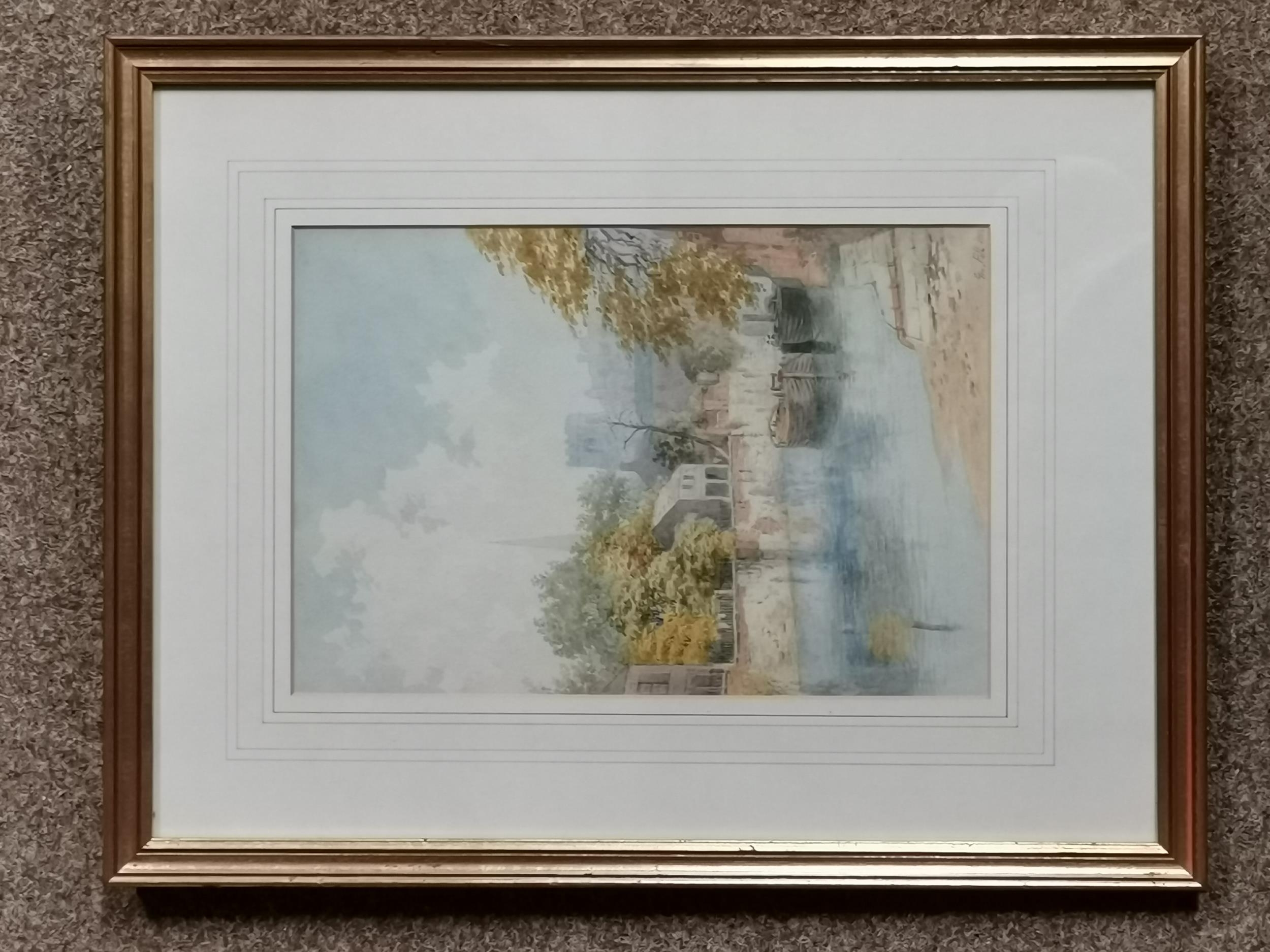 George Fall (British, 1848-1925), View from the River Ouse towards St Martin le Grand Church and St Mary's Church, York, watercolour, signed and dated 1886 lower right, framed. 29cm by 19.5cm