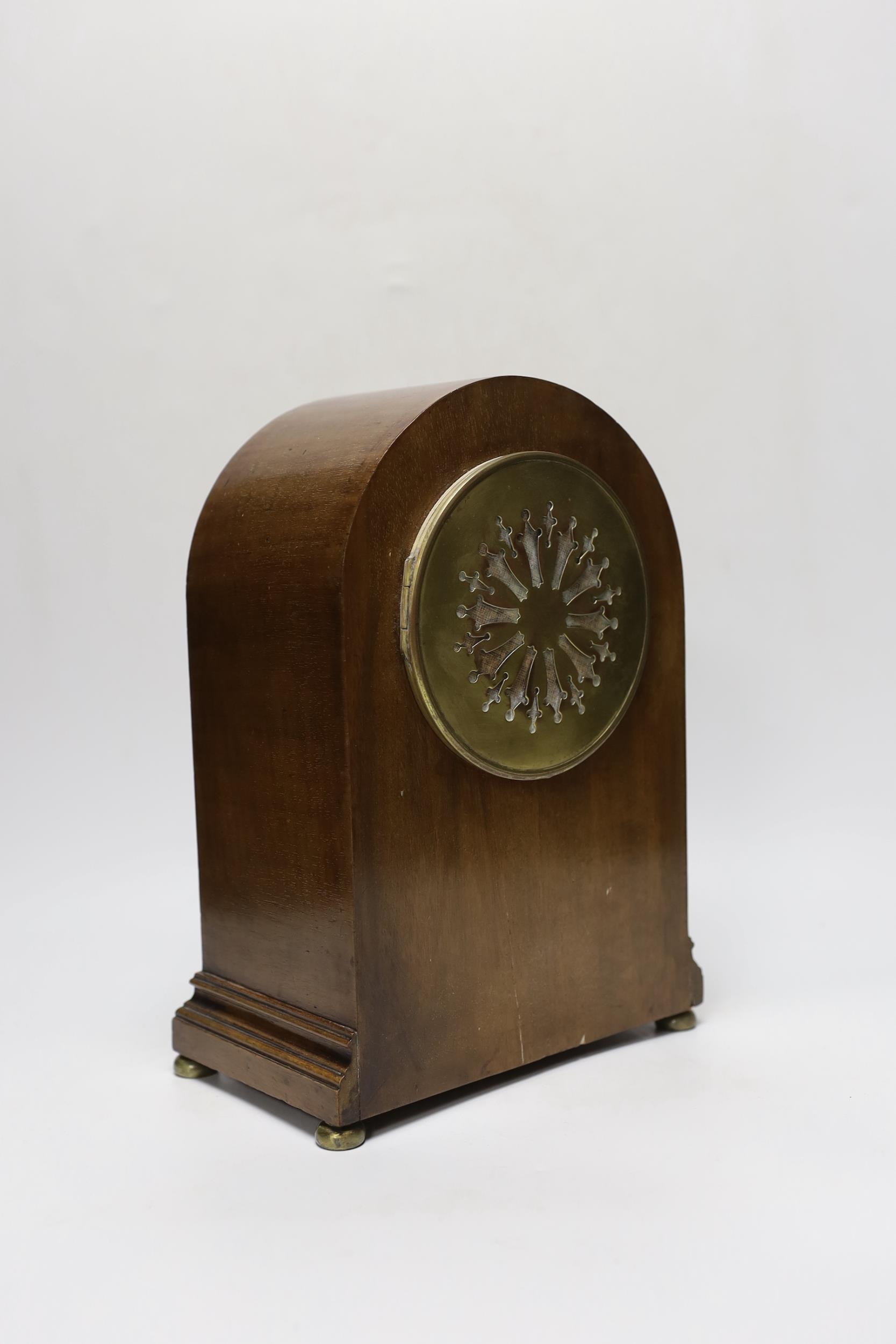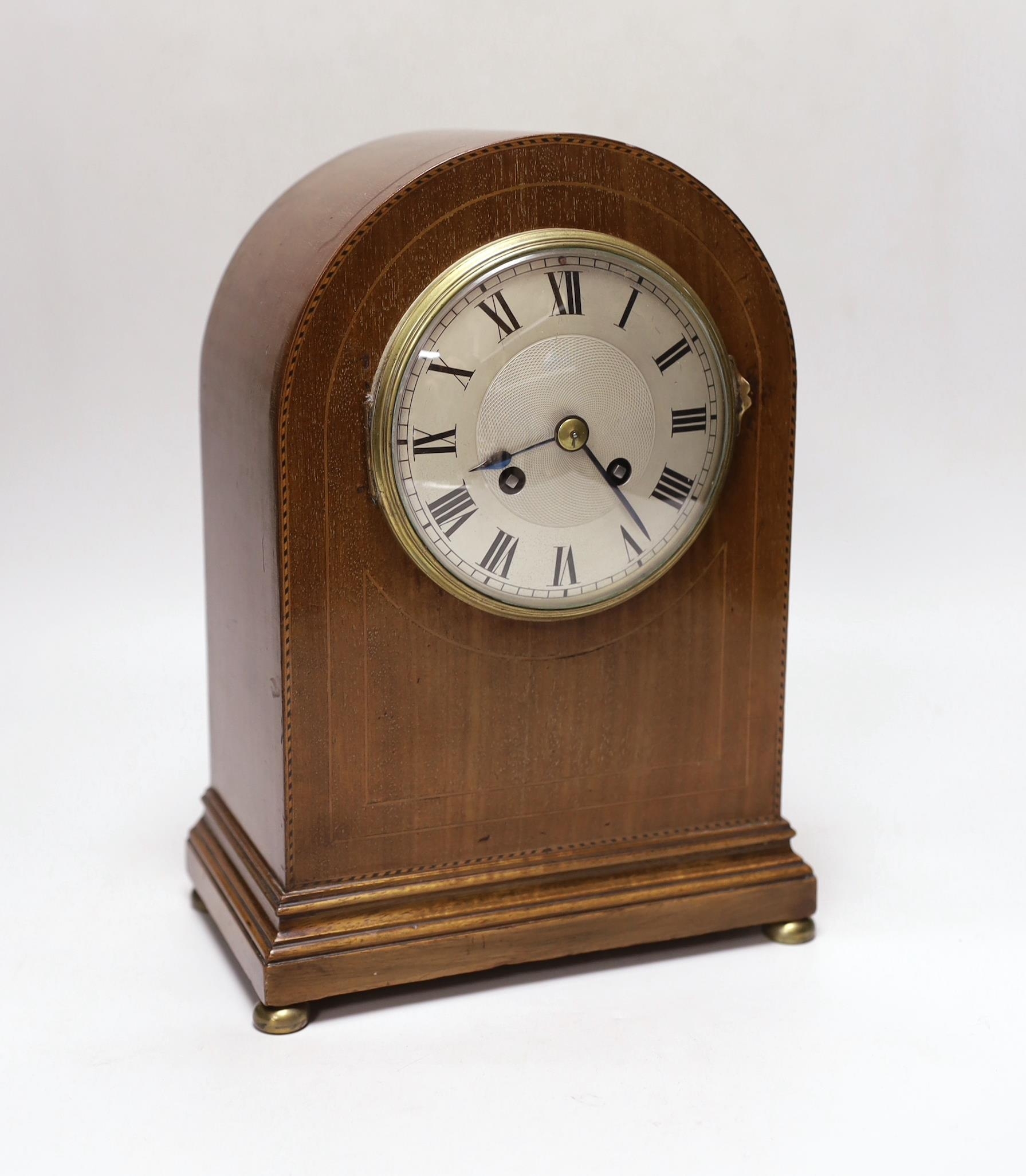 An Edwardian inlaid mahogany mantel clock, 29cm