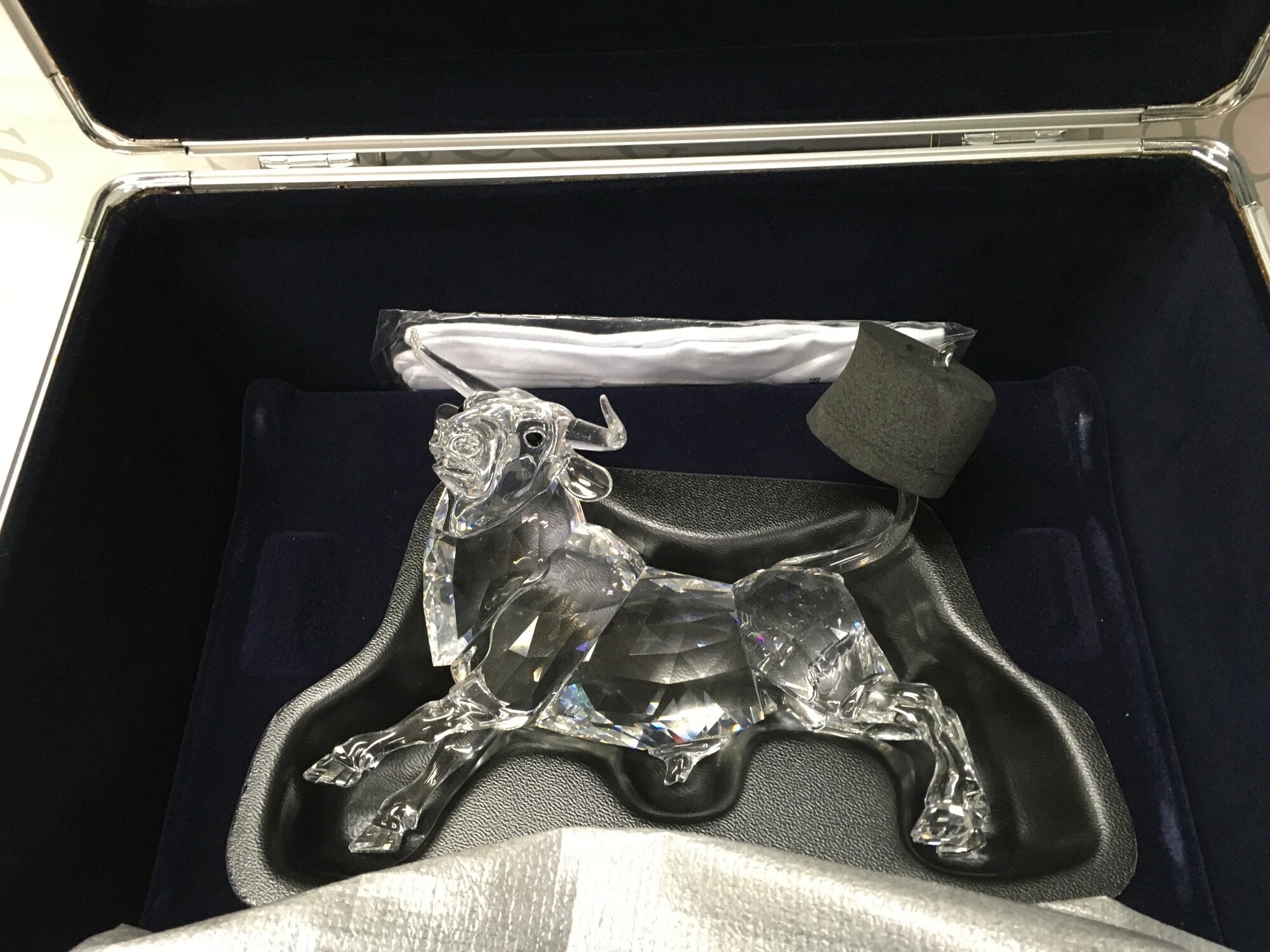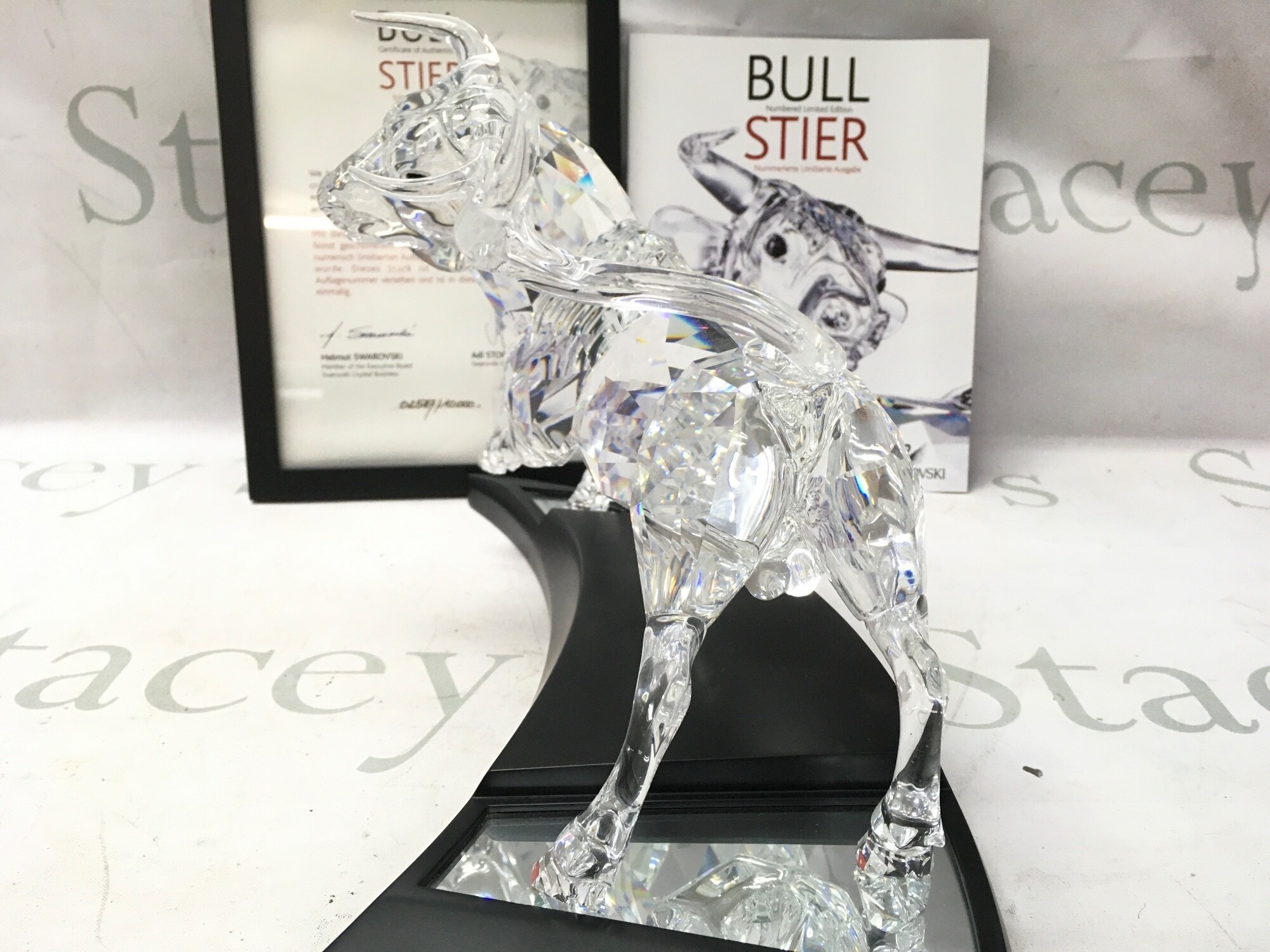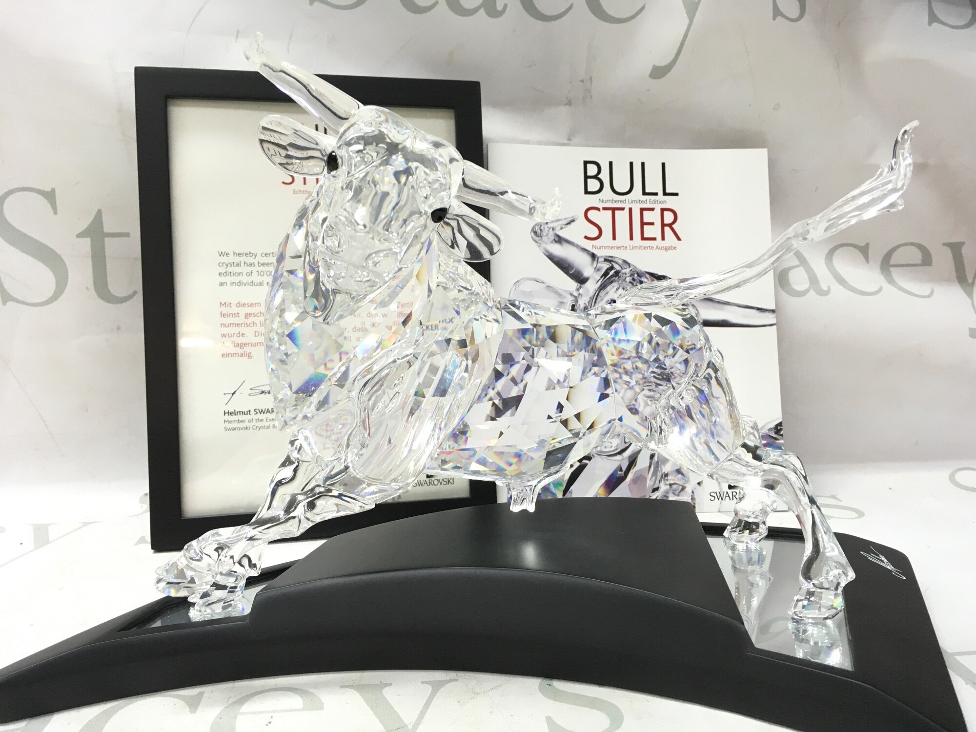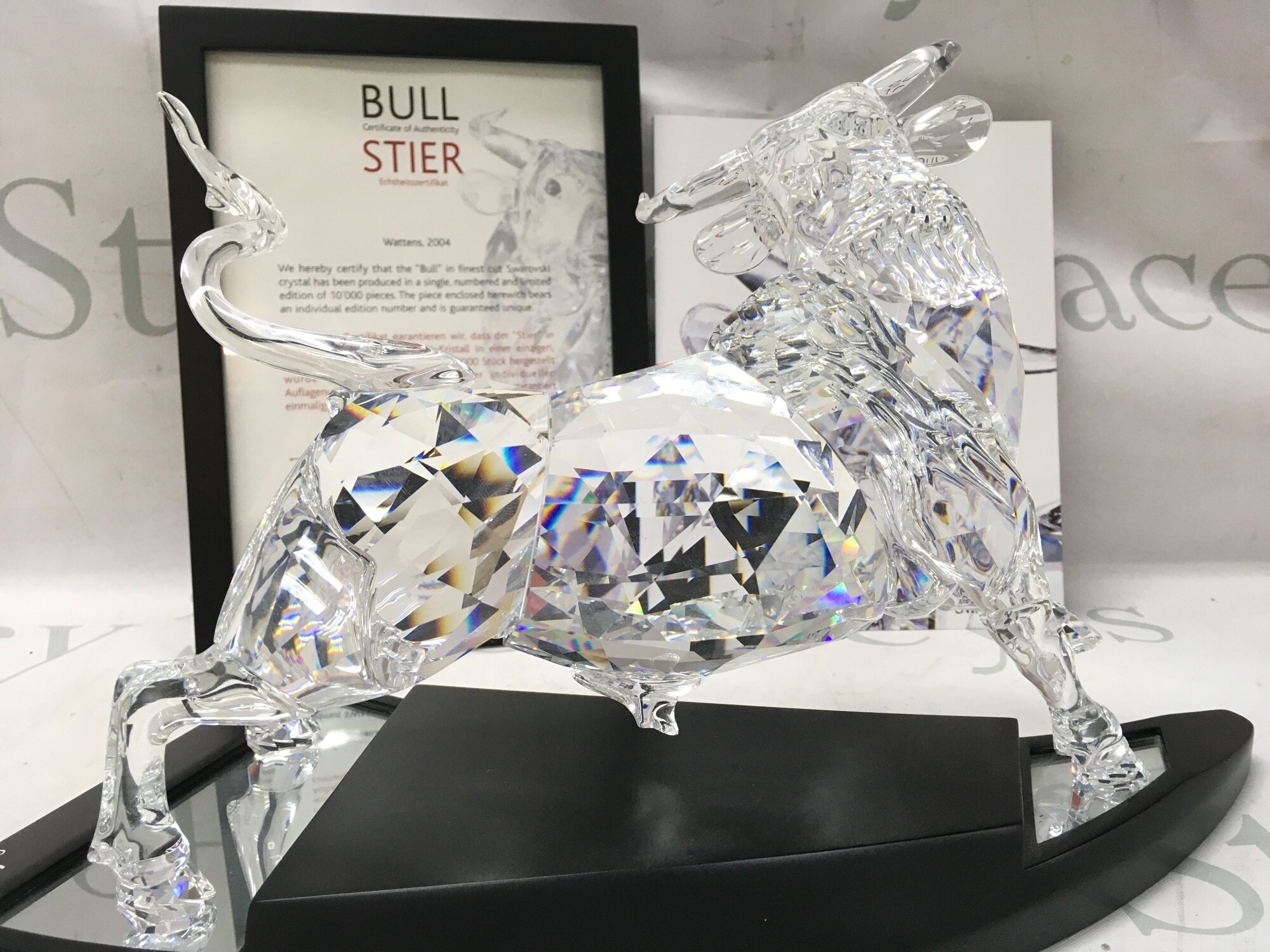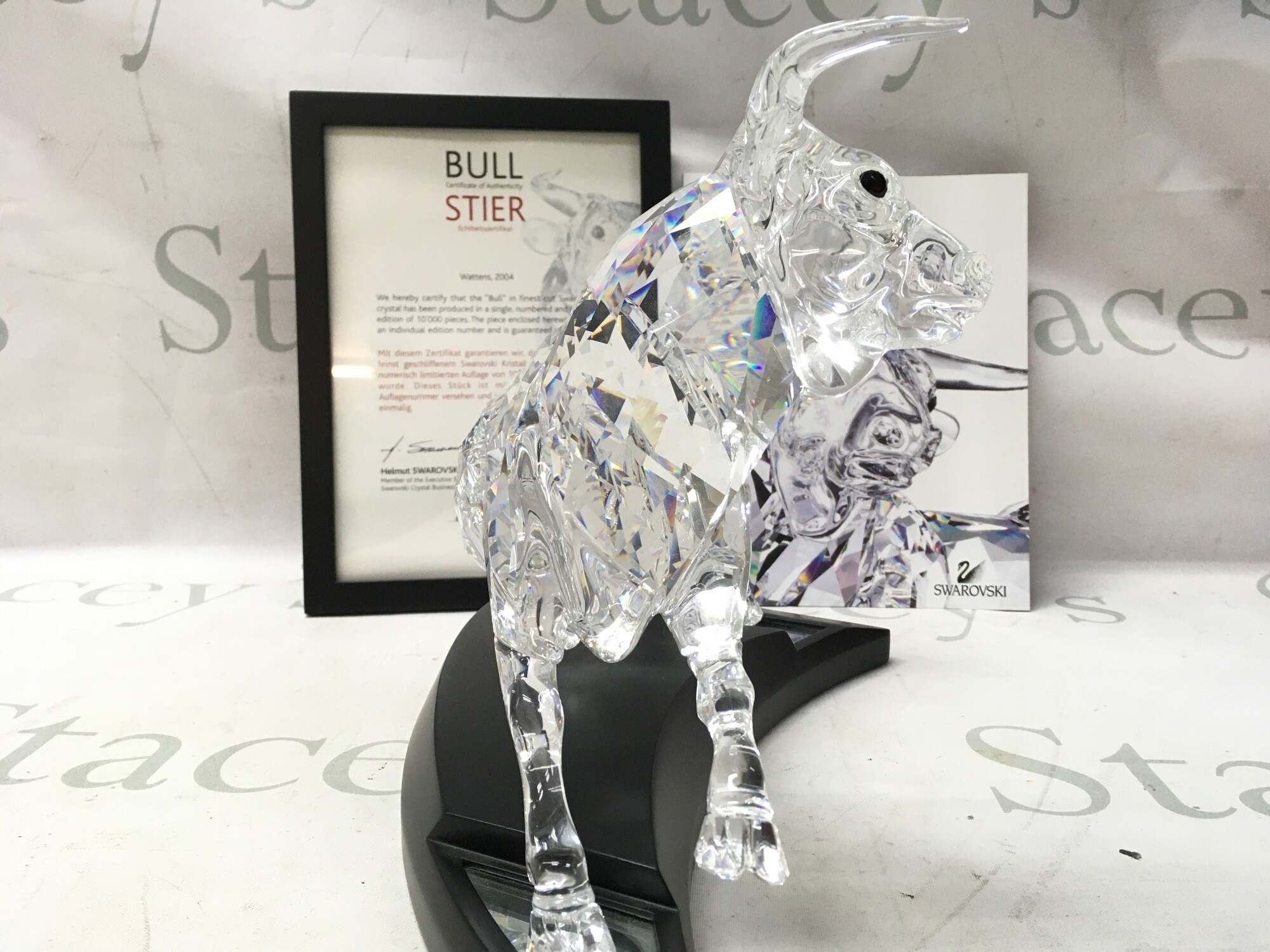 A cased Swarovski Crystal 2004 bull figure. Limited edition number 2587 of 10000. Designed by Adi Stocker. No damage or restoration