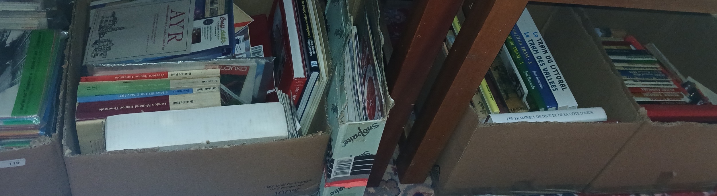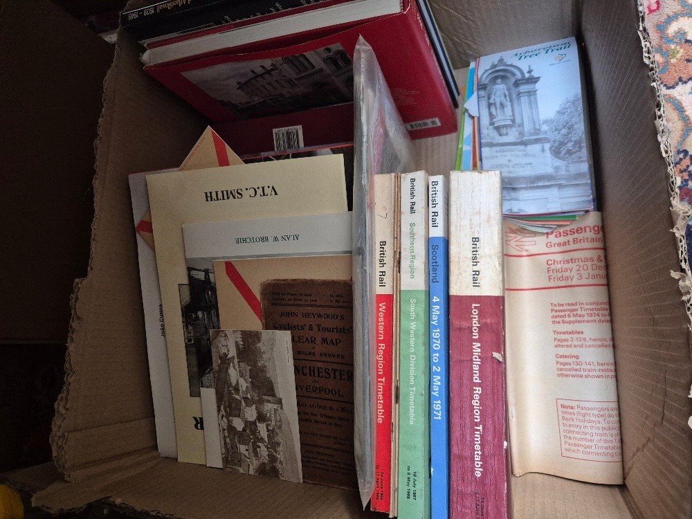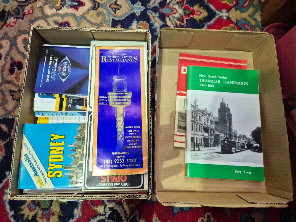 A collection of mainly public transport and tourism related books and ephemera, mainly late 20th/early 21st century, some mid 20th century, 4 boxes.