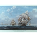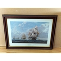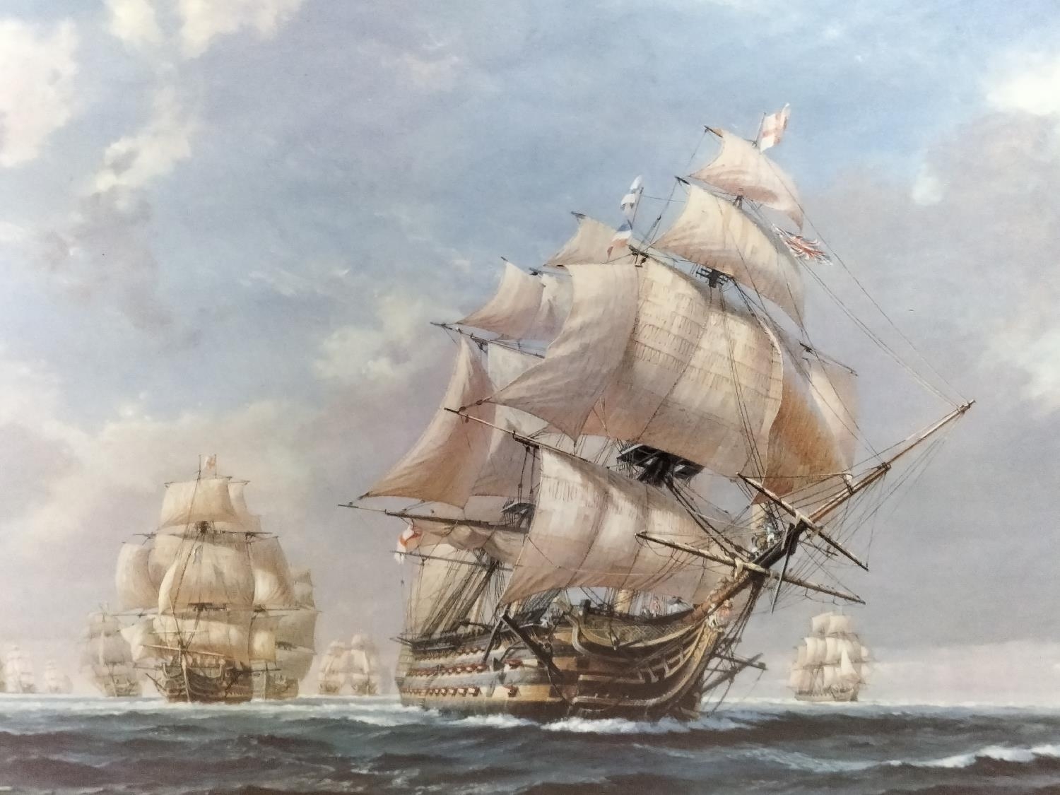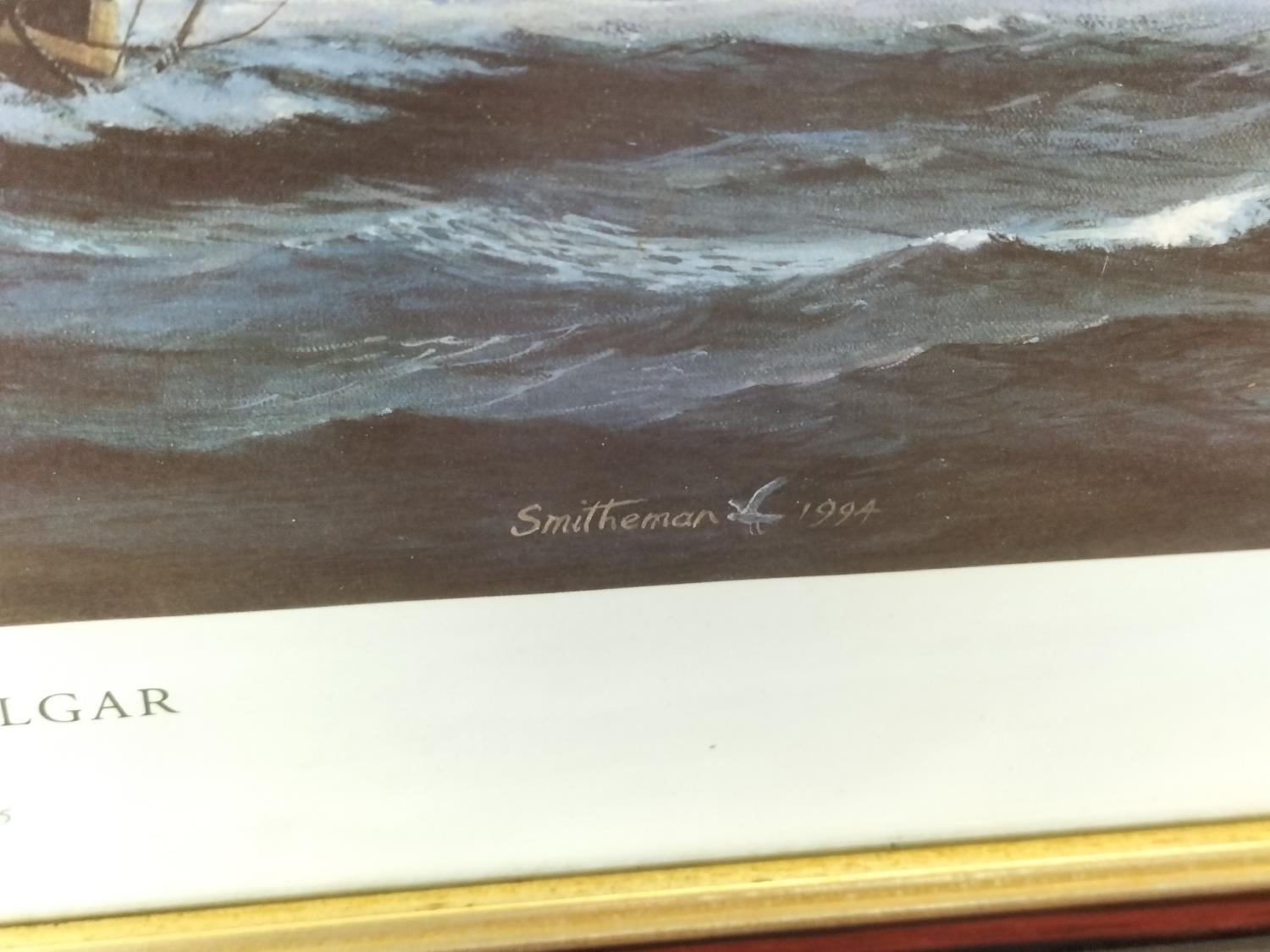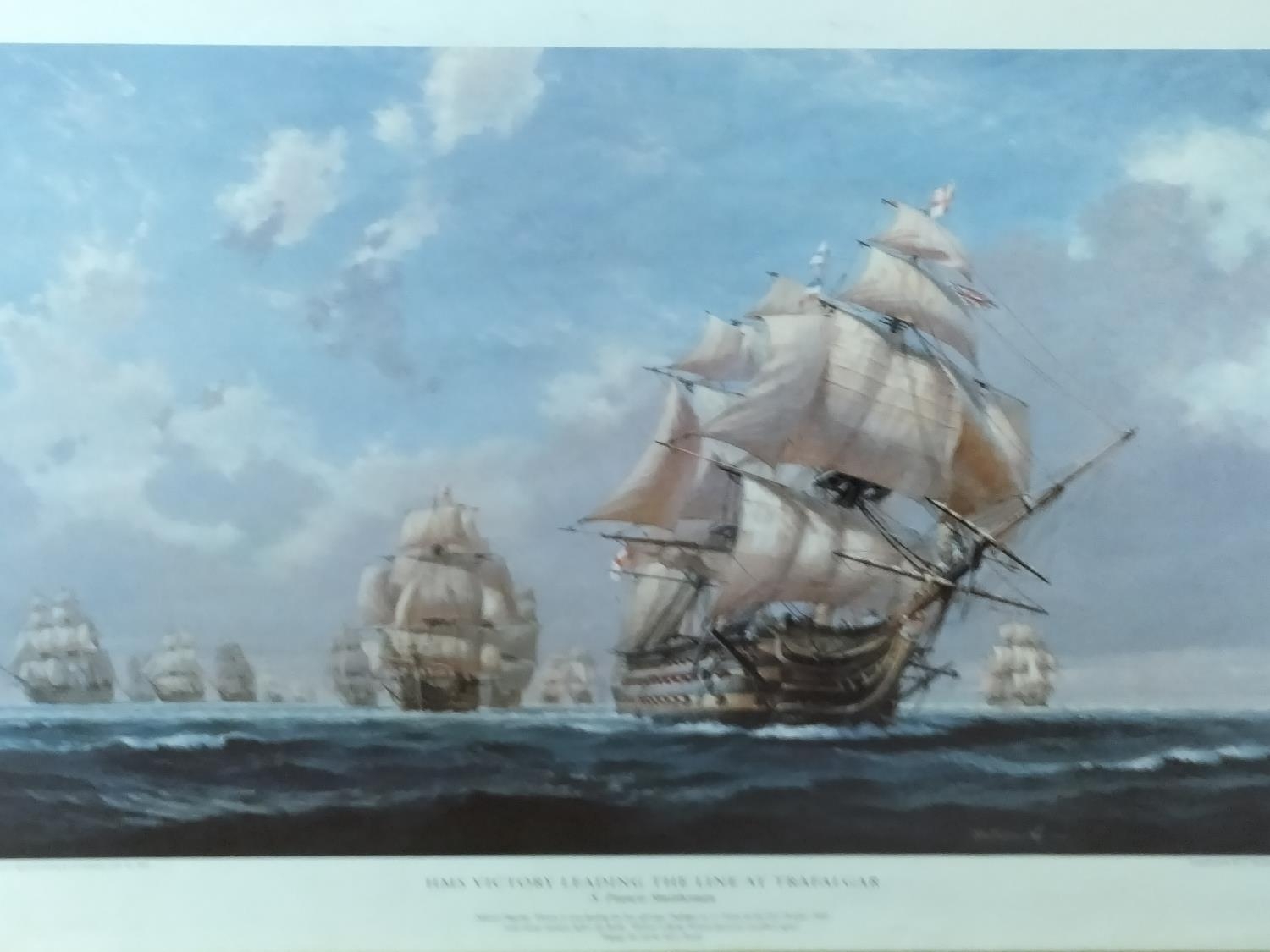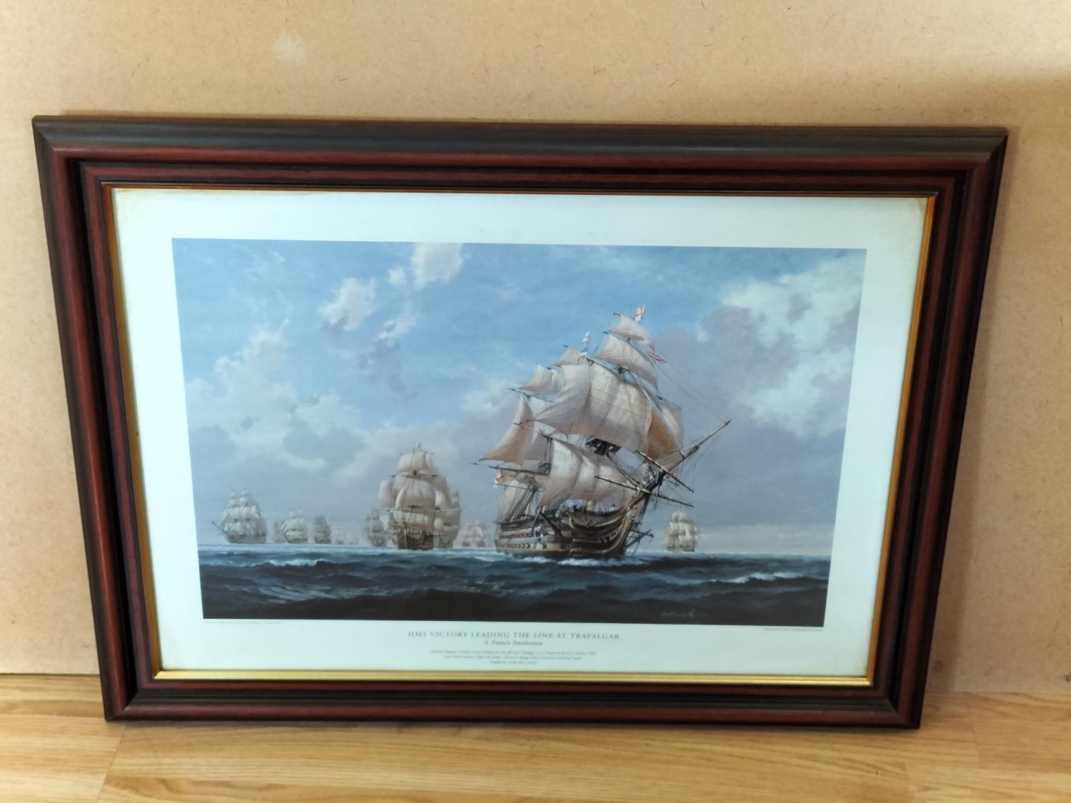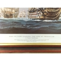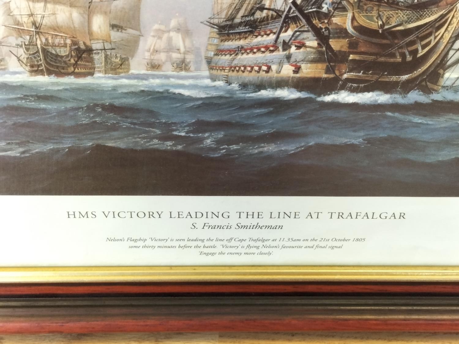 Large Framed and Mounted Print 'HMS Victory Leading The Line at Trafalgar' by S Francis Smitheman. 68cm x 52cm.