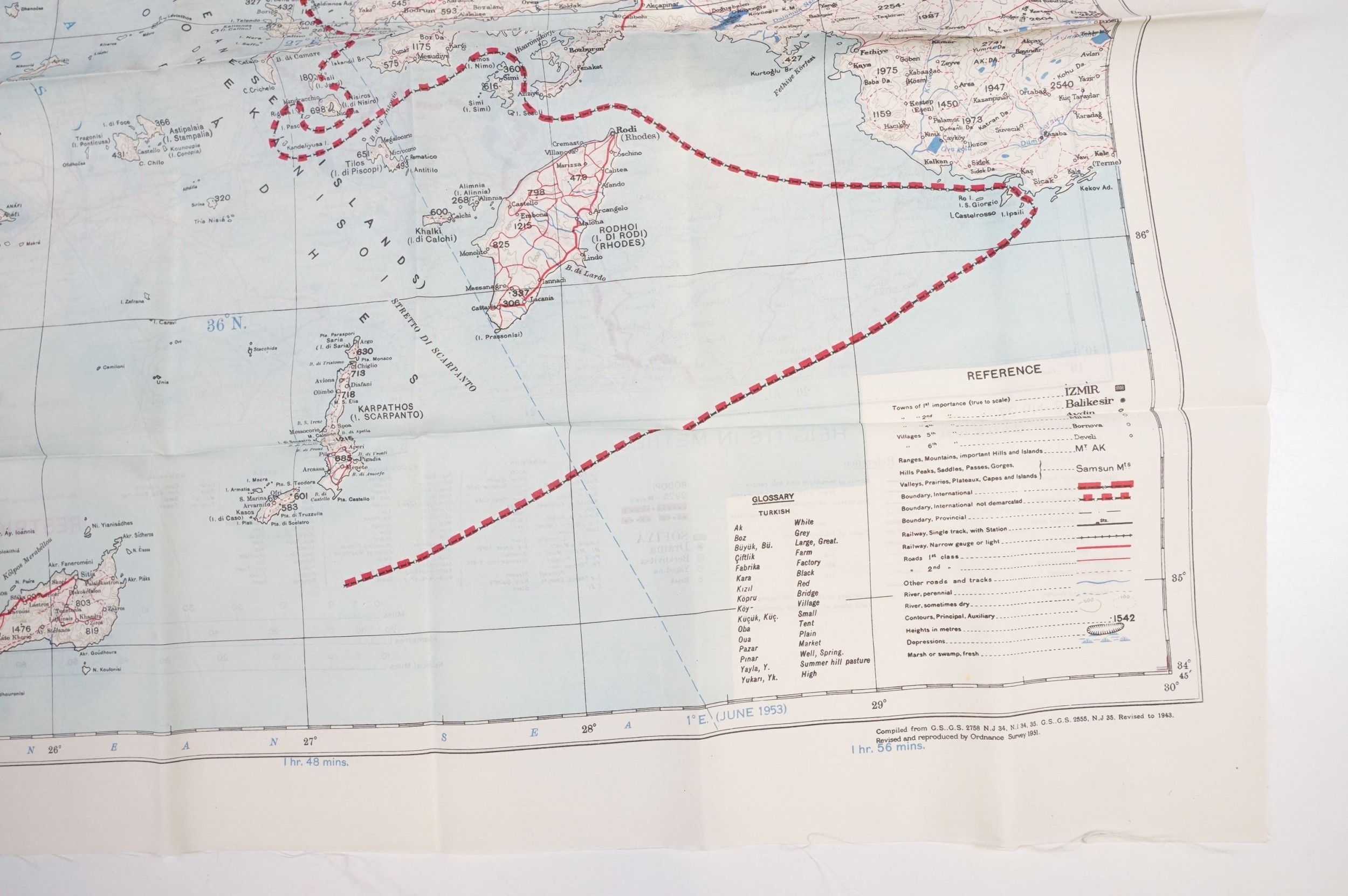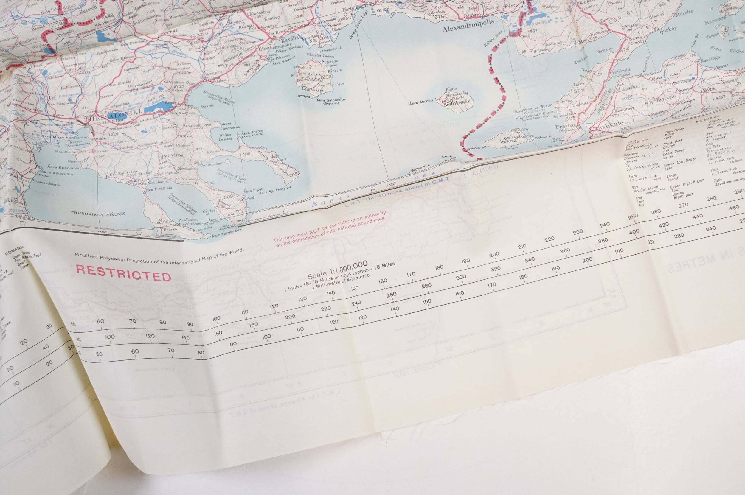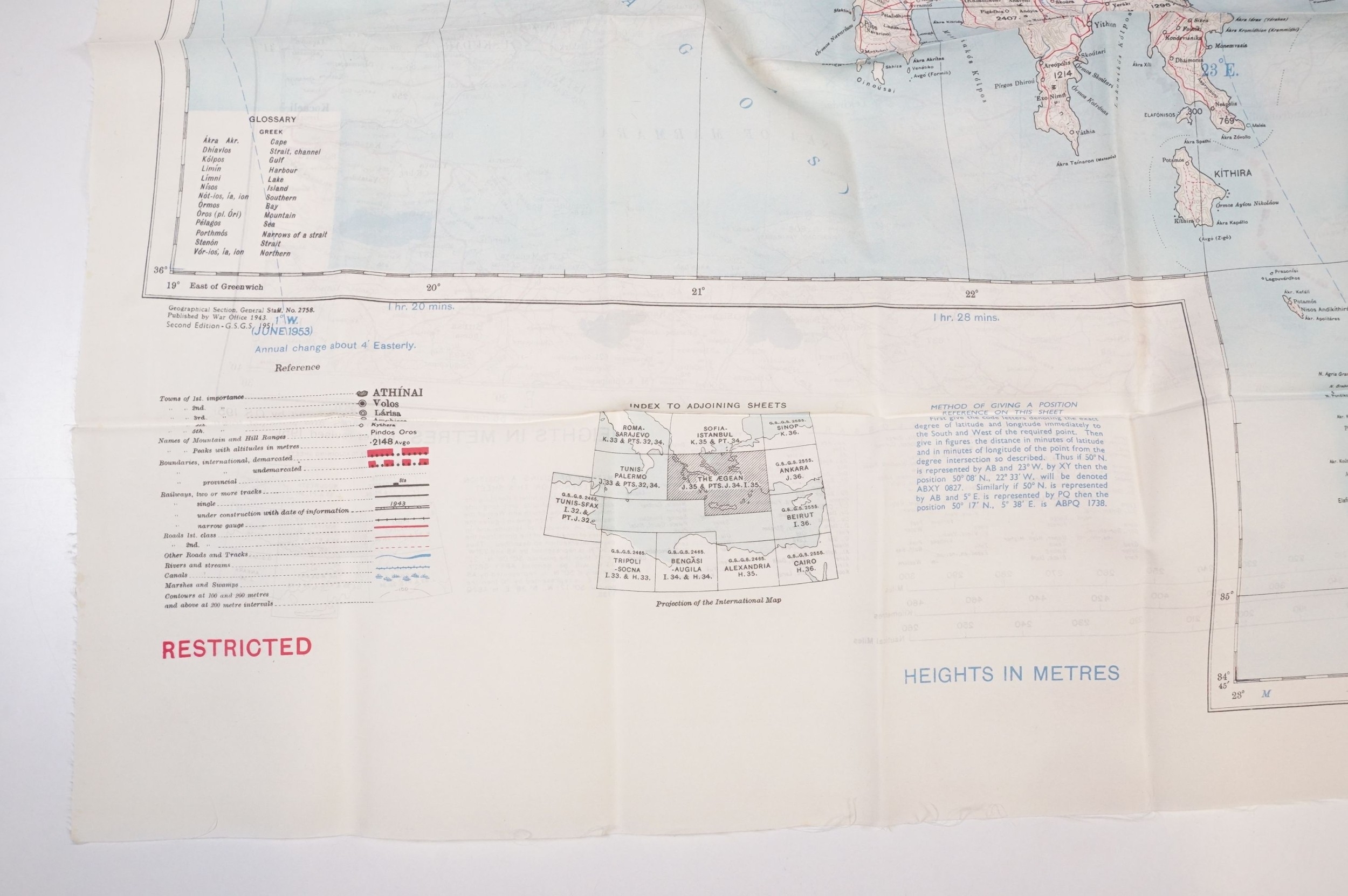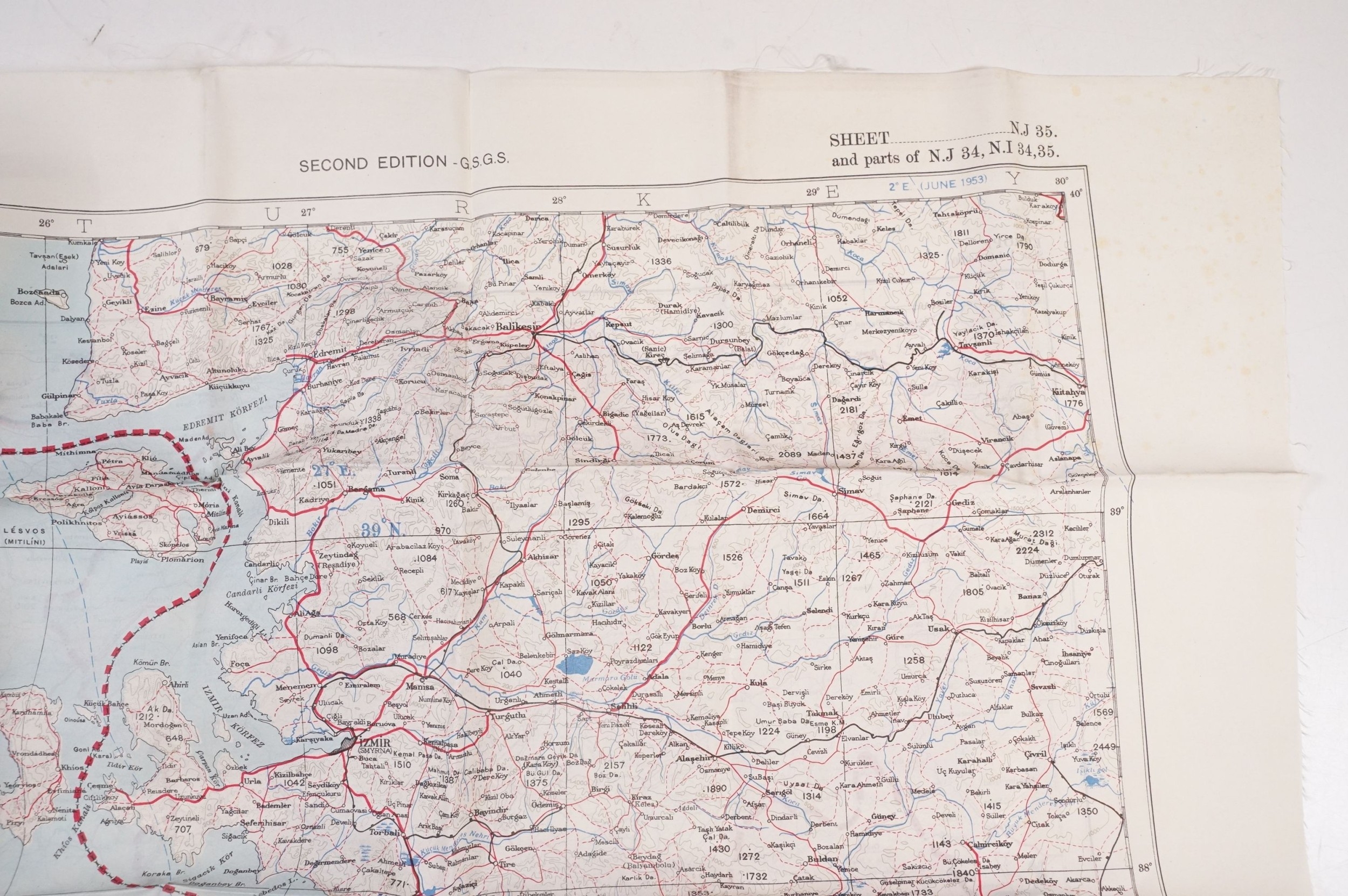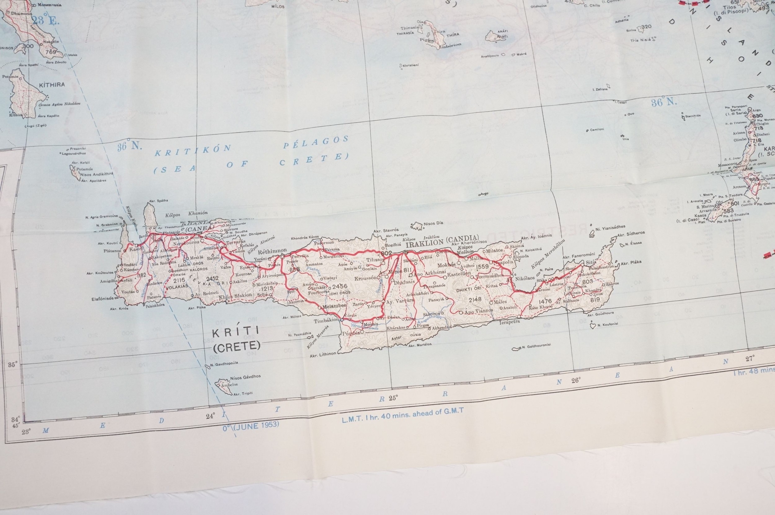 A Royal Air Force / RAF silk escape map covering Greece, Greek Islands, Corfu, Crete, Rhodes, Zante, Athens, Albania and the Aegean Sea.