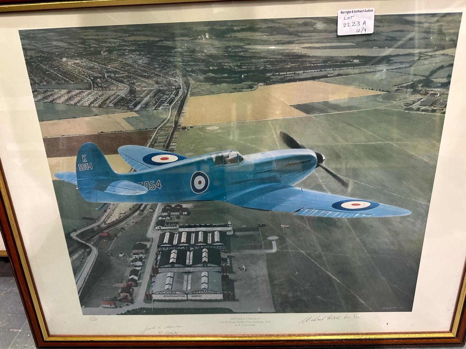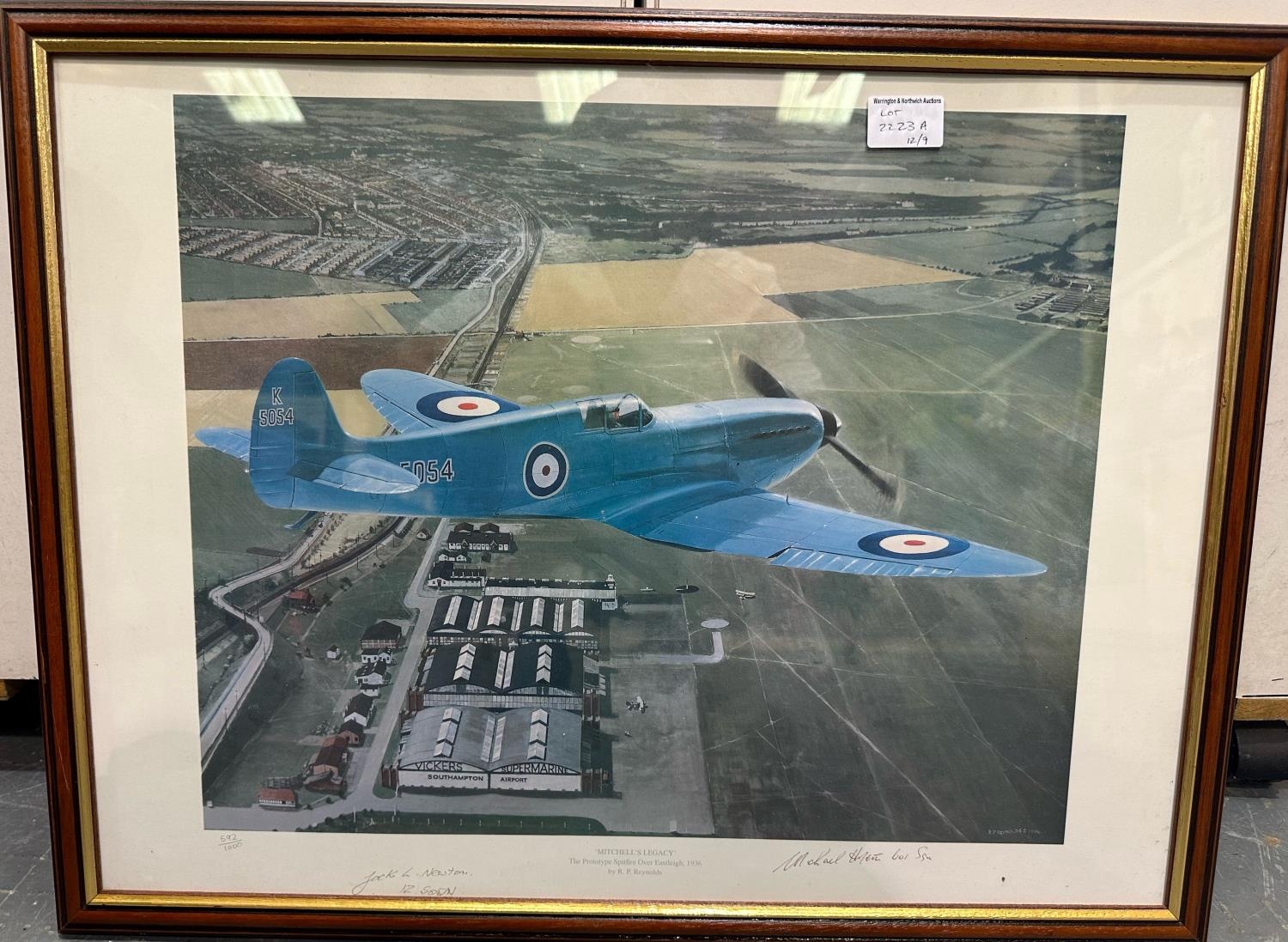 RP Reynolds limited edition print, Mitchells Legacy, signed to margin by Jack Newton of 12 Sqn. Not available for in-house P&P