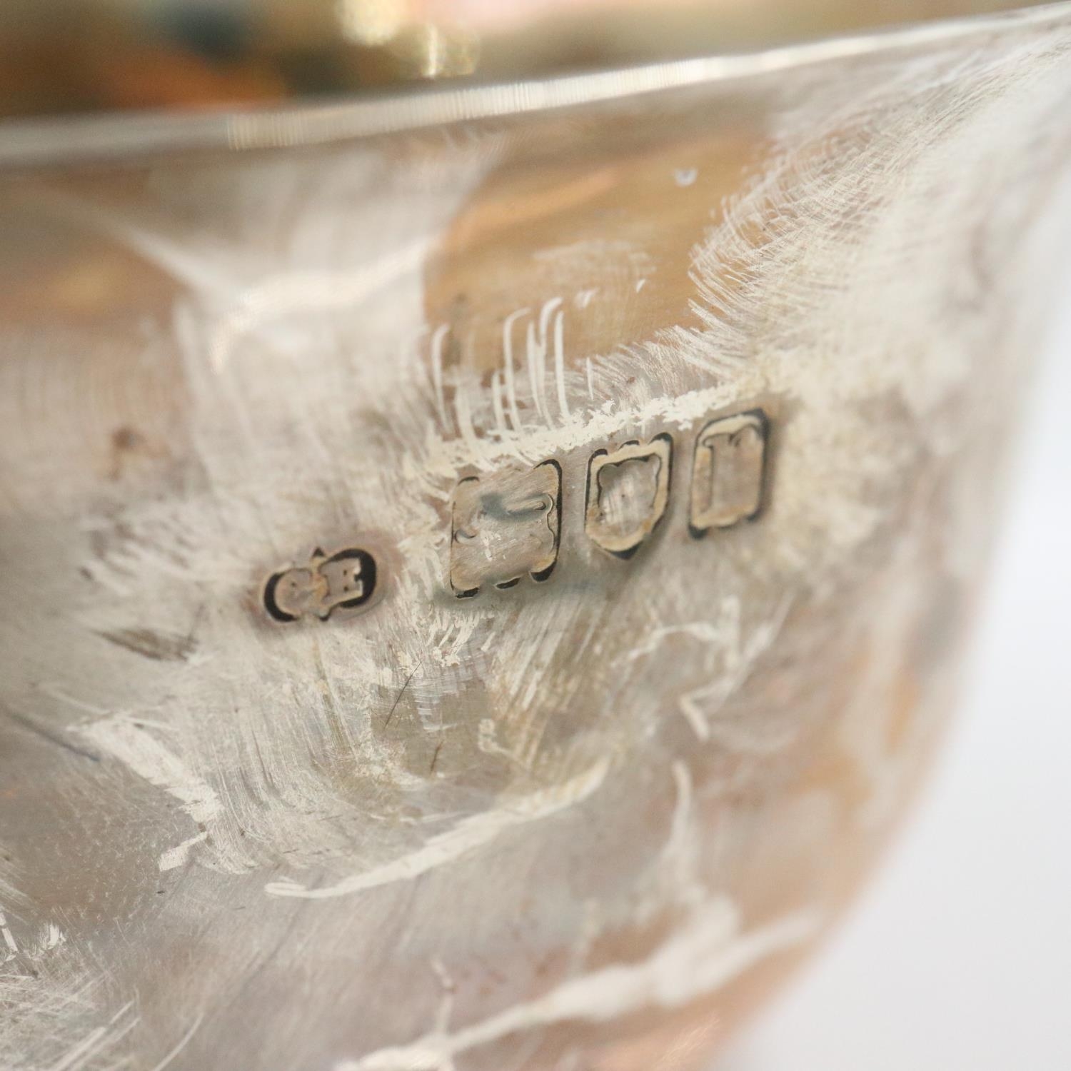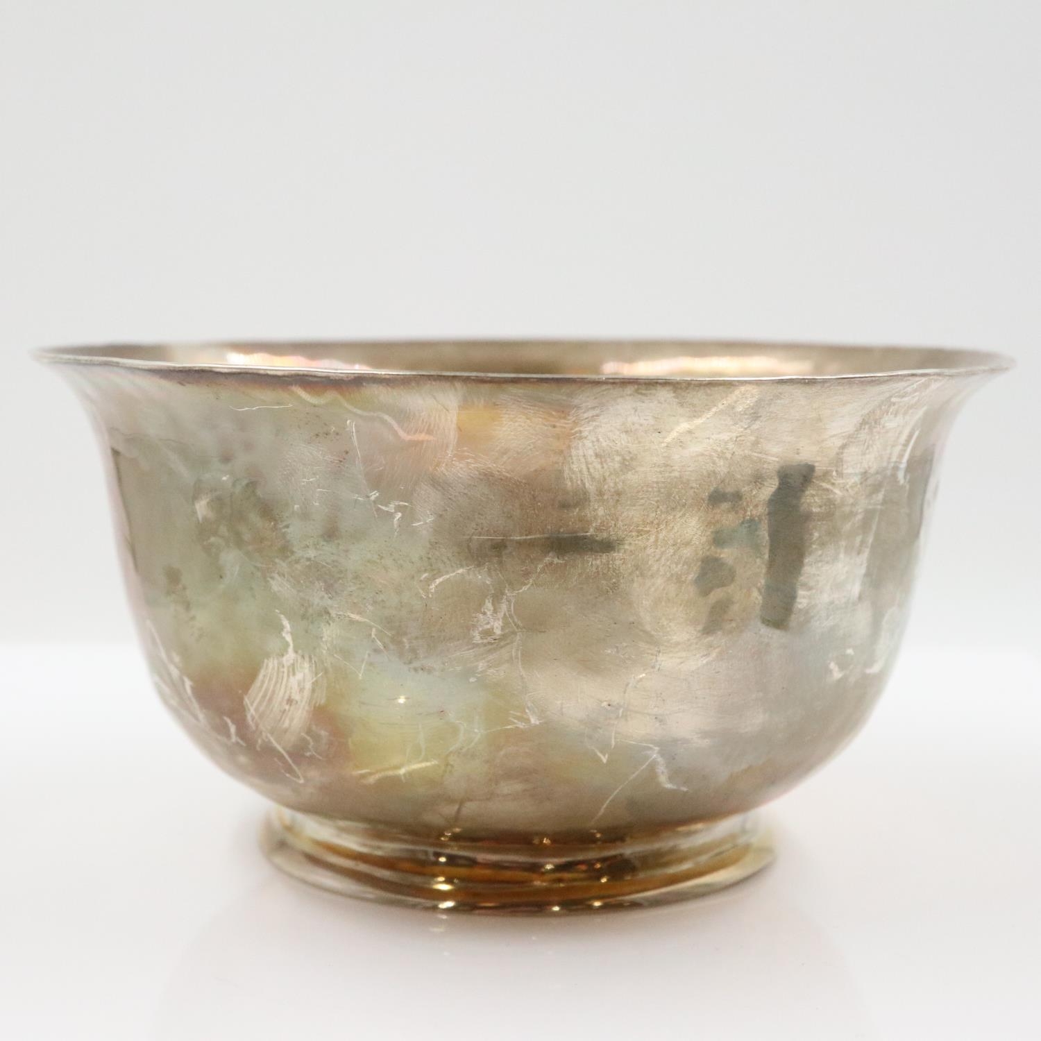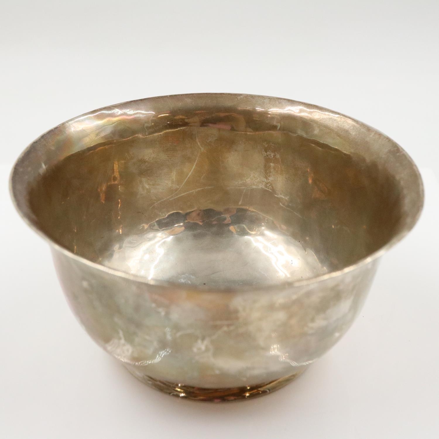 George V hallmarked silver footed bowl, plannished design, by Charles Edwards, London assay 1912, 156g. UK P&P Group 1 (£18+VAT for the first lot and £2+VAT for subsequent lots)