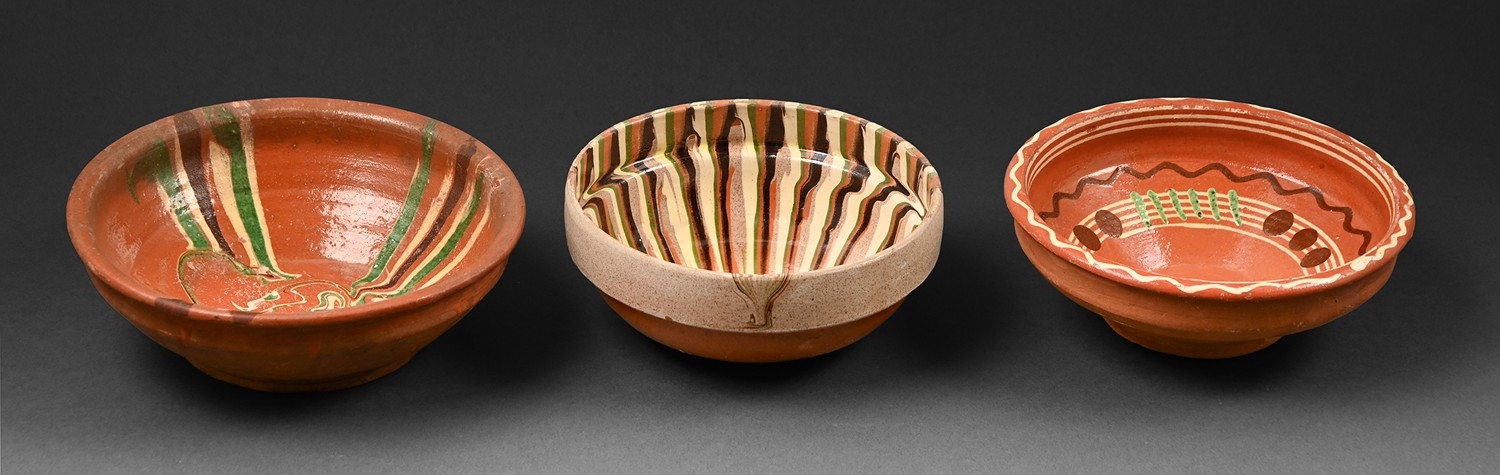 Three terracotta slipware bowls, early 19th c and later, 18cm diam and smaller