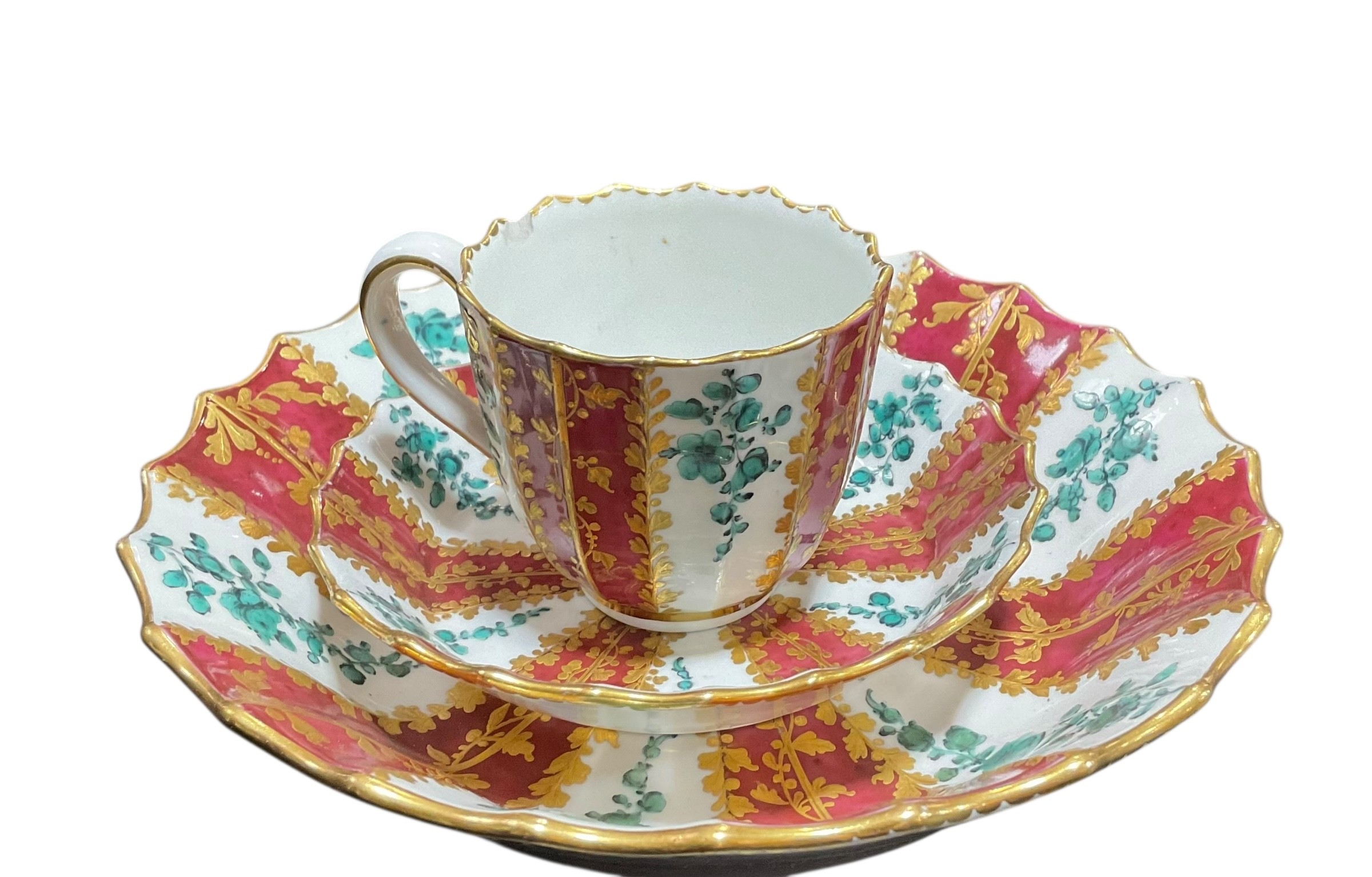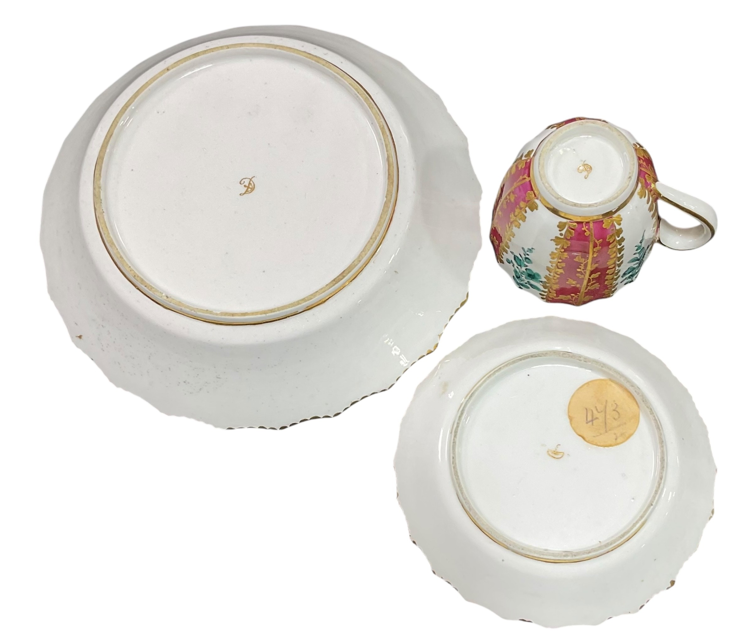 Chelsea Derby Trio , Gold Anchor / D Mark 1772–1777 Chip on Cup.