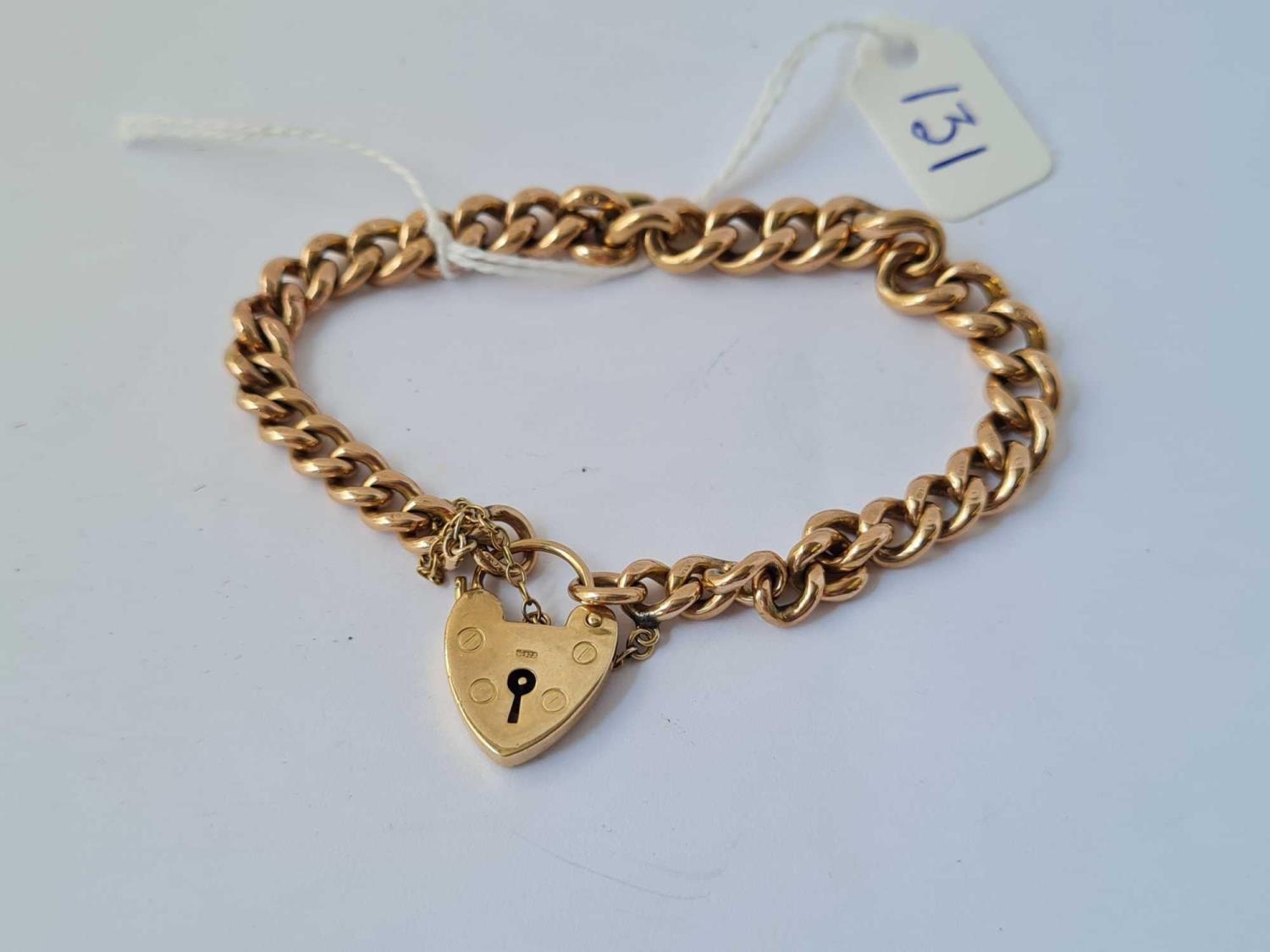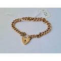 A GOOD CURB LINK BRACELET WITH HEART PADLOCK IN 9CT - 26 GMS