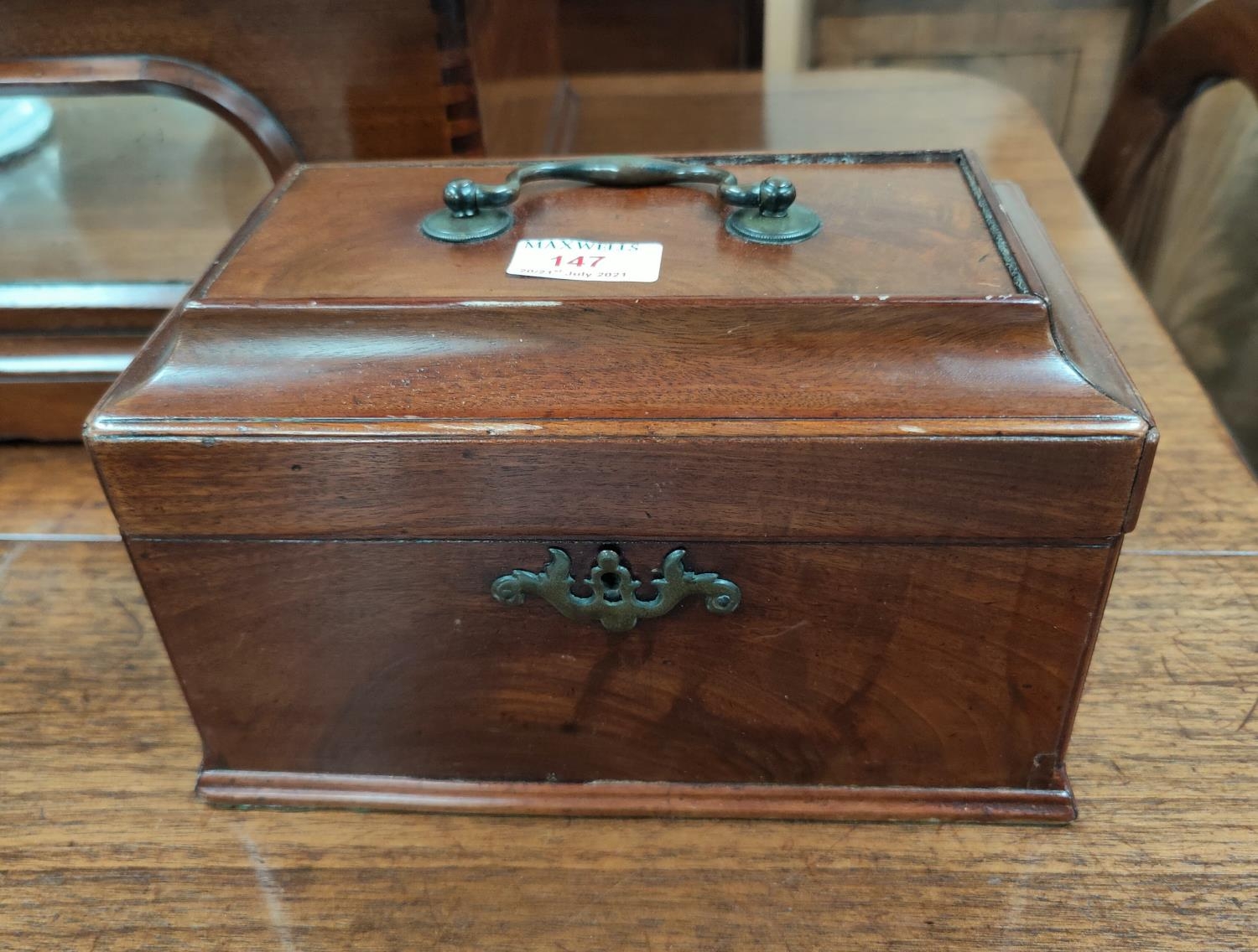 A Georgian mahogany caddy box with 3 internal divisions