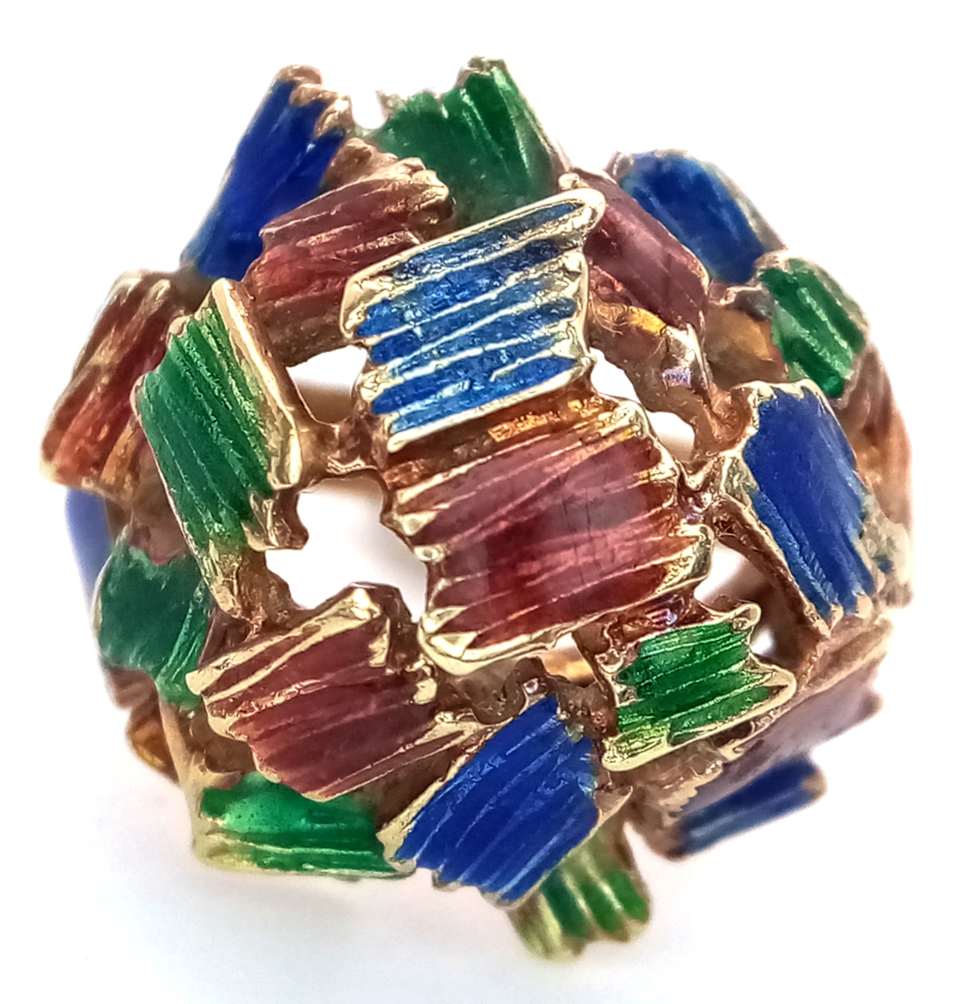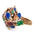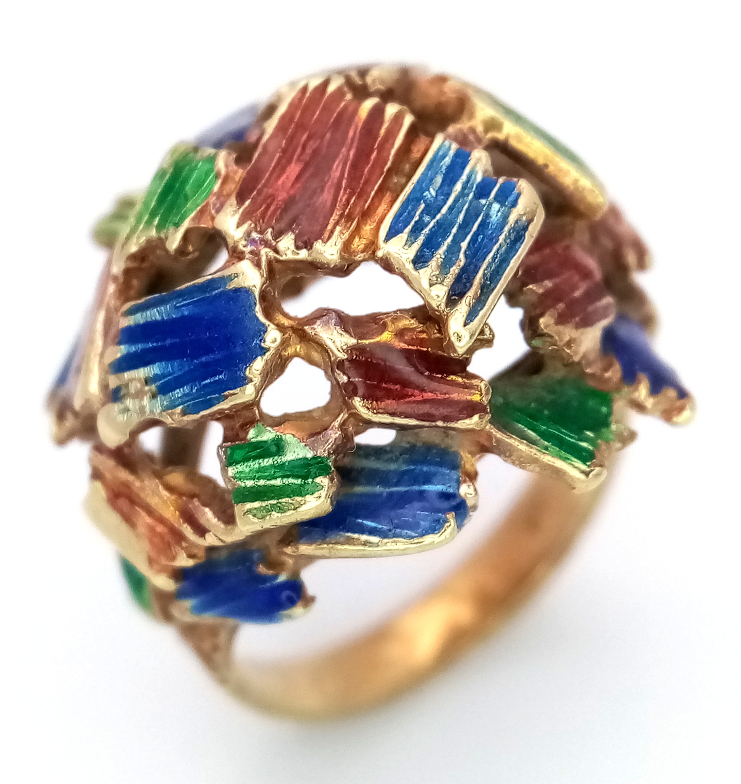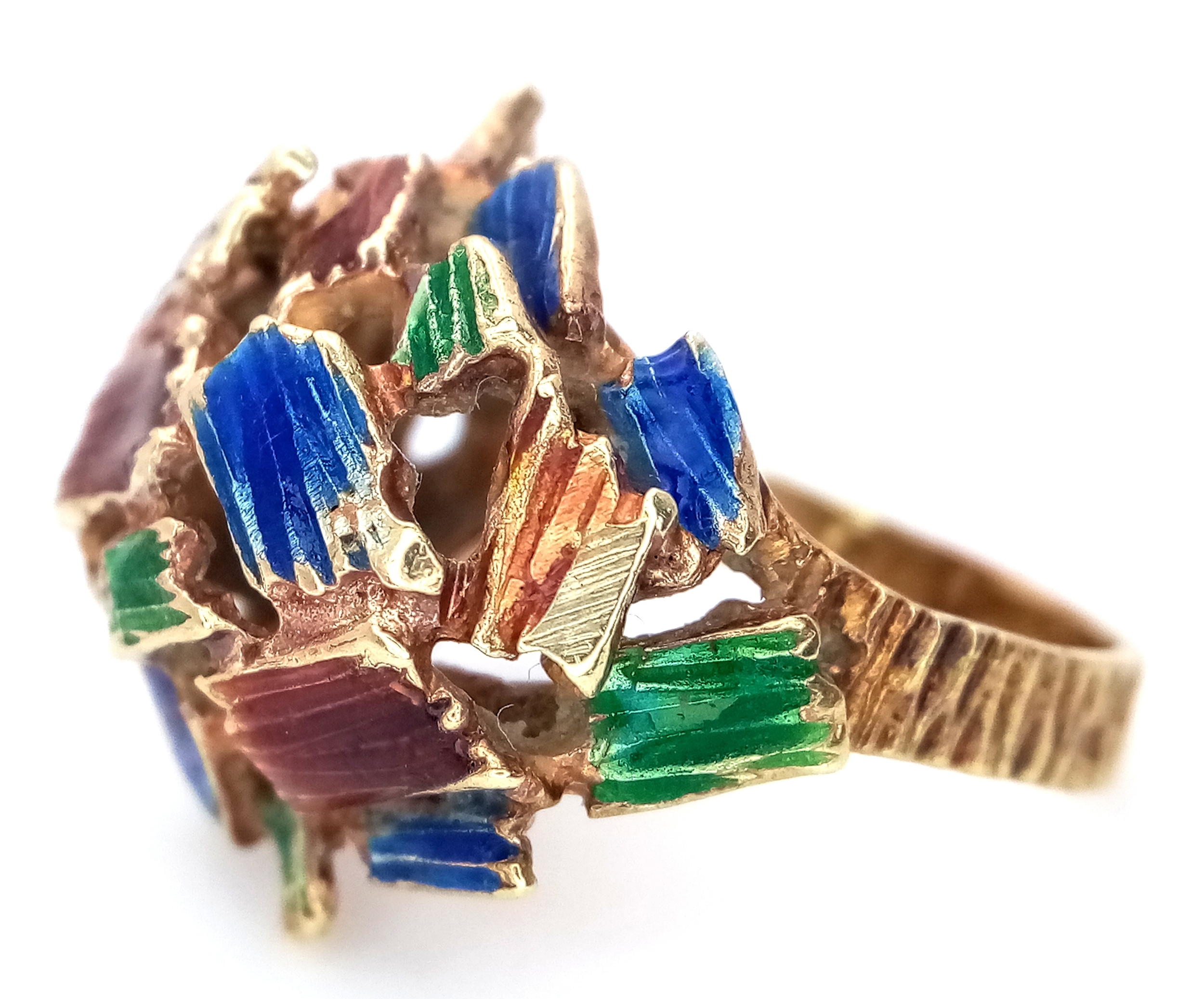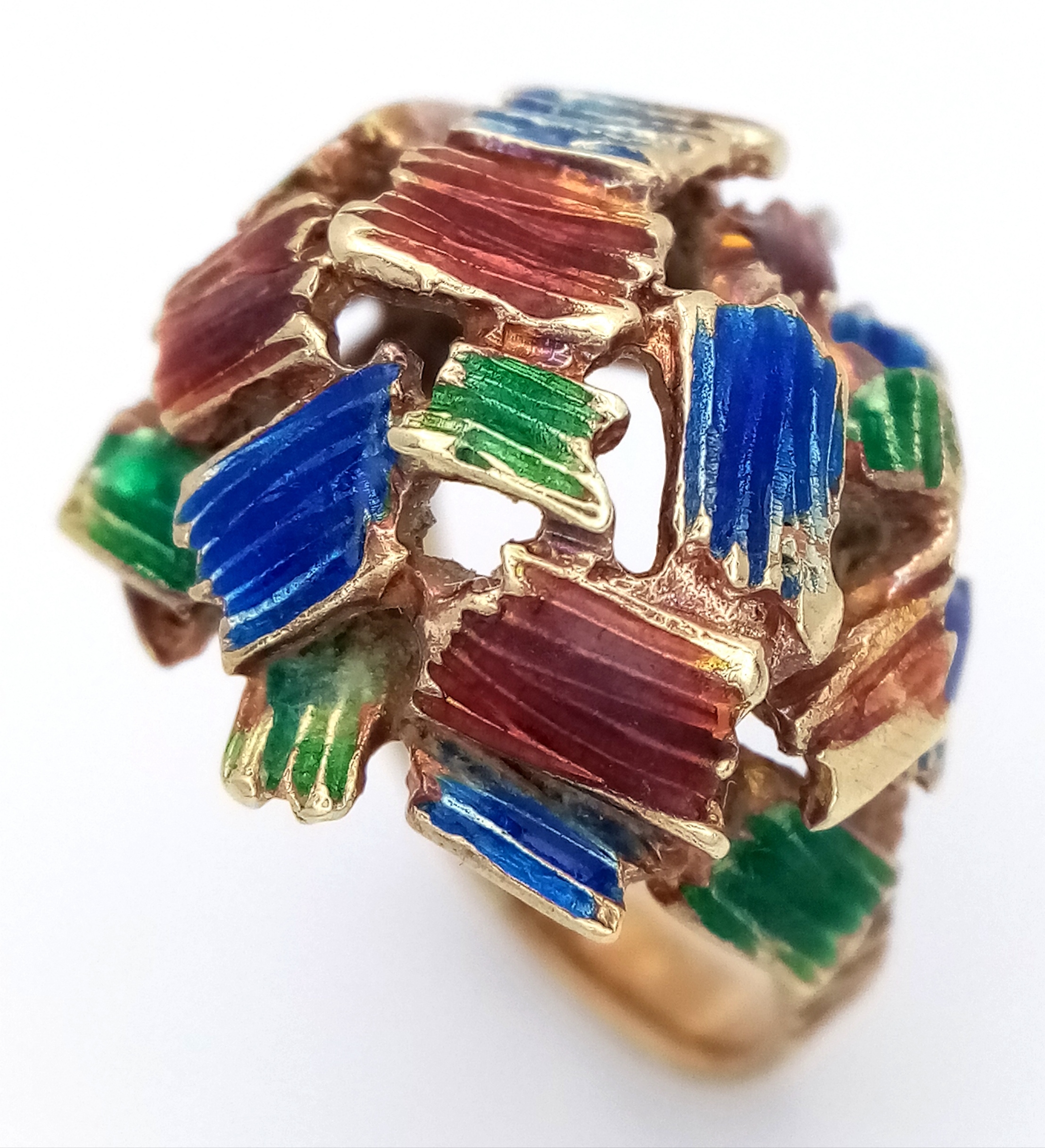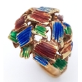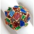 A 14K Abstract Enamel Cluster Ring. Textured colourful design. Size K. 8.8g.
