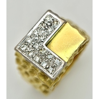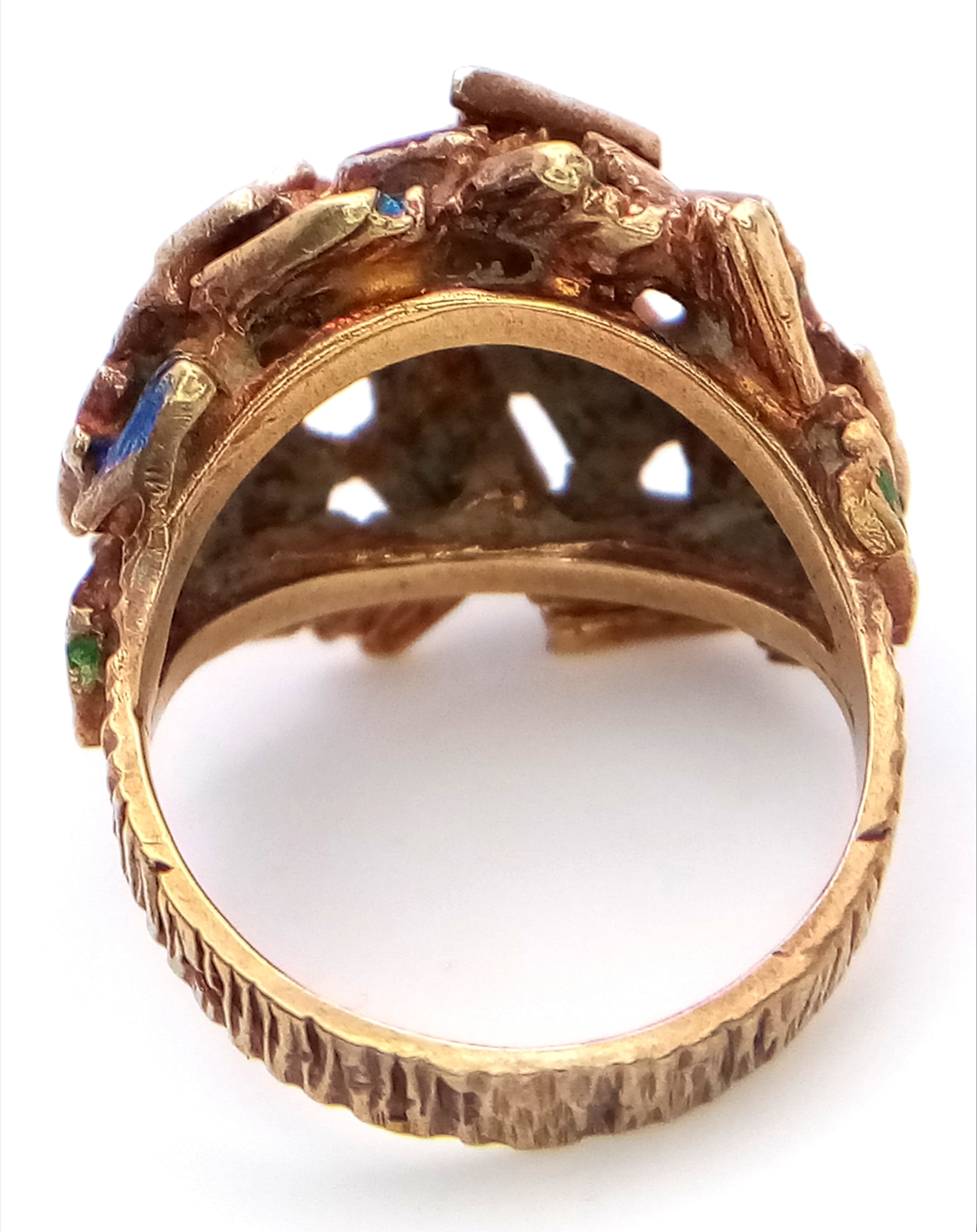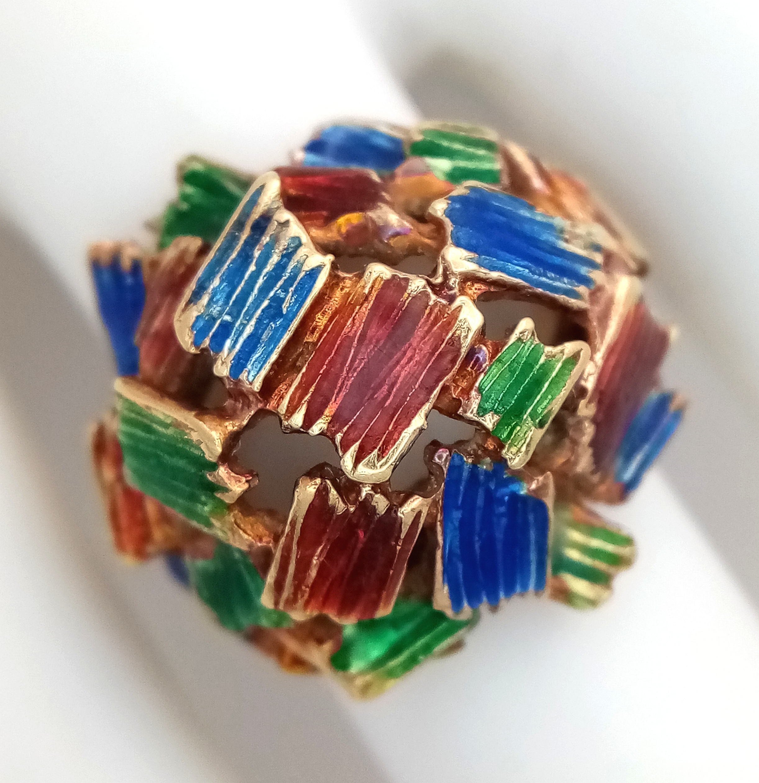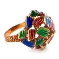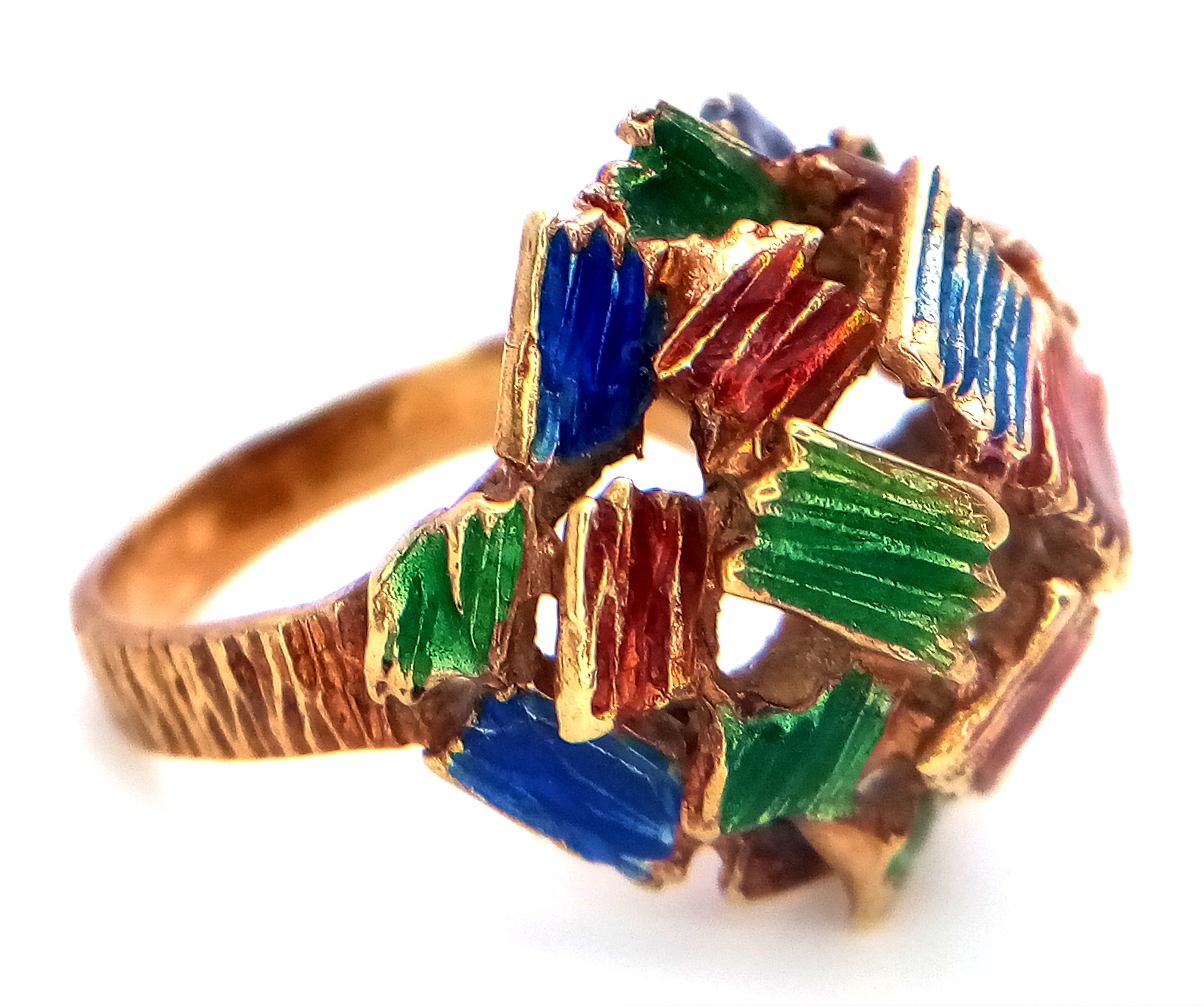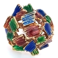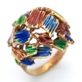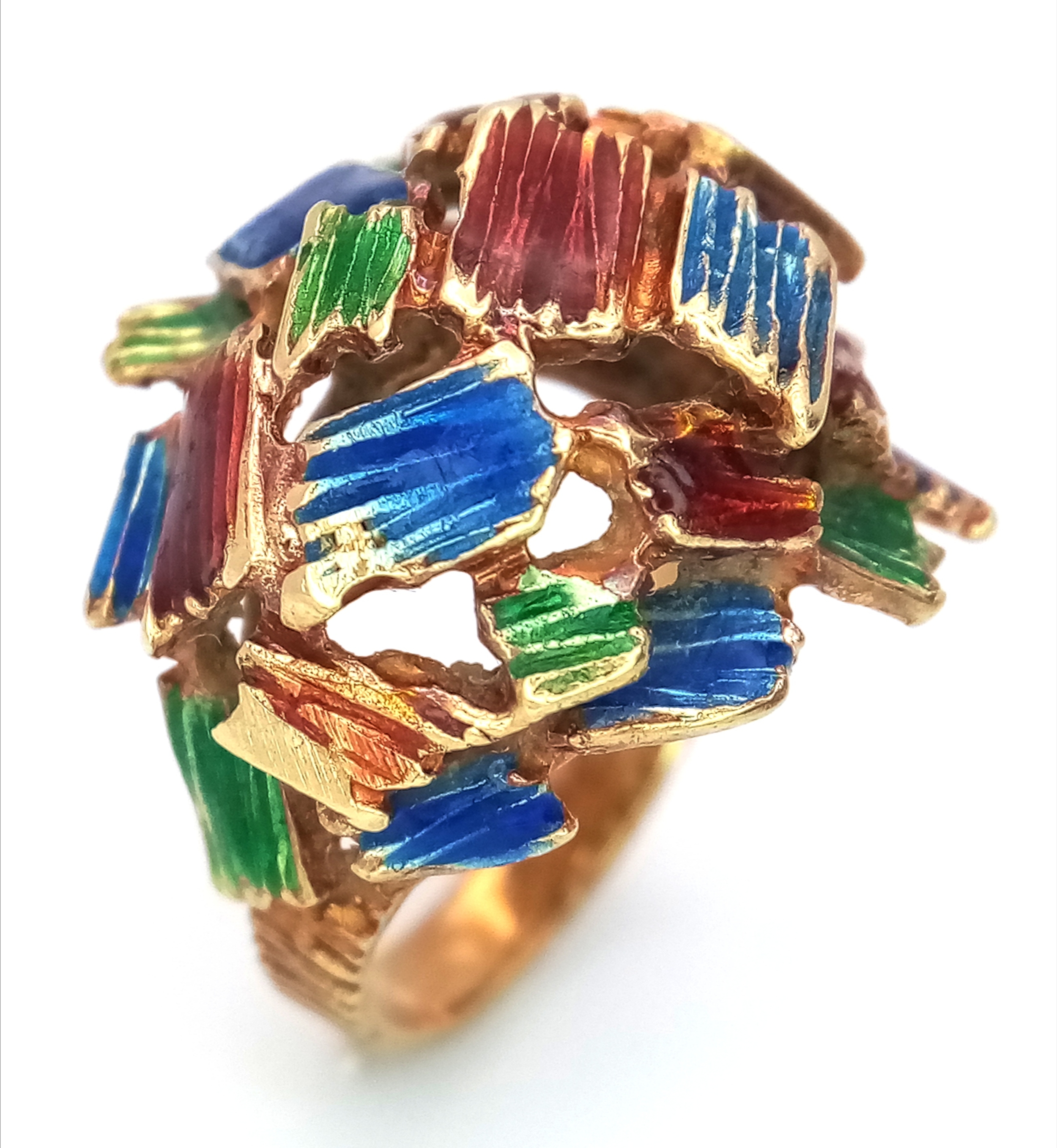 A 14K Abstract Enamel Cluster Ring. Textured colourful design. Size K. 8.8g.