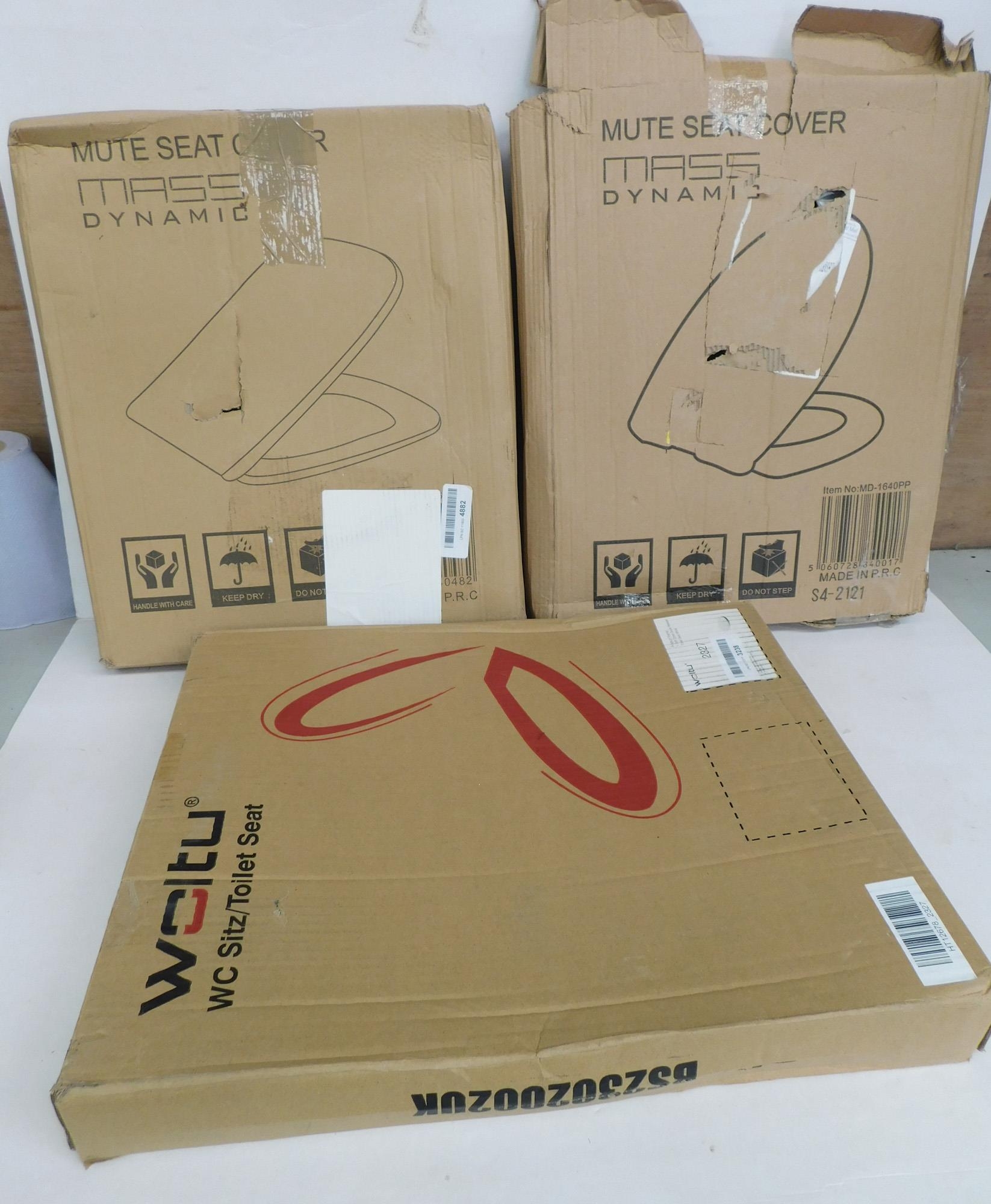 Three new/boxed toilet seats - incl. soft close