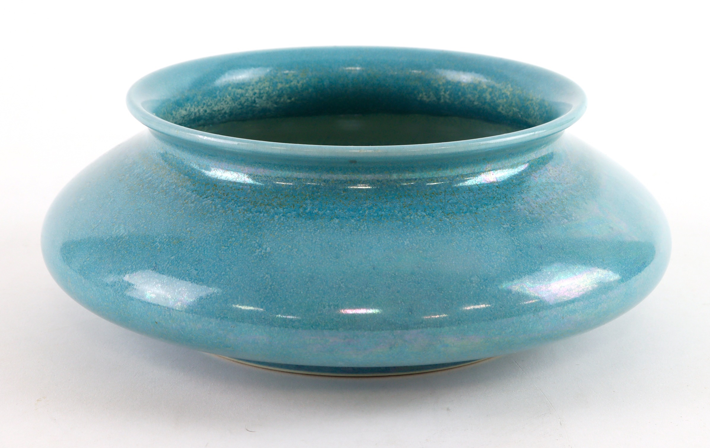 Large Ruskin Green/Blue Bowl, marked "Ruskin 1916 England"