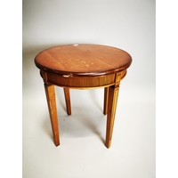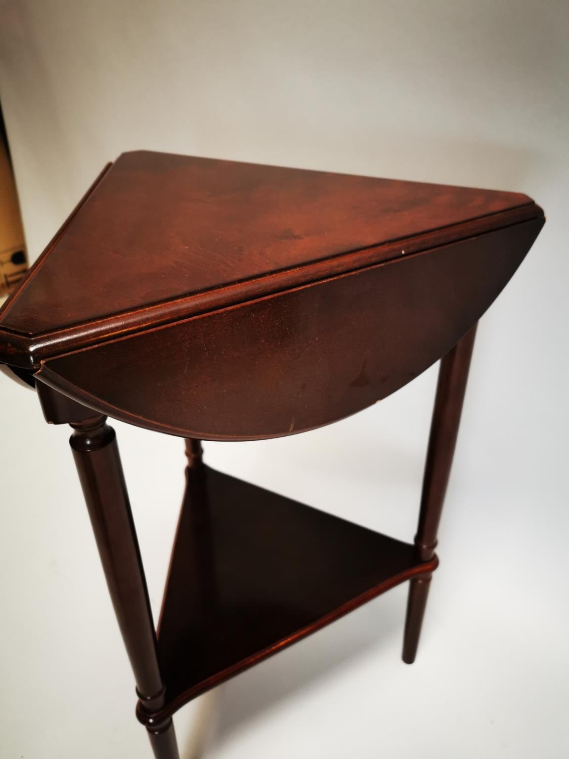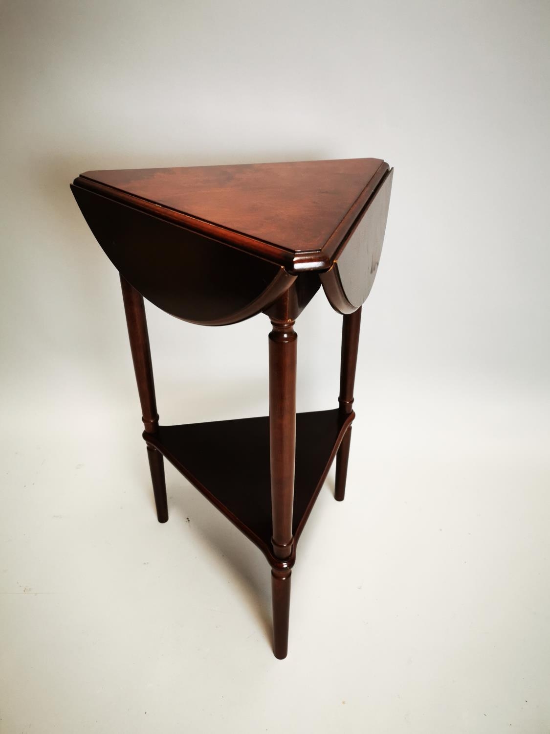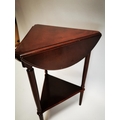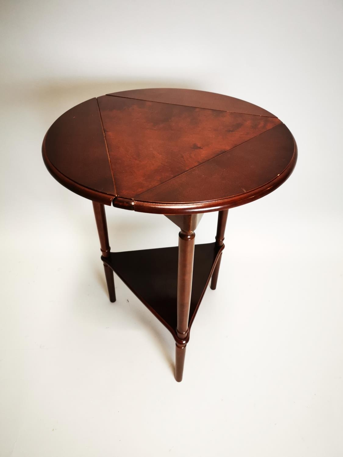 Late 20th C. mahogany drop leaf wine table {64 cm H x 49 cm Dia.}.