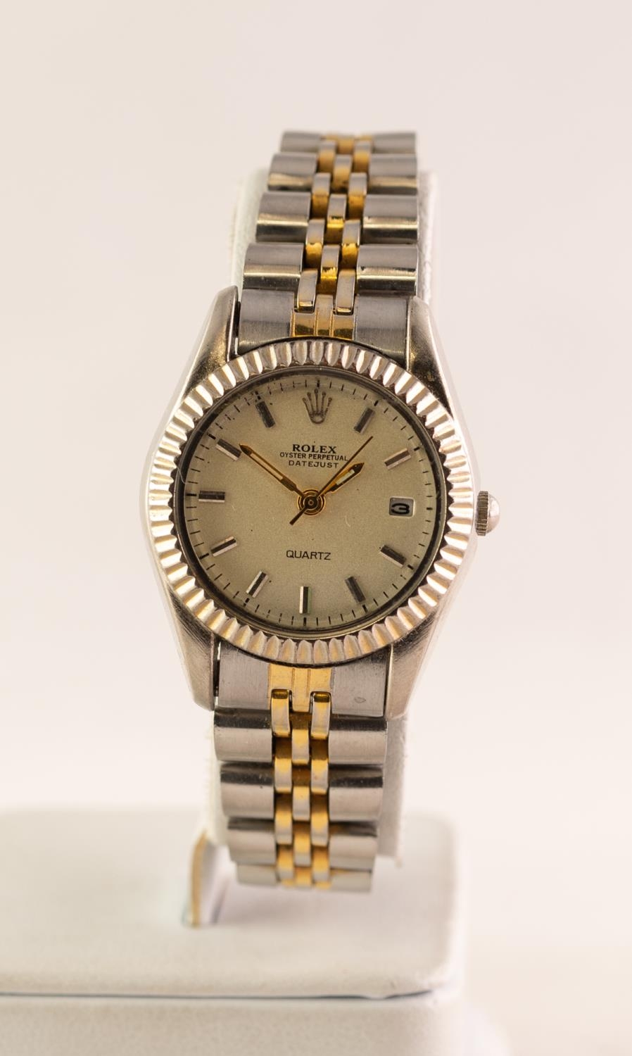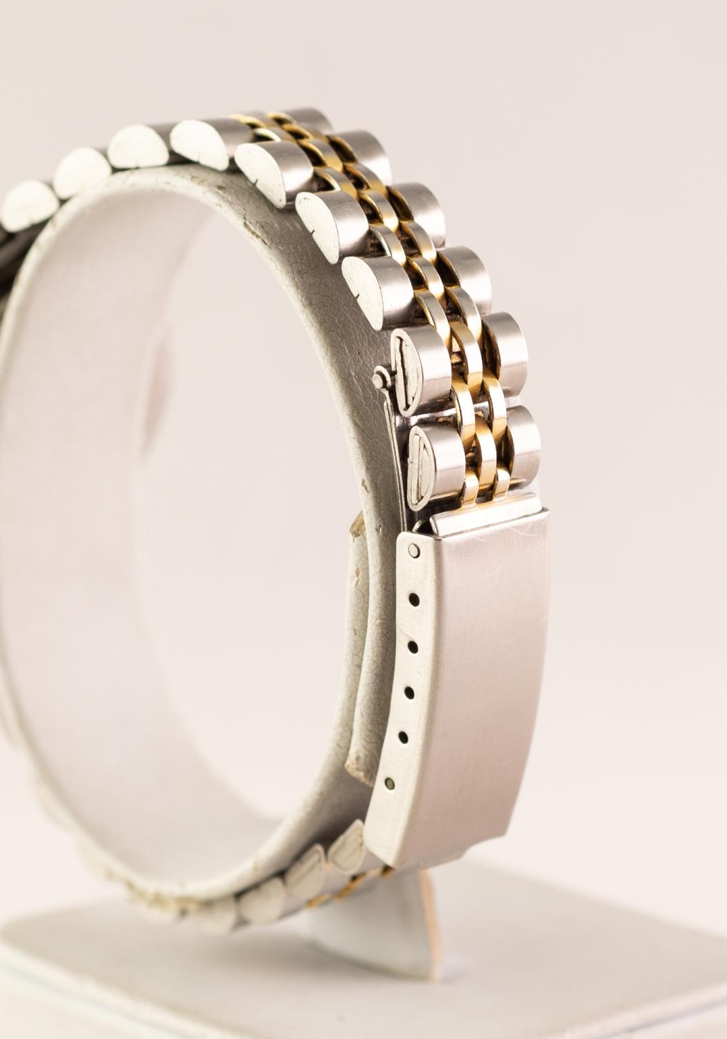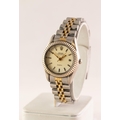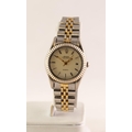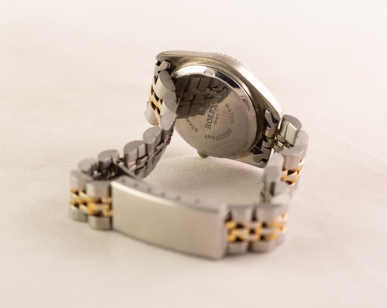 LADY'S ROLEX OYSTER PERPETUAL DATEJUST QUARTZ STAINLESS STEEL PARCEL GILT BRACELET WRISTWATCH