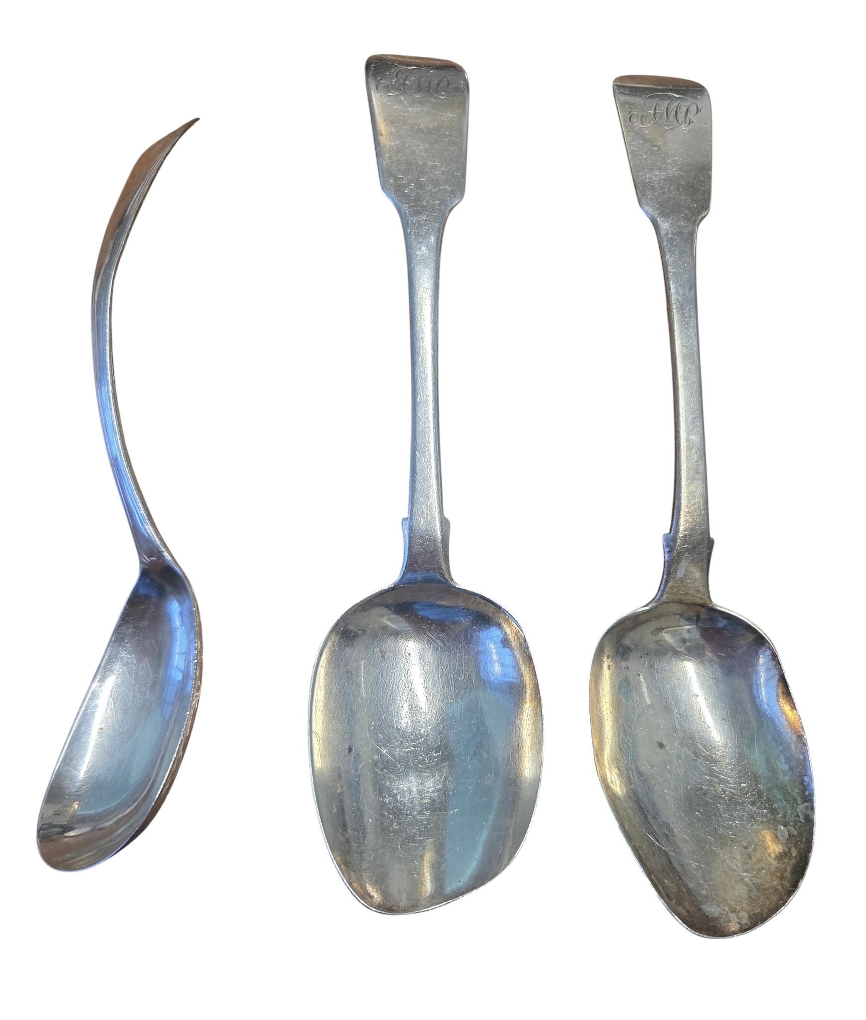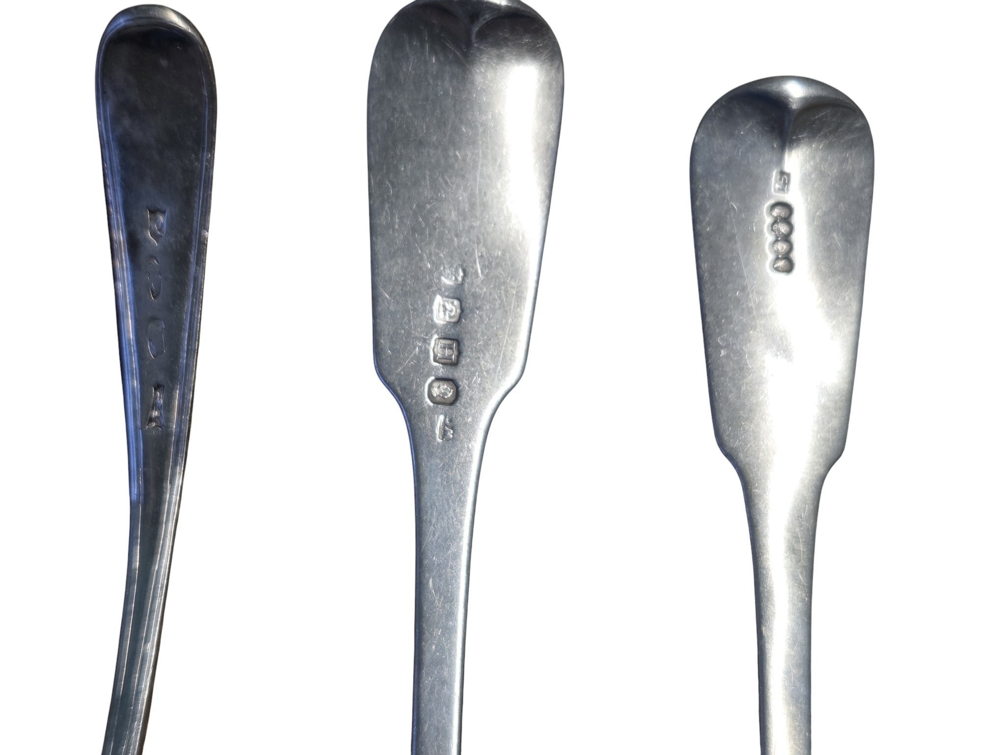 A very early Irish Silver Spoon, marks rubbed possibly 1764 along with two worn Irish Silver Spoons, 173 grams approx.