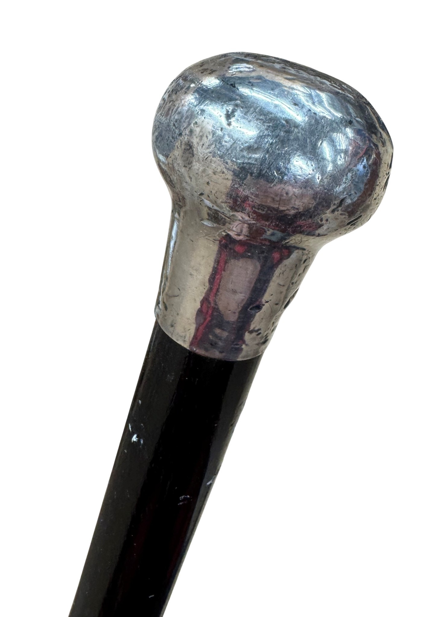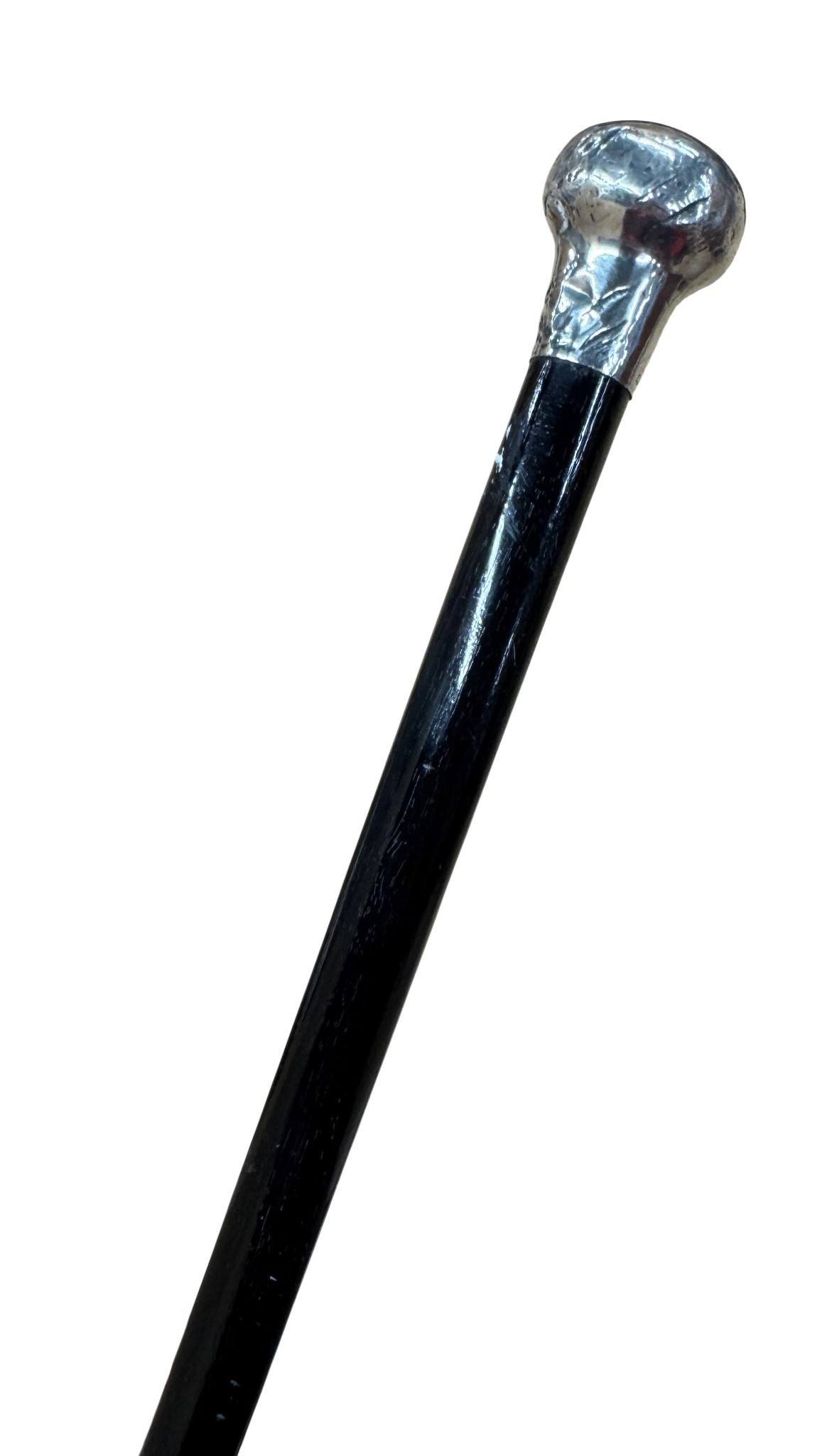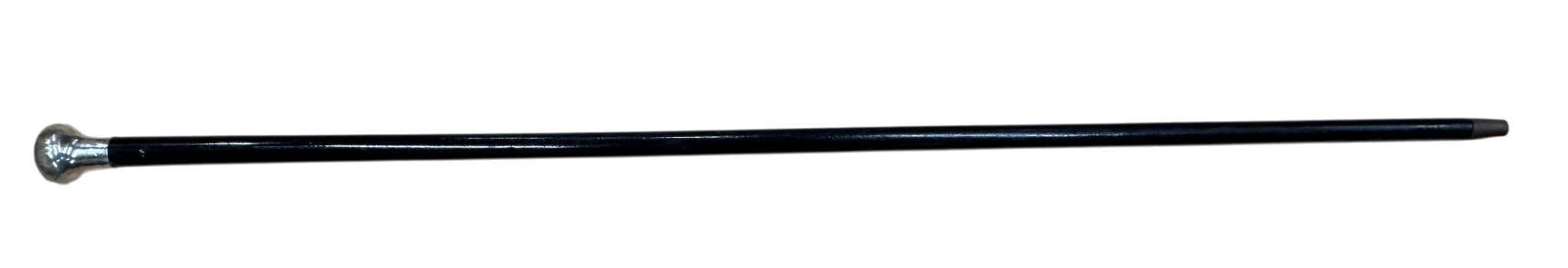 Antique silver capped gentleman's dress cane, having simple flared design with black wooden shaft, L 90cm