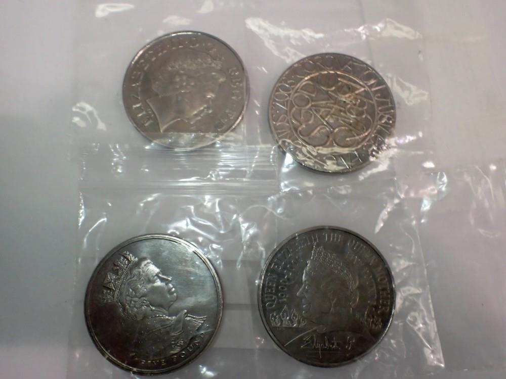 Four, five pound coins, ' Memory Of Princess Diana', 2003 Coronation Jubilee, 1900-2000 Queen Mother, and a 2002 Queen Elizabeth. UK P&P Group 1 (£16+VAT for the first lot and £2+VAT for subsequent lots)