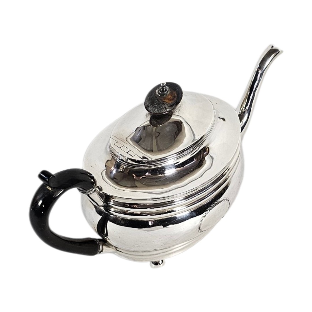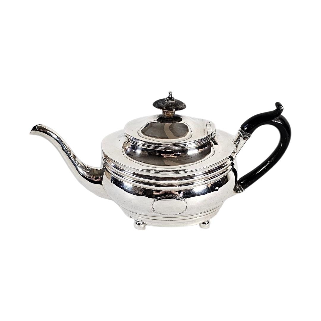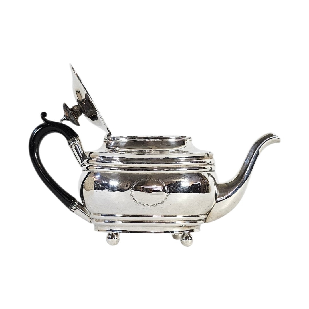 With engraved cartouche, having ebonised finial and handle, hallmarked WH, London, 1807.