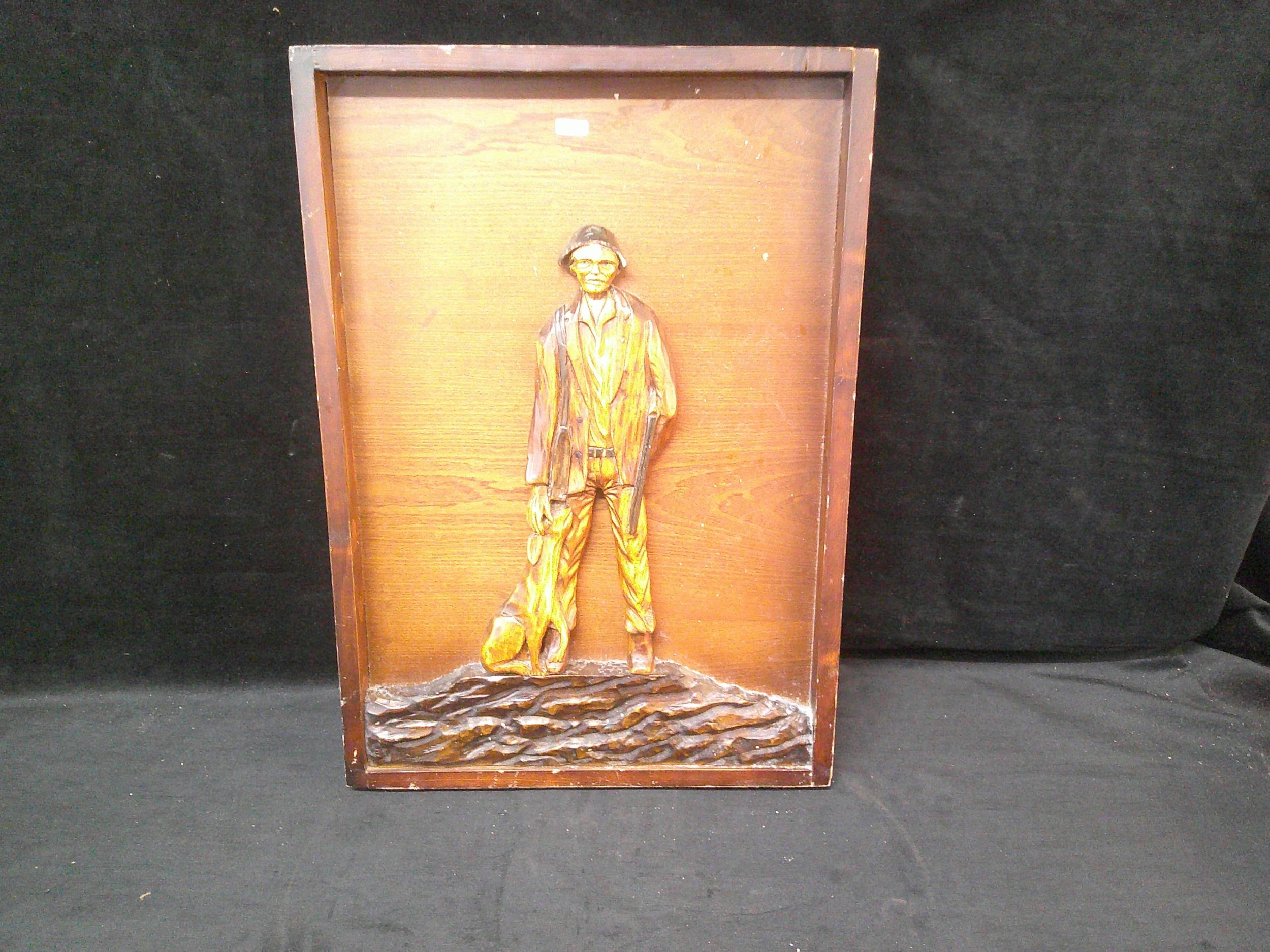 Large wooden three dimensional carving of gunman 45cm X 66cm