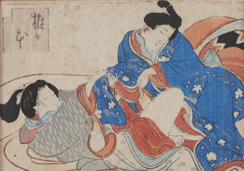 Japanese Erotic (Shunga) Woodblock Print. Utagawa School, c1800-1830 - Shiiganoto, 80 x 120mm