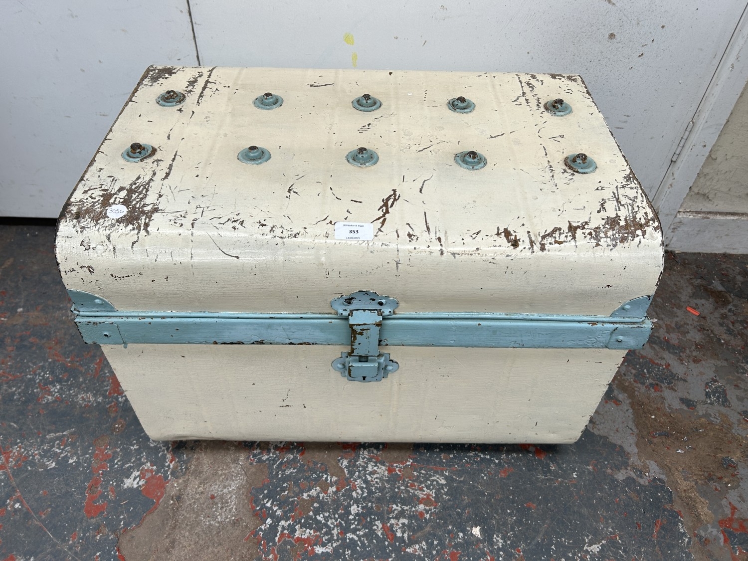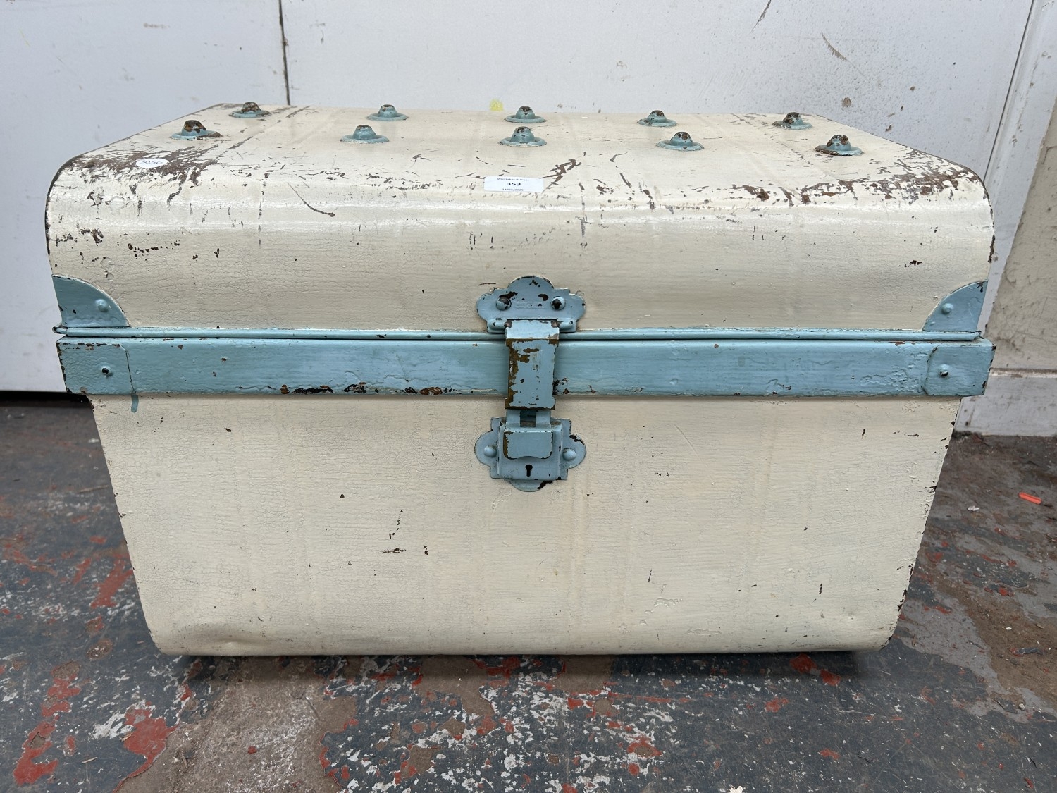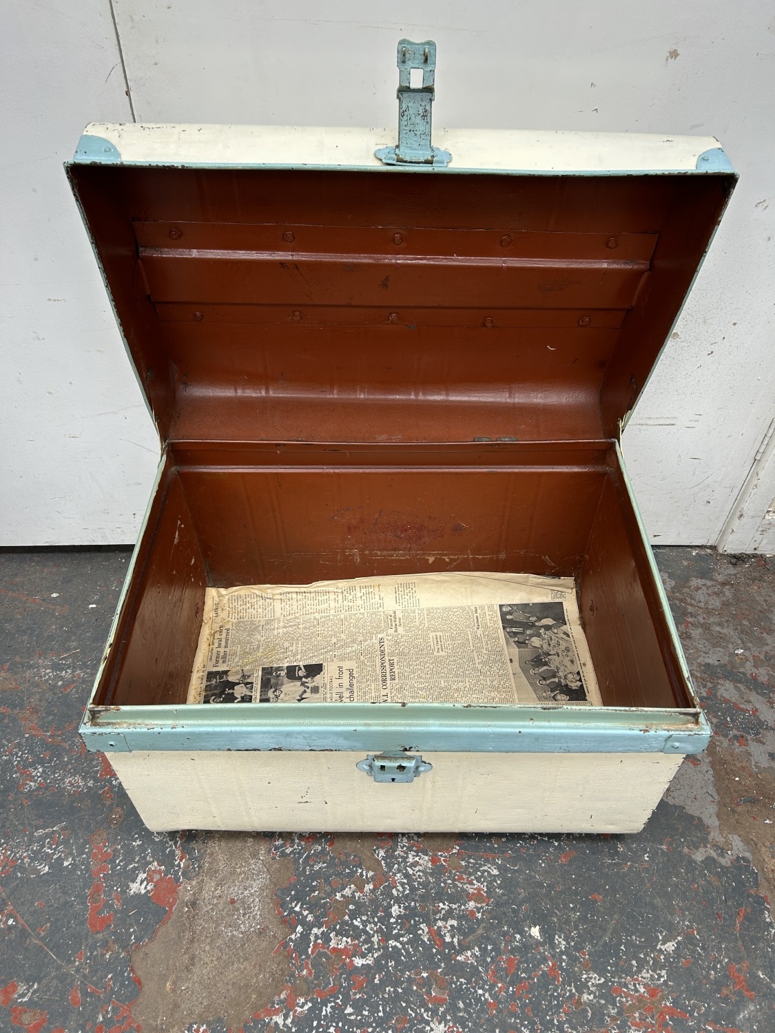 An early 20th century painted metal travel trunk - approx. 42cm high x 59cm wide x 42cm deep