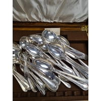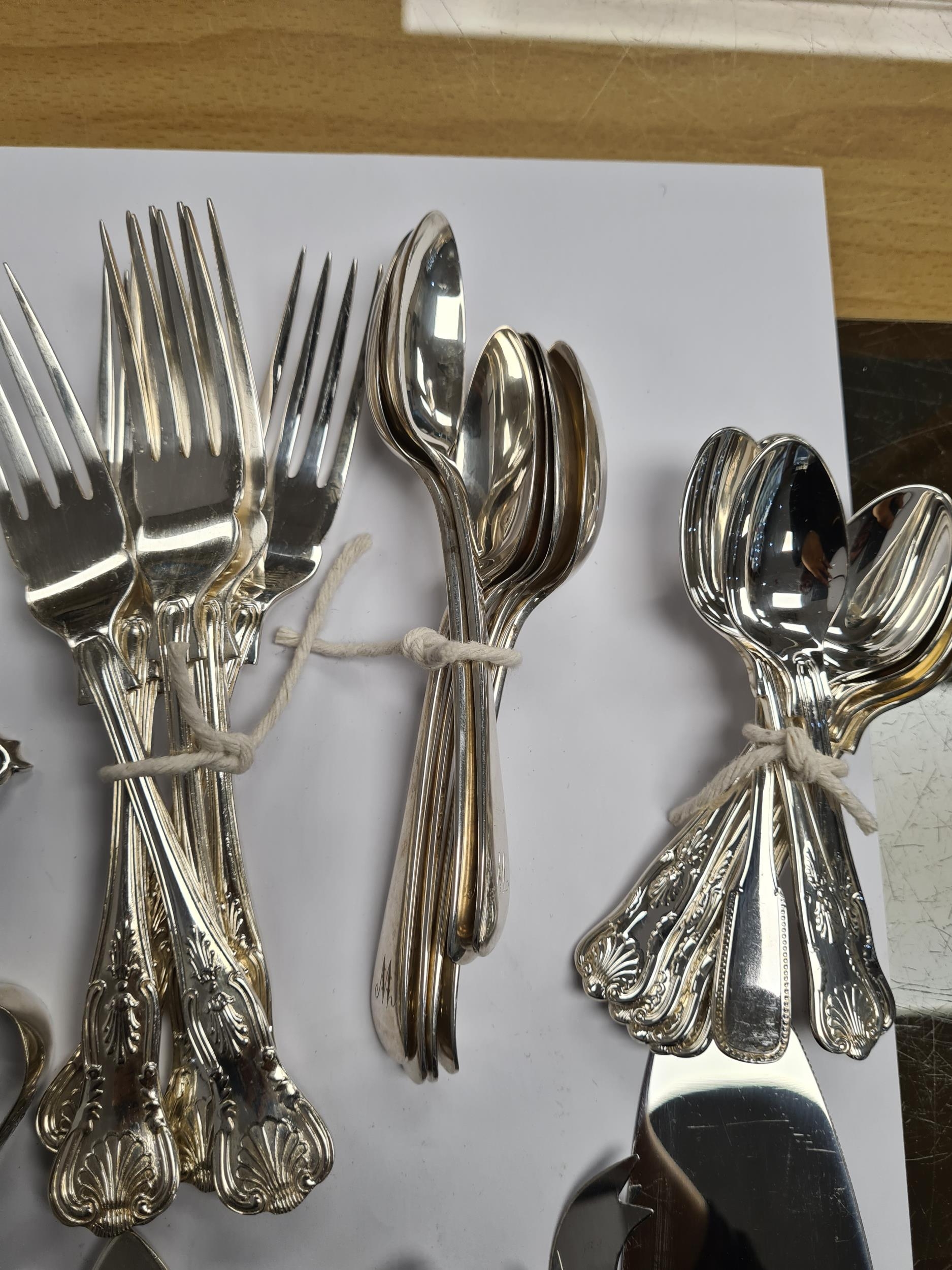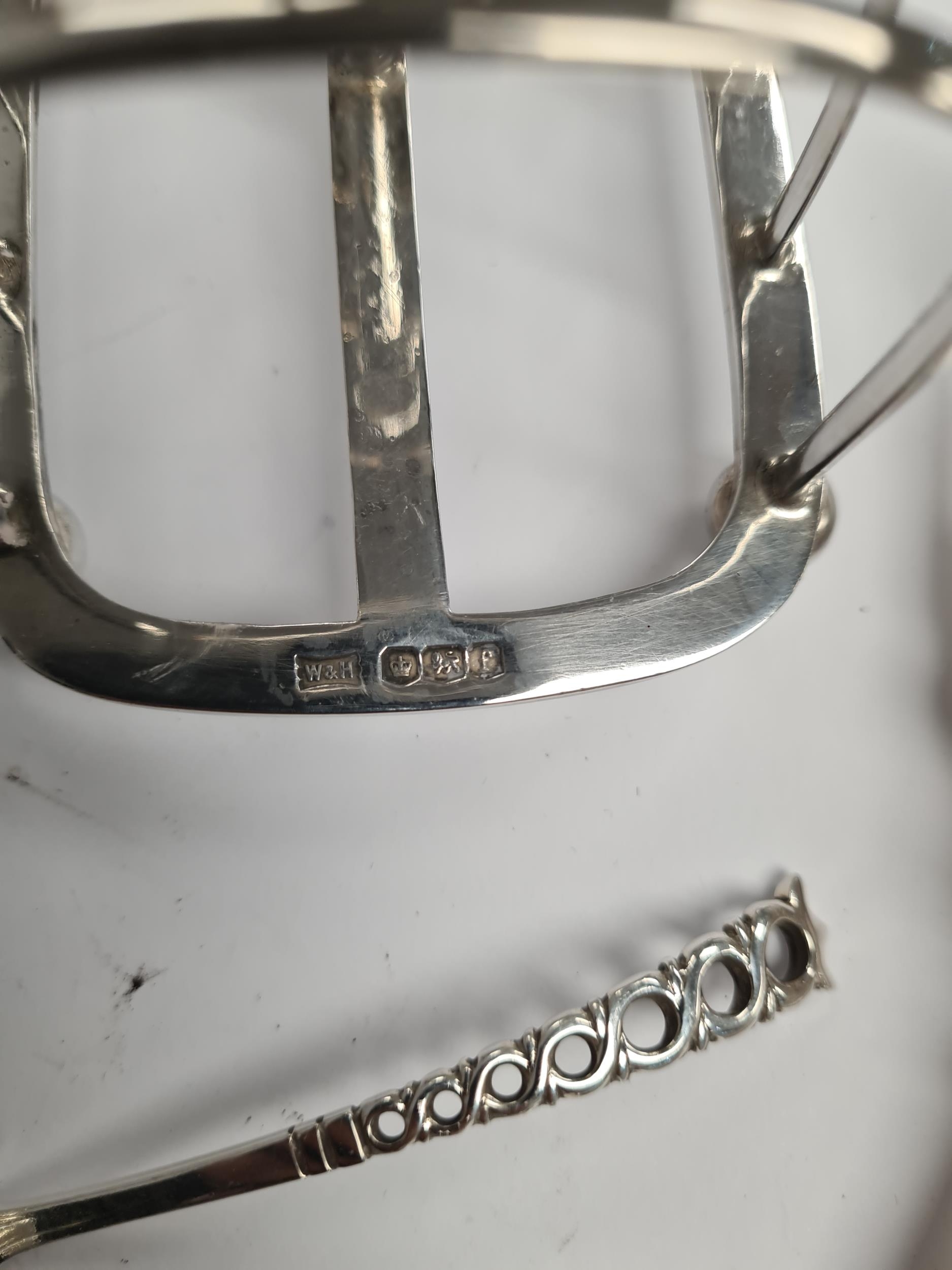 A silver toast rack by Walker and Hall, Sheffield 1923. Also a pretty pair of Victorian small knife and fork by George Unite. A silver fork, and a set of six silver teaspoons by Walker and Hall. 10.40ozt approx. Also with silver plated flatware. Condition Report: No obvious damage seen