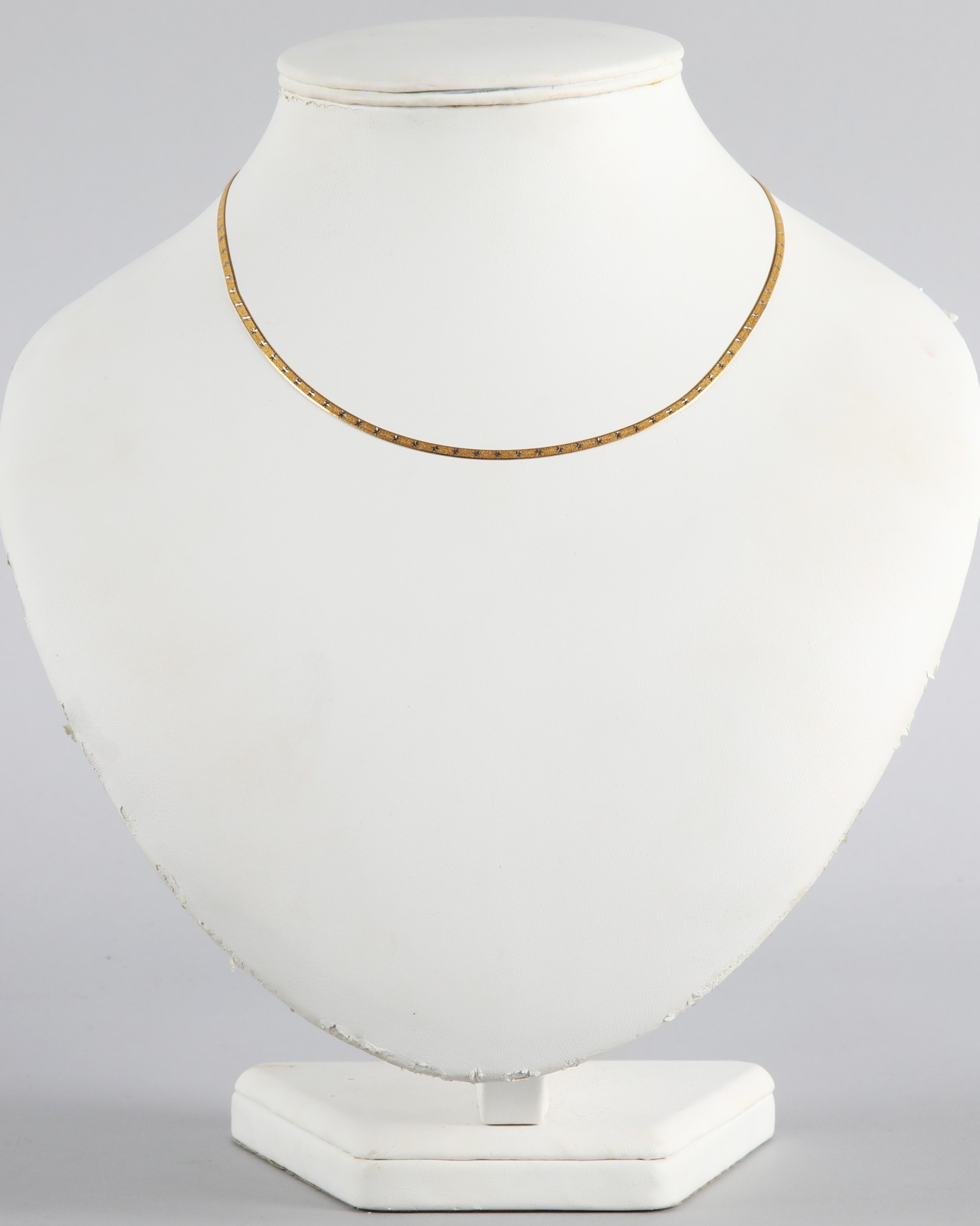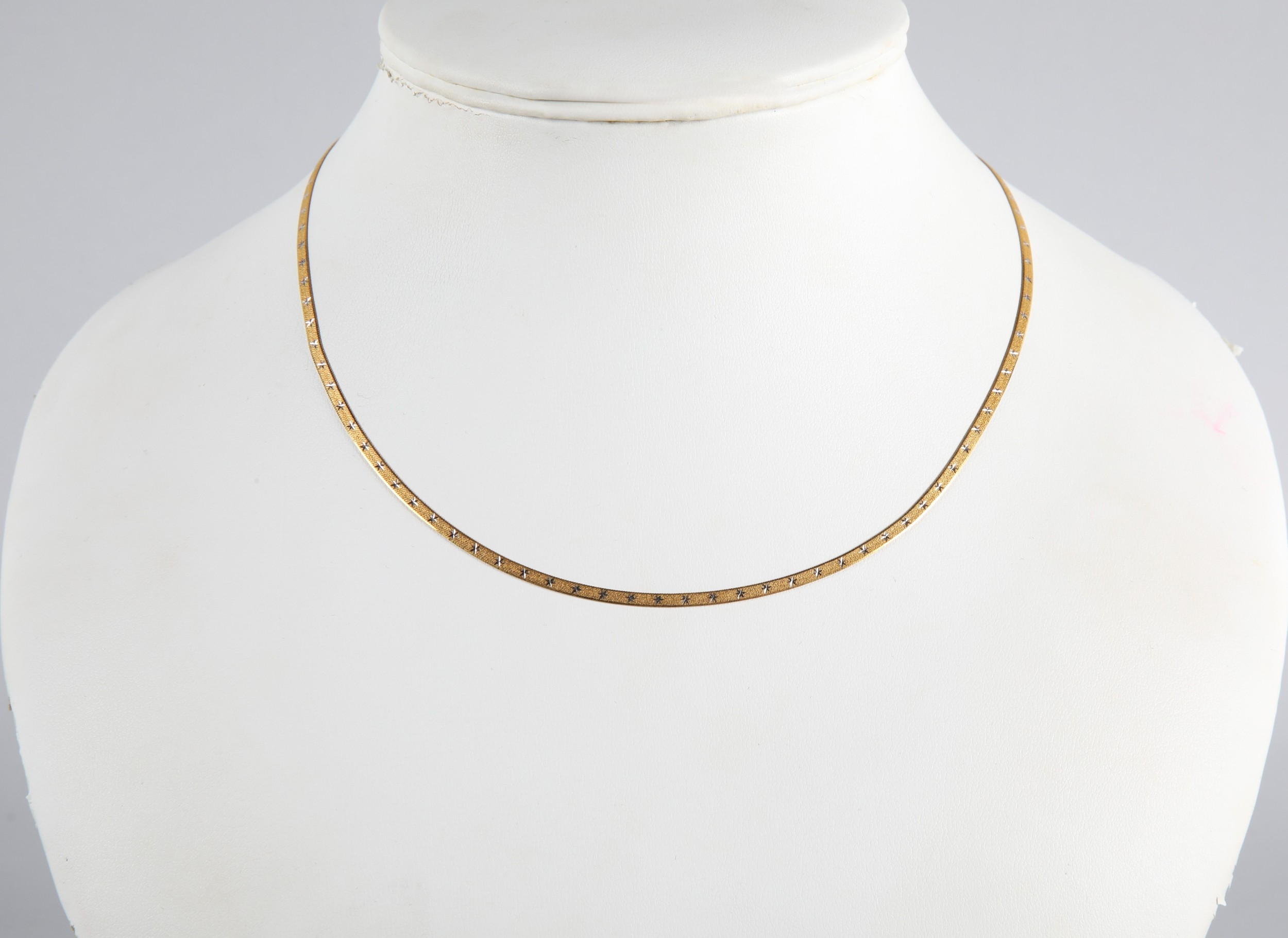 9ct gold snake chain necklace etched with stars in contrasting white gold, 3g